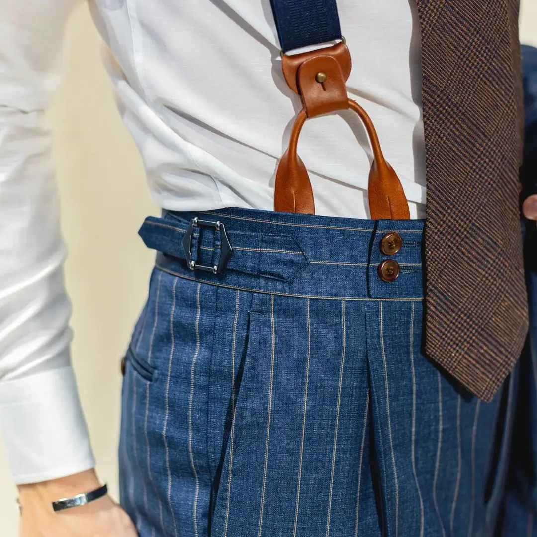 Aidase Navy Blue Stripe Men Suits 2 Pieces Blazer Jacket Pants Tailored Single Breasted Fashion Formal Business Groom Causal Prom
