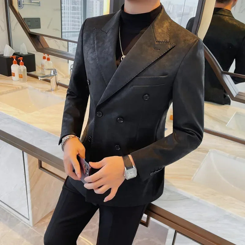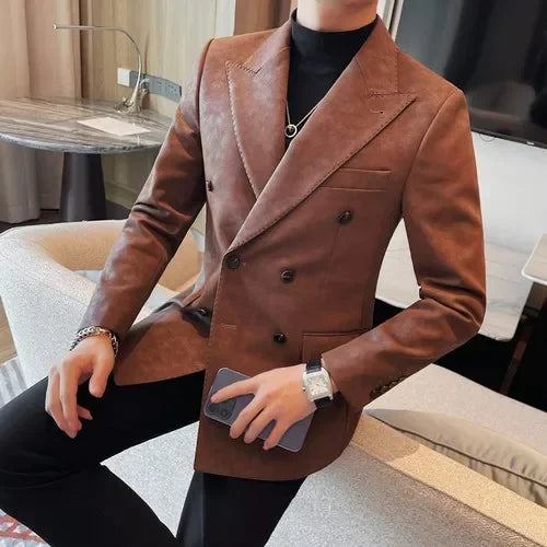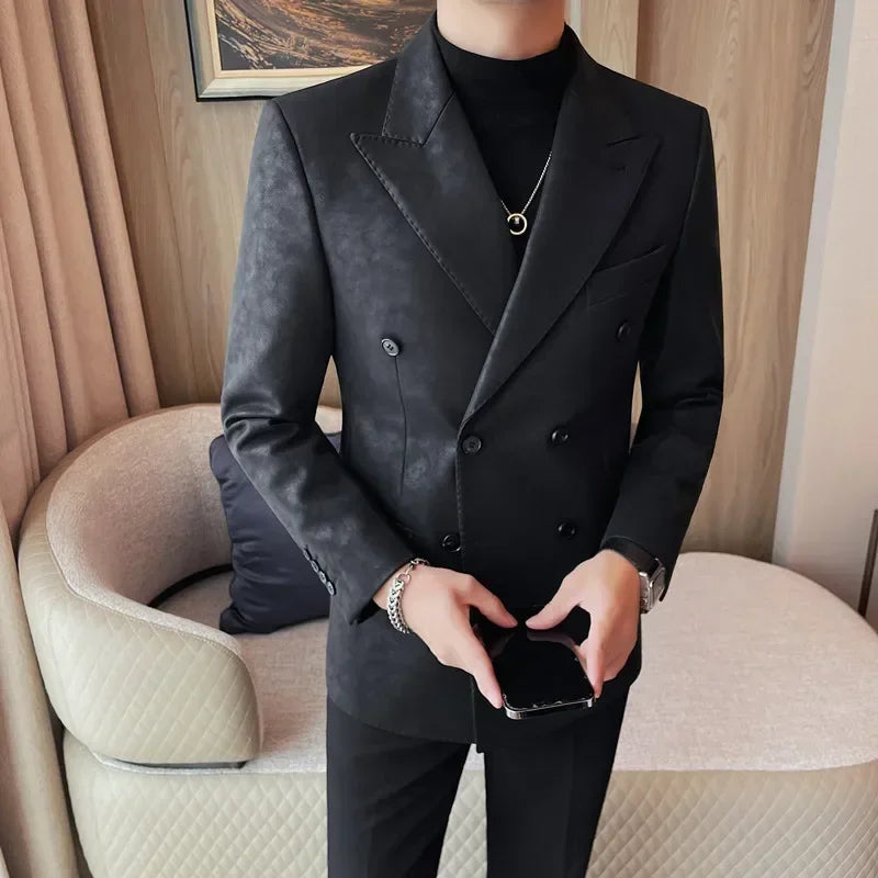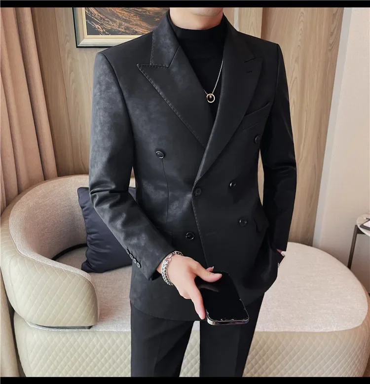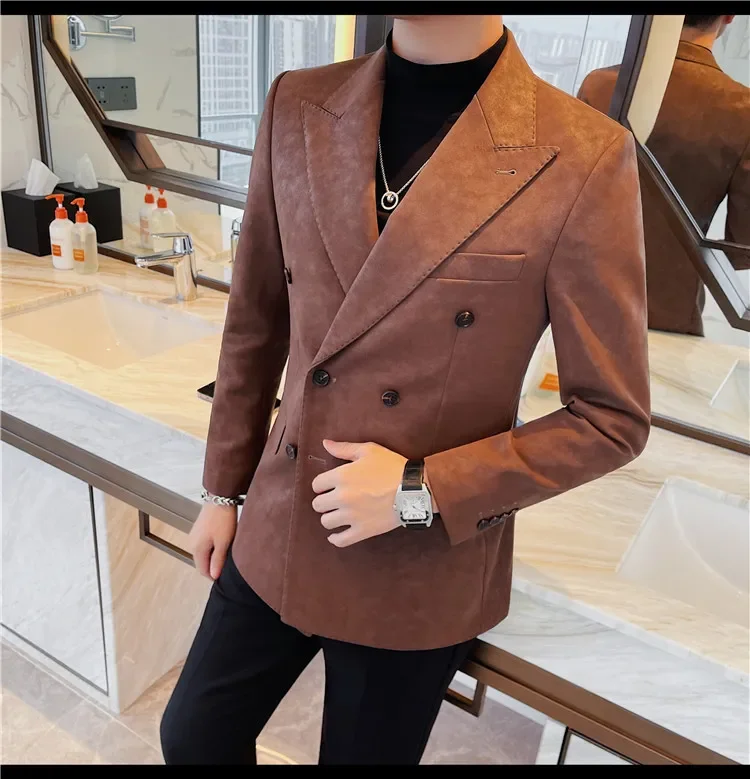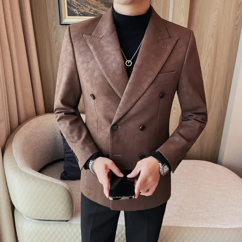 Aidase Retro High Quality Blazer Jackets Men Double Breasted Casual Business Suit Coats Formal Wedding Party Social Dress Blazers