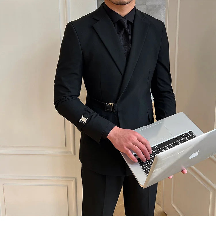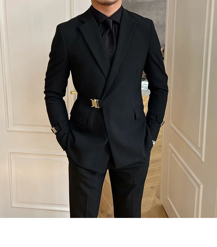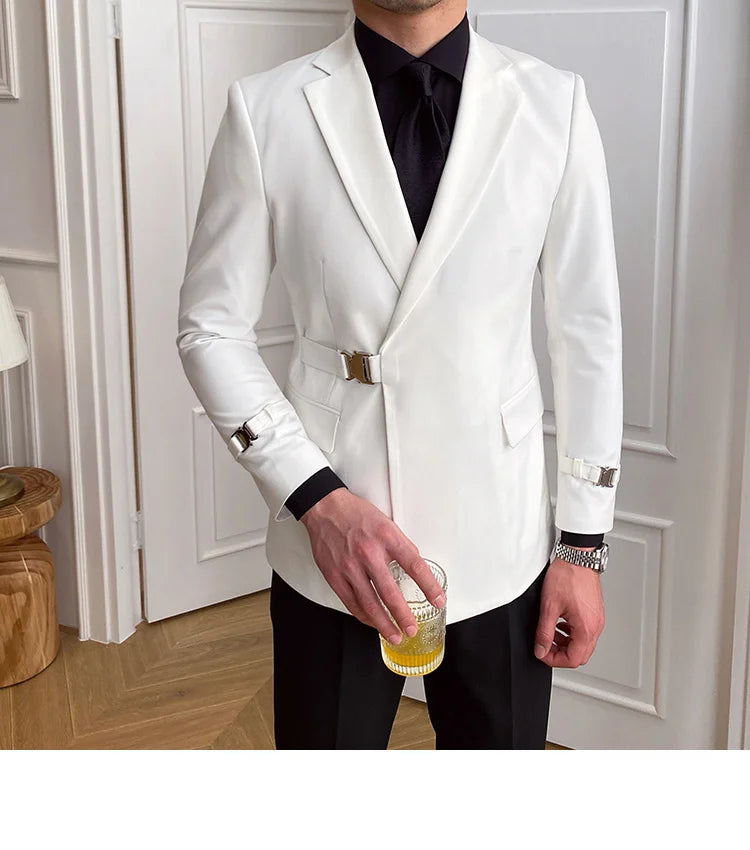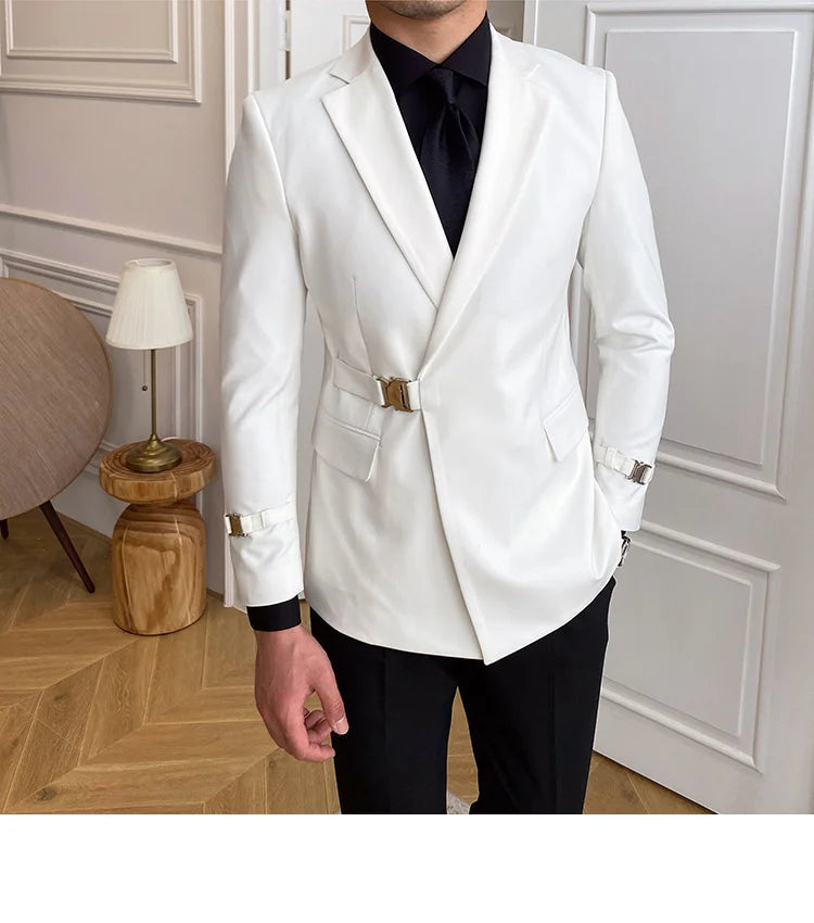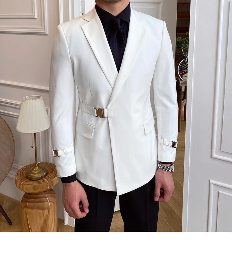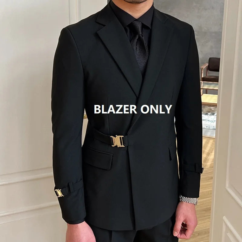 Solid Metal Buckle Decoration Blazer For Men Party Wedding Banquet Blazer Italian Designer Suit Jacket Slim Fit Blazer Homme
