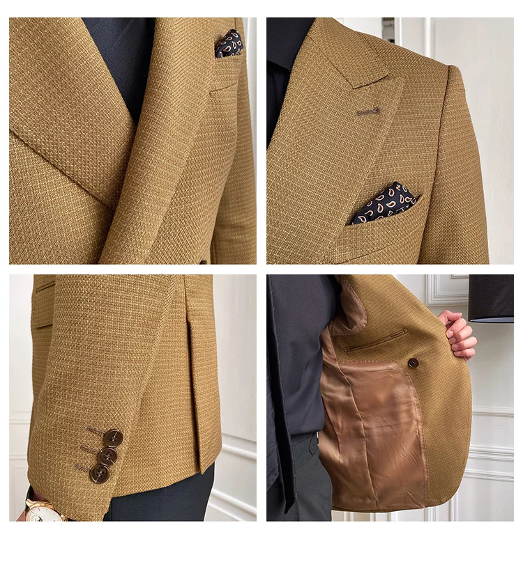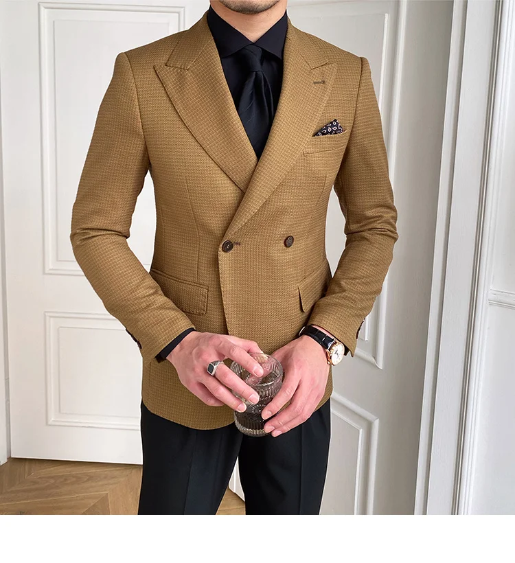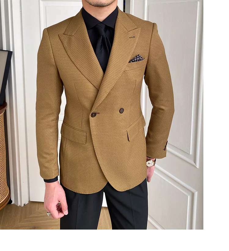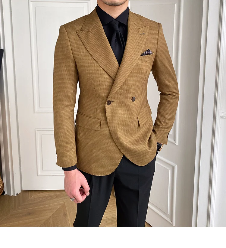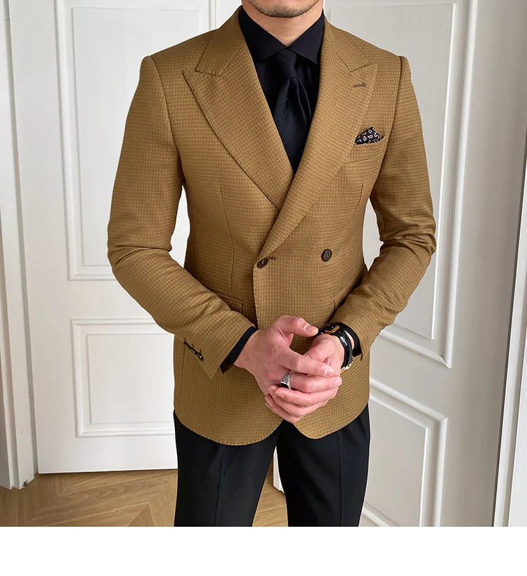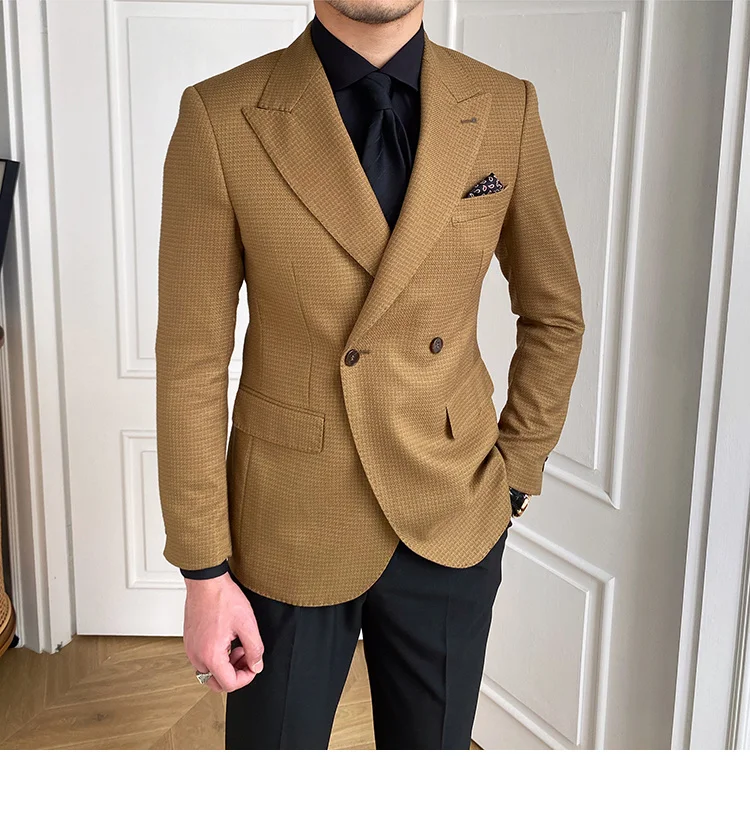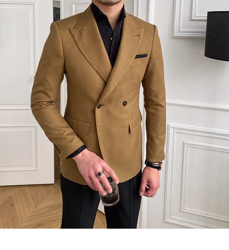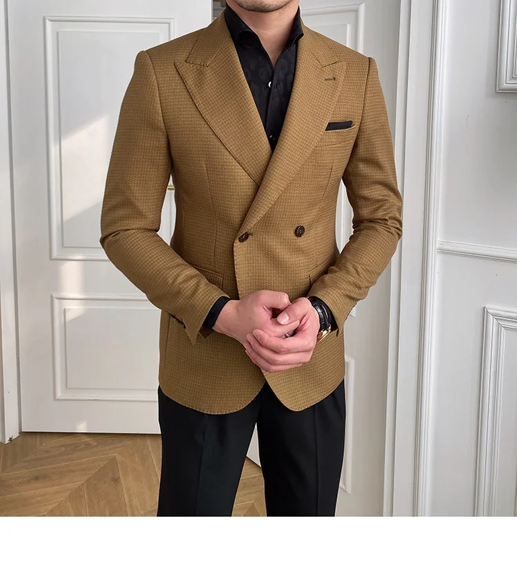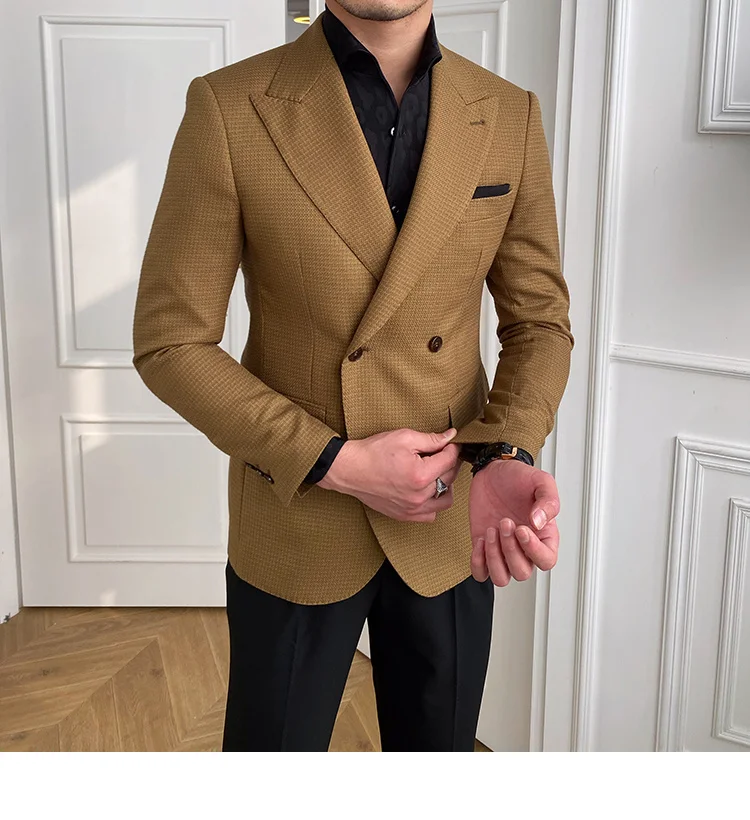 High Quality Retro Double Breasted Blazer Hombre Casual Coat Slim Long Sleeve Gentleman Suit Blazers Chaquetas Hombre De Vestir