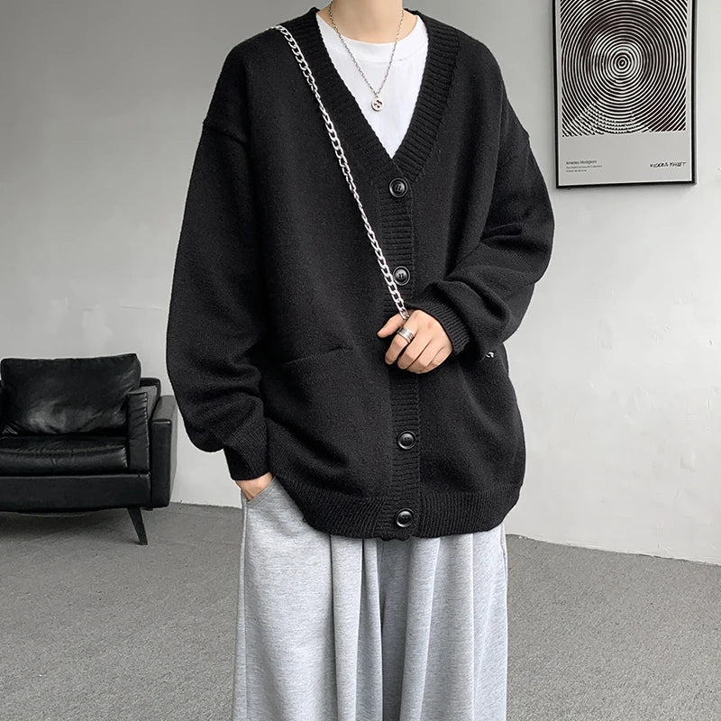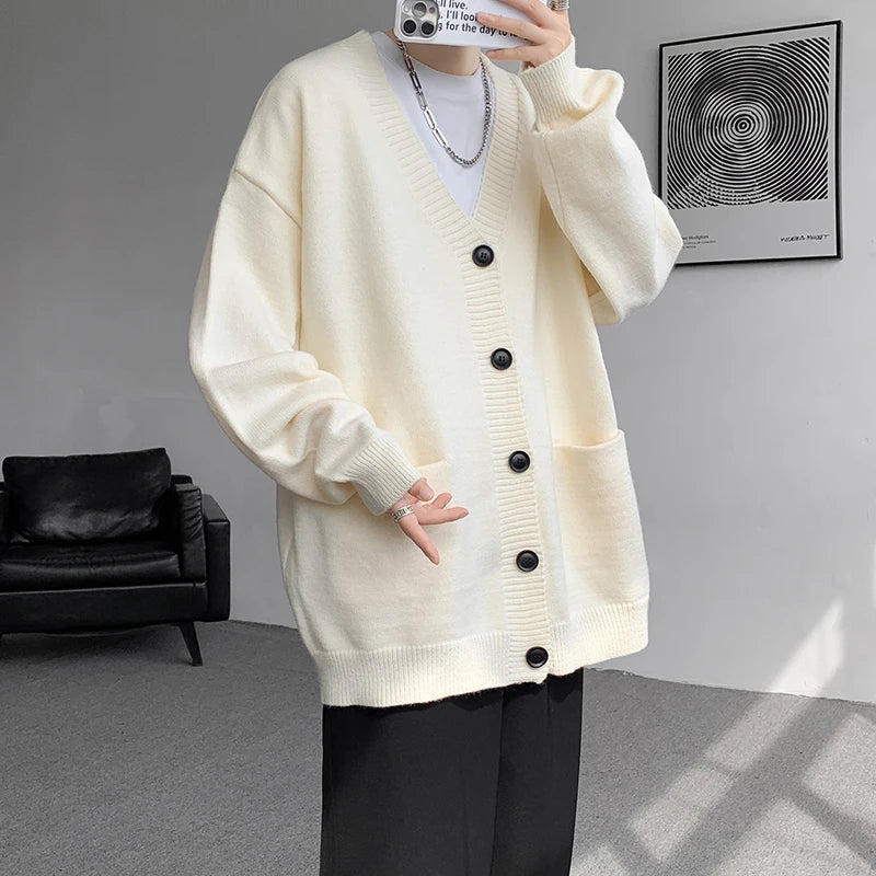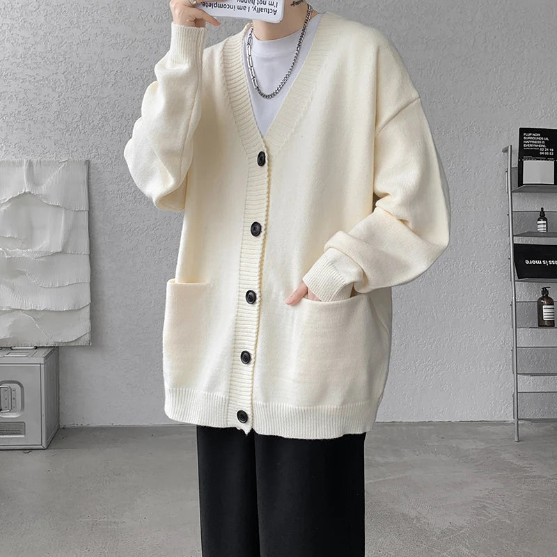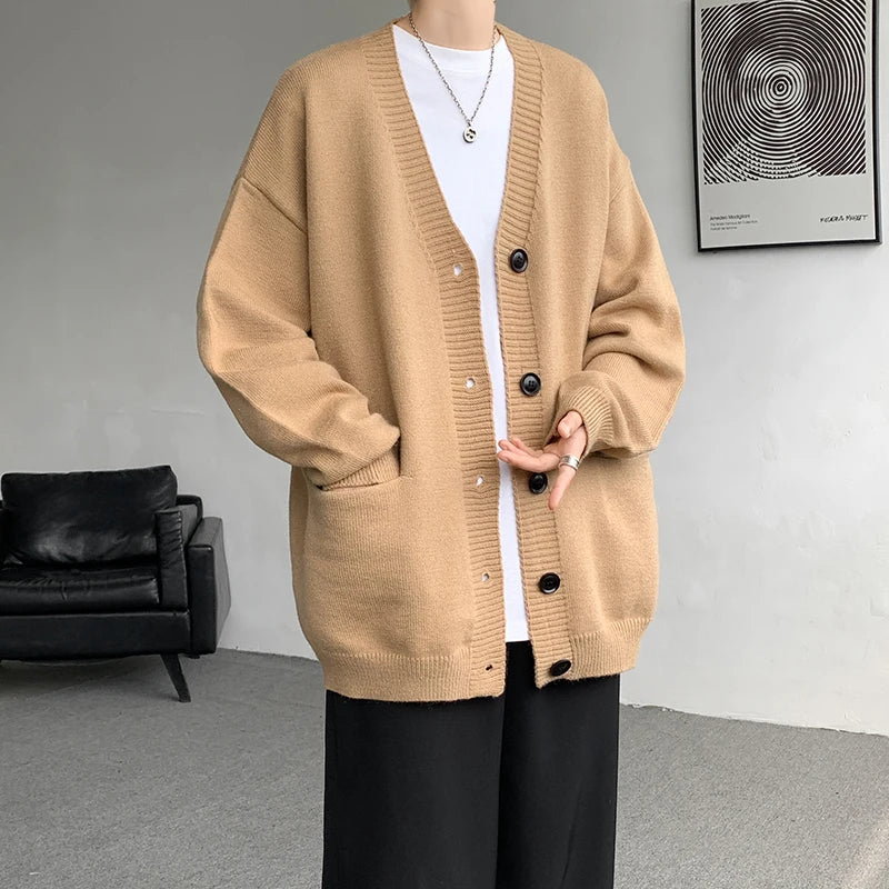Aidase Plus Size 8XL-M Korean Style V-neck Cardigans Men Pocket Design Simple Sweater Autumn New Popular Male Casual Daily Knitted Coat