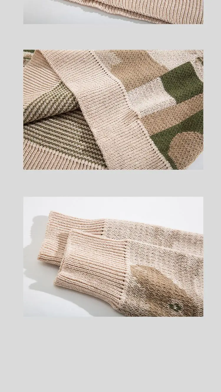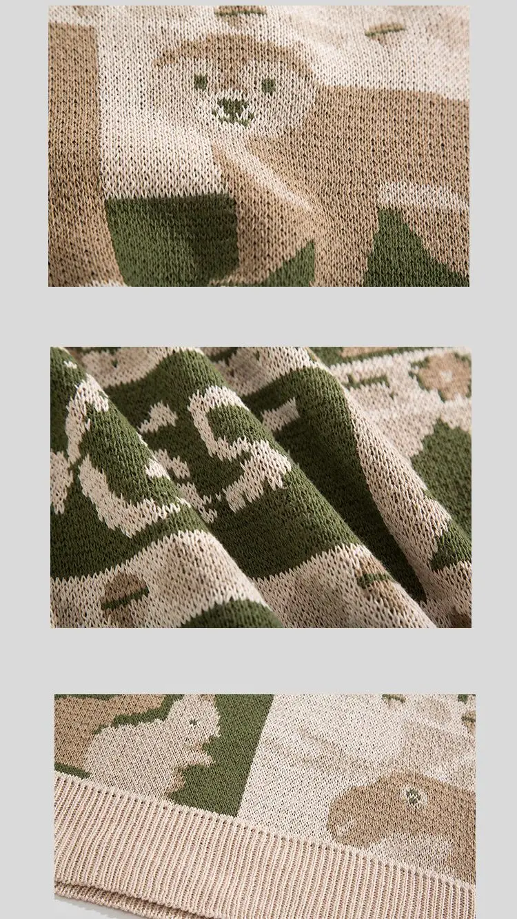 Aidase mens outfits American Trend Hip-hop Teddy Bear Round Neck Sweater Men Clothing Women Autumn and Winter Pullover Loose Hip-hop Casual Top Y2k