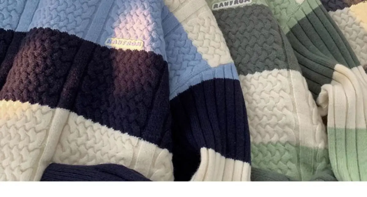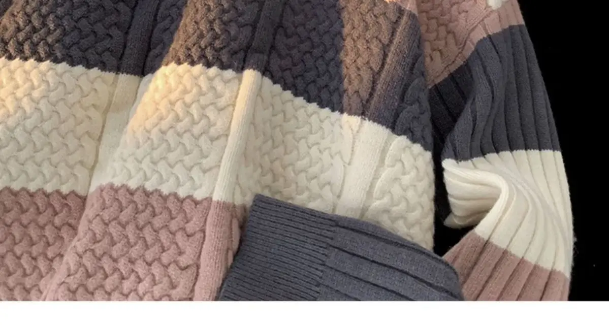 Aidase mens outfits Winter Men and Women Trendy Personalized Round Neck Striped Sweater Couple Lazy Style New Loose Casual Pullover Top Harajuku Y2k