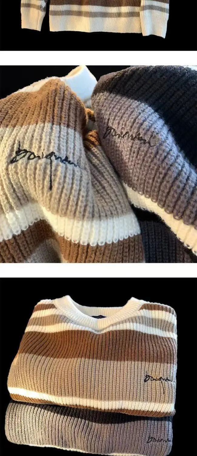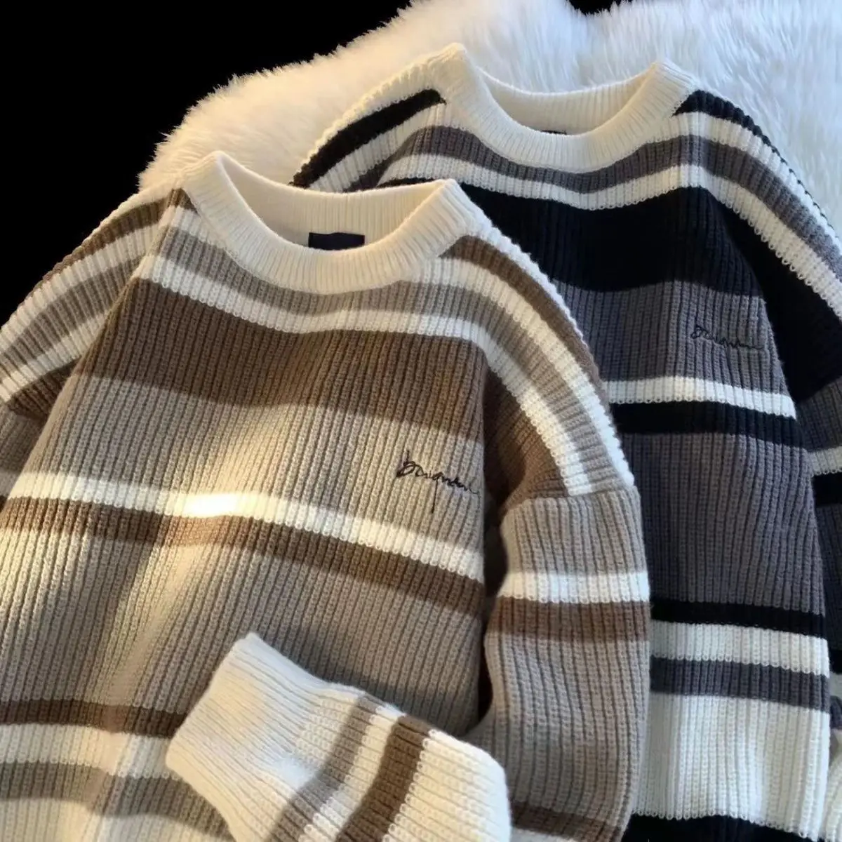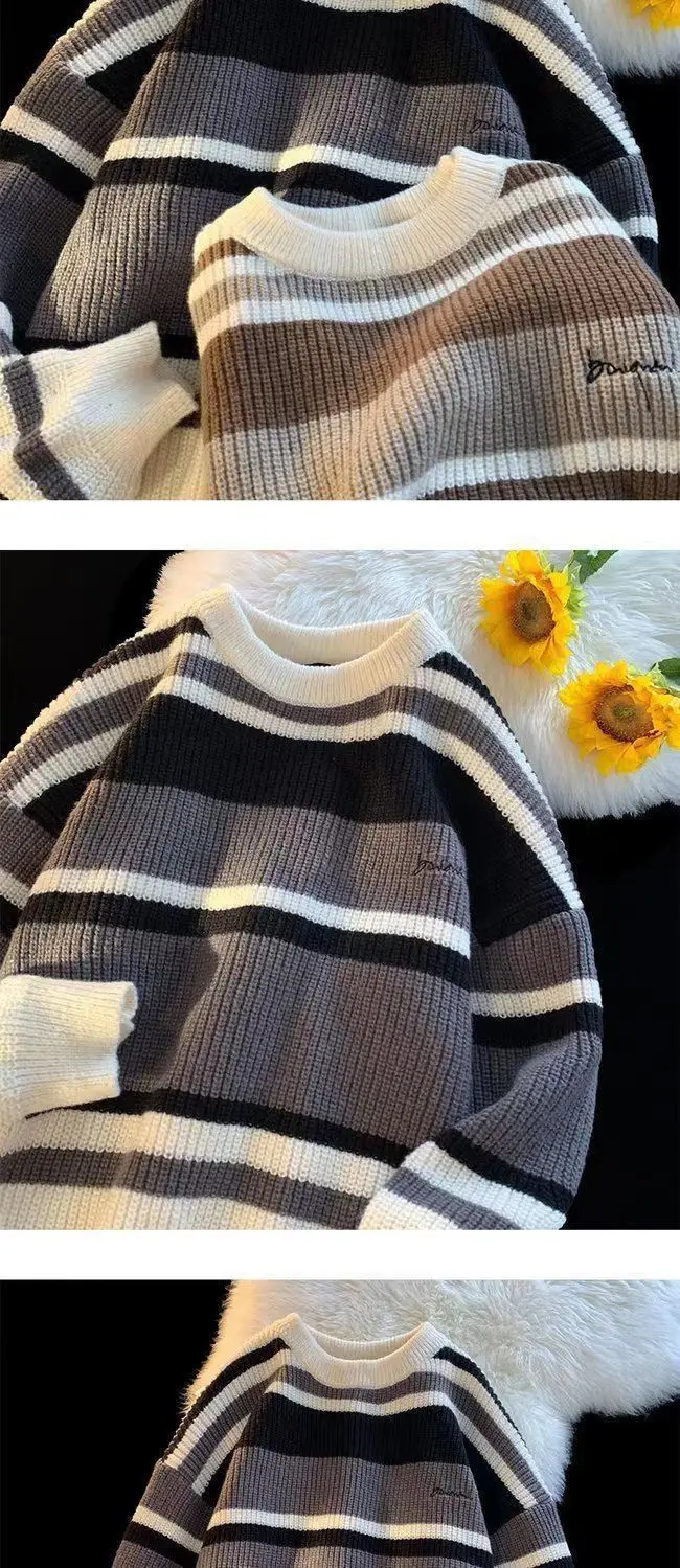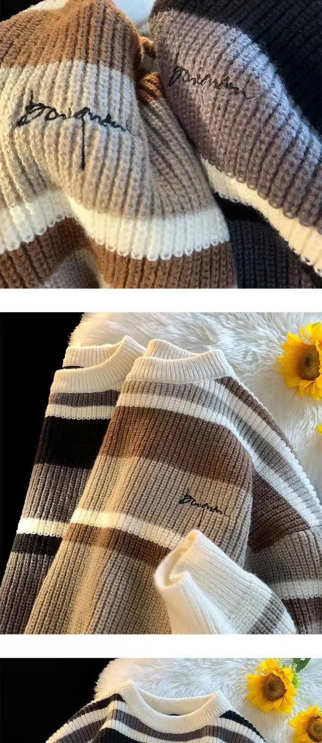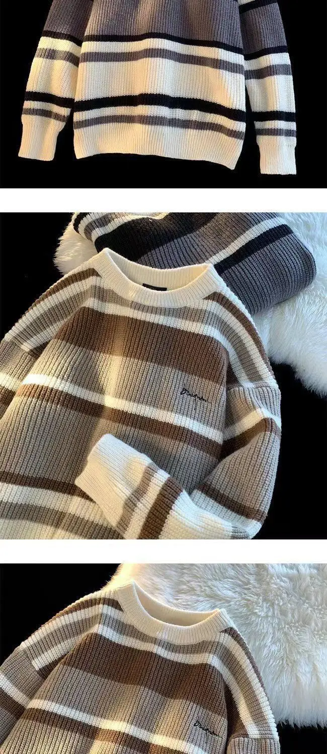 Aidase mens outfits Autumn and Winter Sweaters Men and Women Japanese Striped Round Neck Knitwear Lazy and Loose Couple Hip-hop Casual Top Harajuku