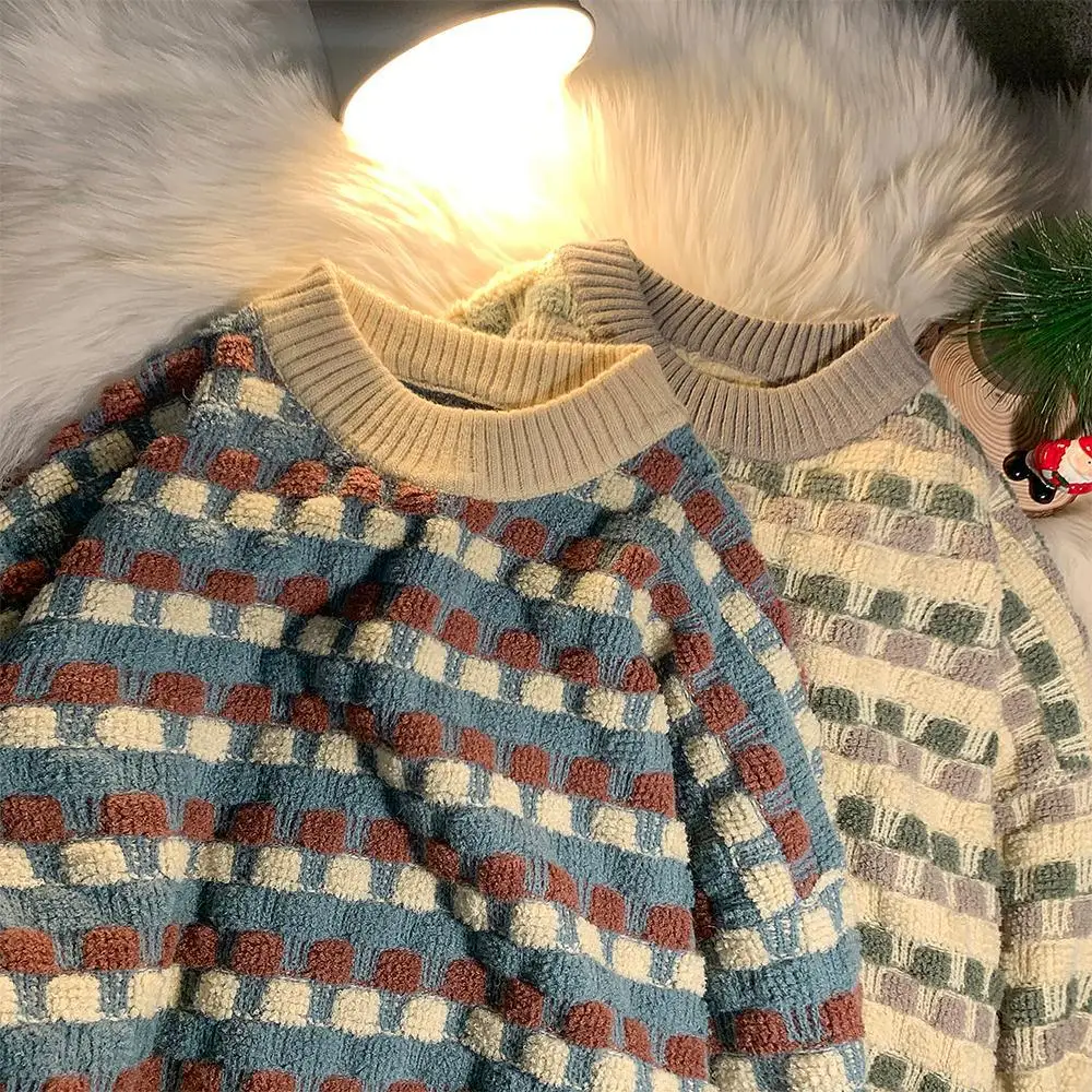 Aidase Autumn and Winter New Round Neck Sweater for Men and Women Loose Korean Casual Couple Trend Pullover Knit Top Harajuku Y2k