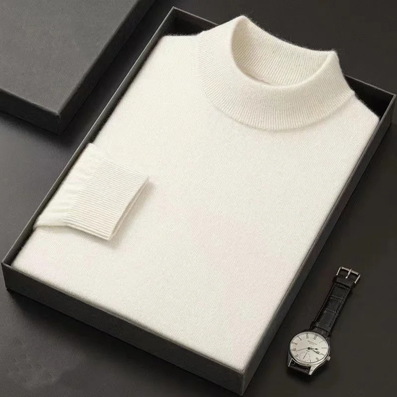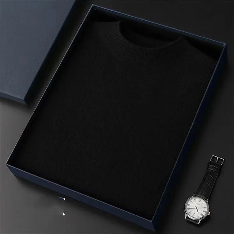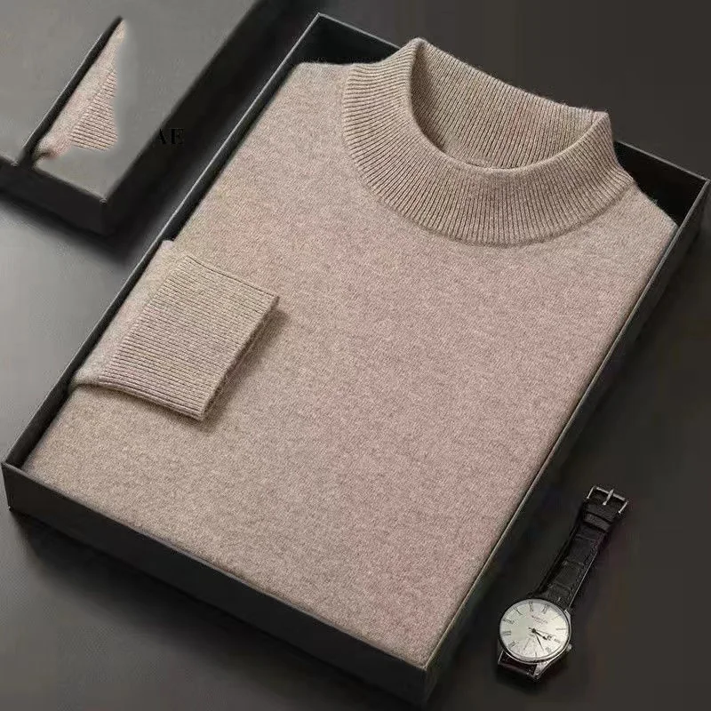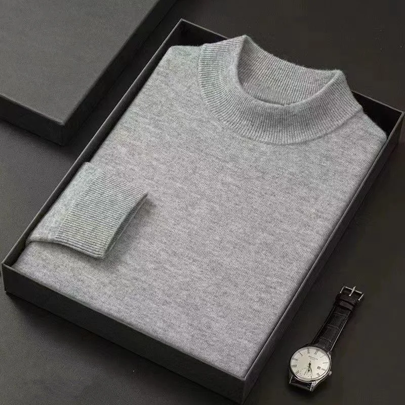 Aidase mens outfits Autumn and Winter Fashion Simple Half High Neck Thickened Warm Solid Color Knit Sweater with Cashmere Men's Bottom Sweater