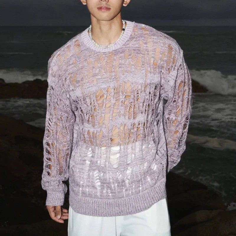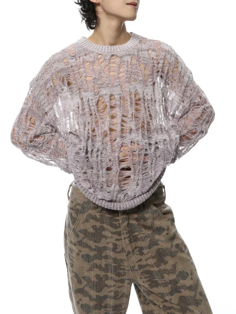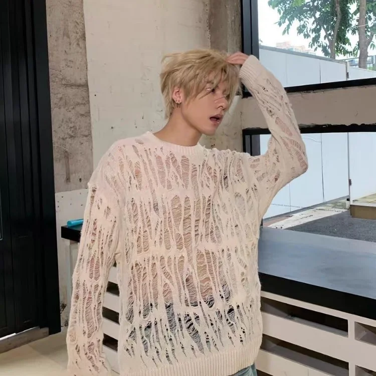 AIDASE  -  Early Autumn Niche Hollowed Out Loose Knit Sweater Japanese Style Men's  Women's Hole Breaking Lazy Pullover Sweater Trendy Tops