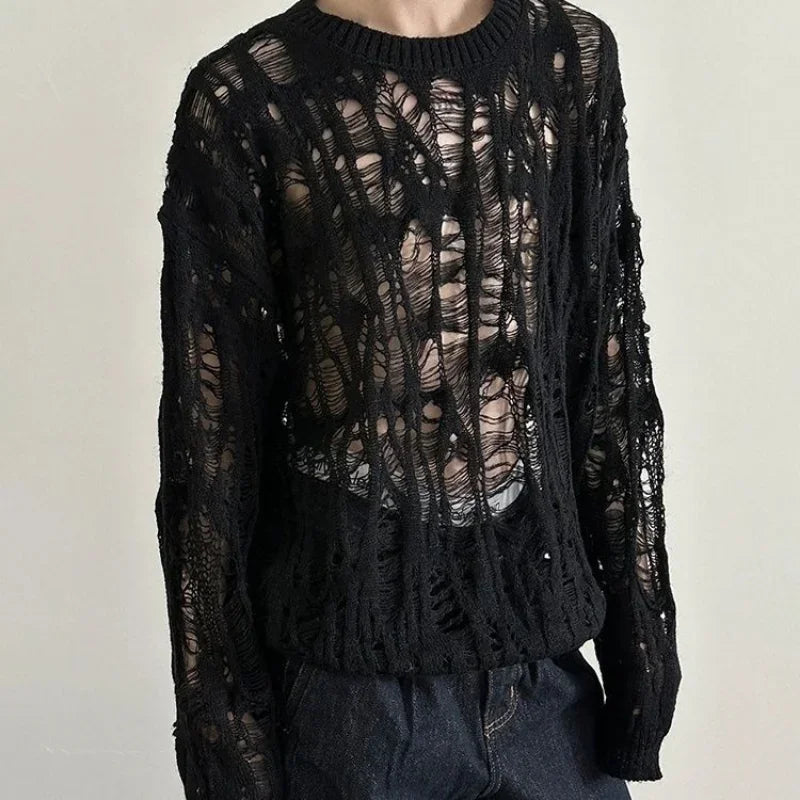 AIDASE - Early Autumn Niche Hollowed Out Loose Knit Sweater Japanese Style Men's Women's Hole Breaking Lazy Pullover Sweater Trendy Tops