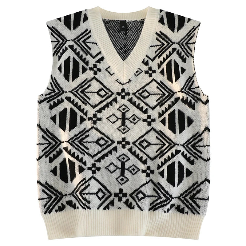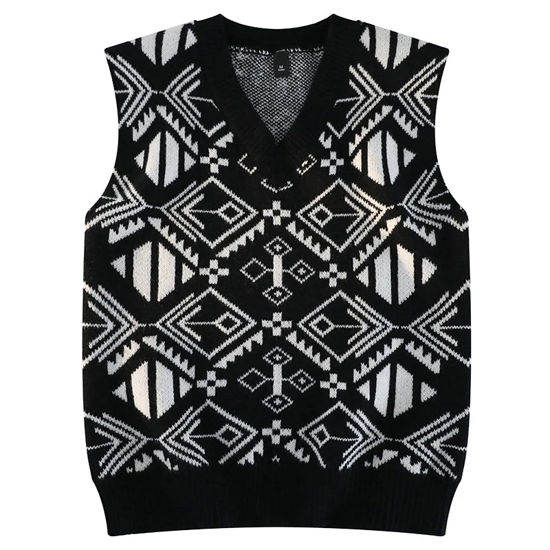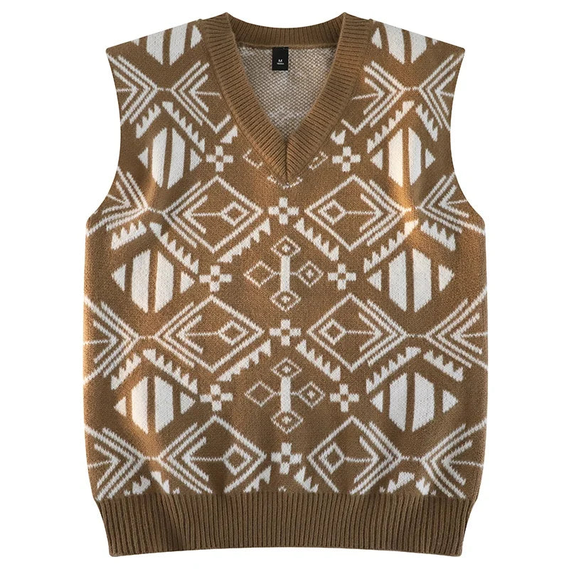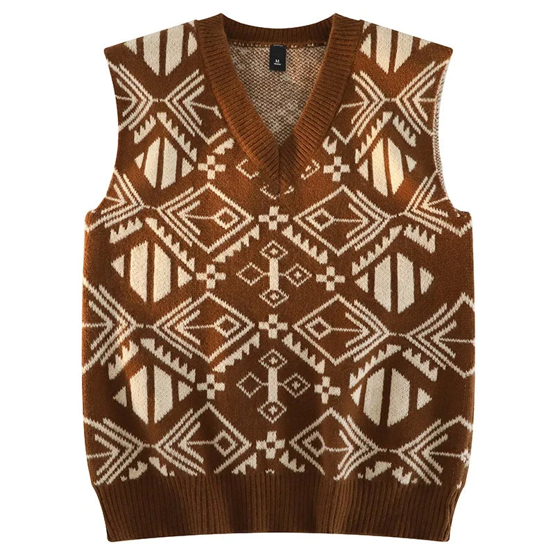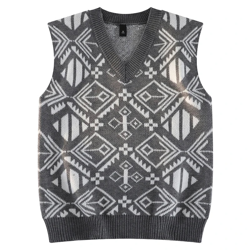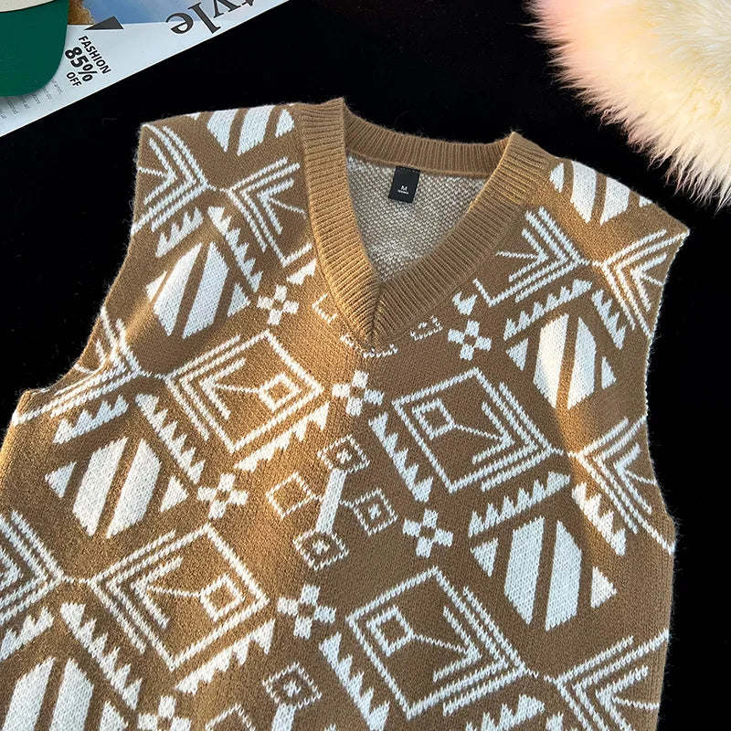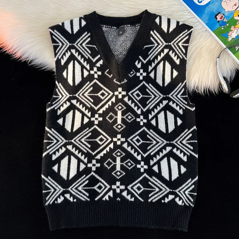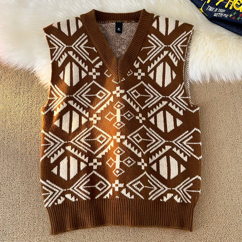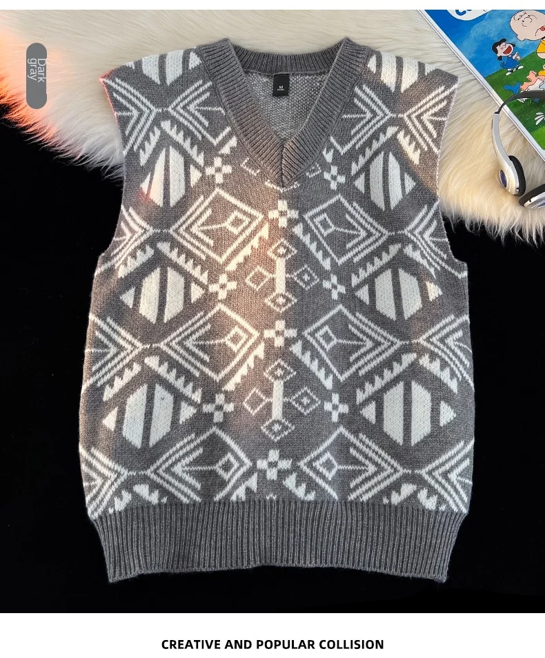 AIDASE - Fashion College Style Sweater Vest Men's V-neck Japanese Retro Knitted Sweater Daily Sleeveless Simple Jacquard Design