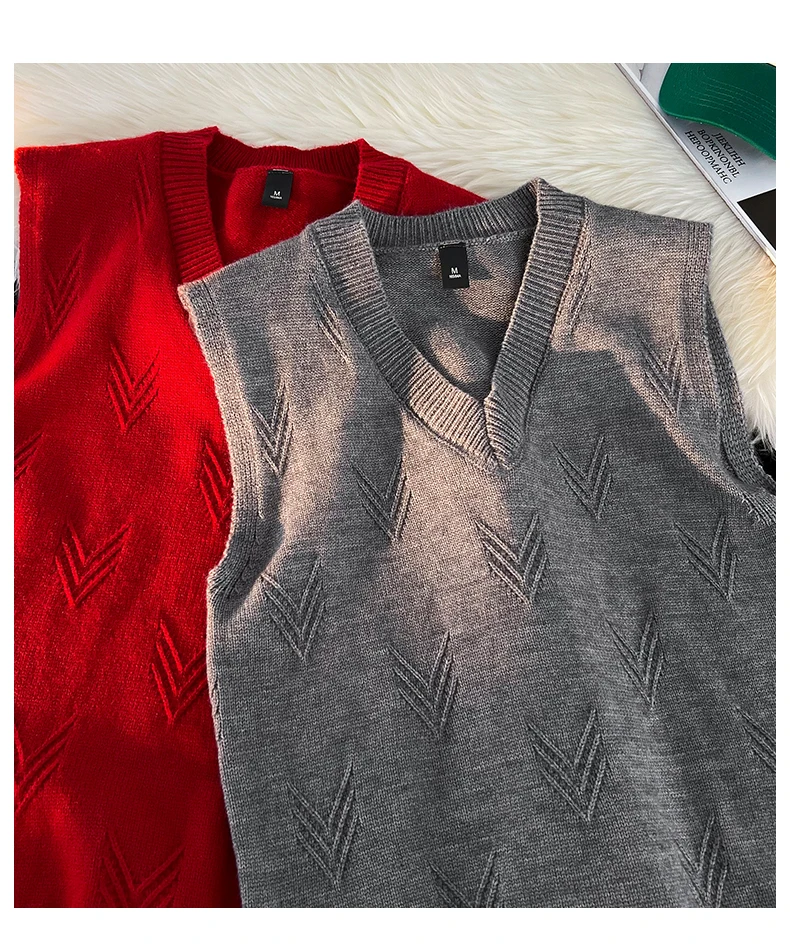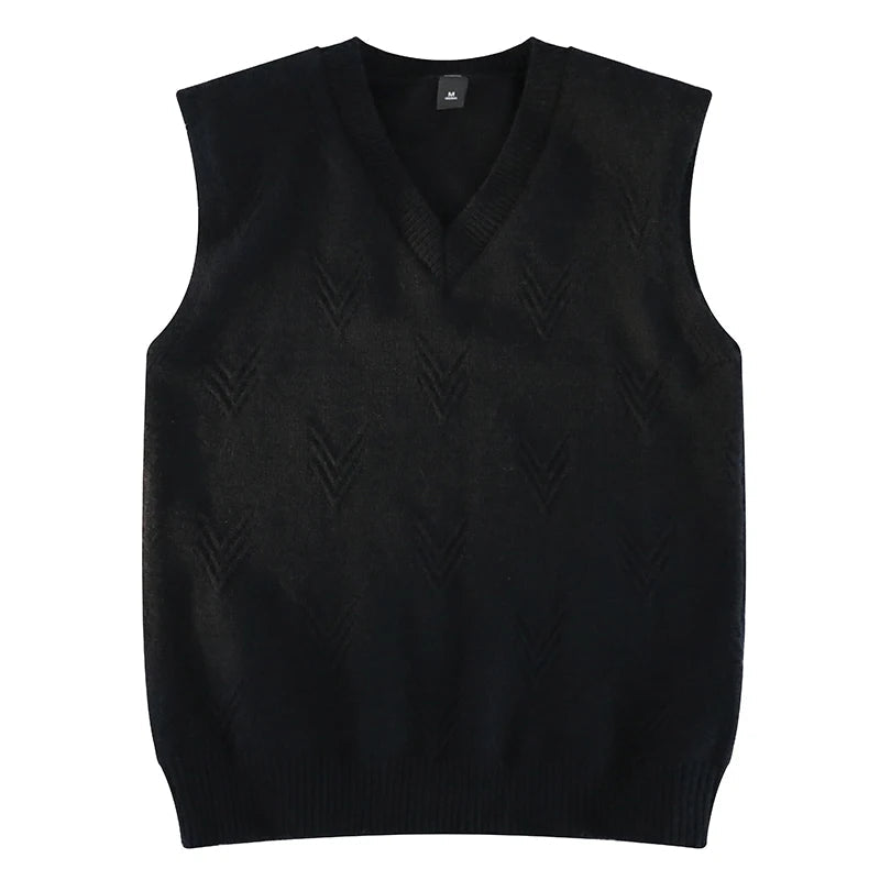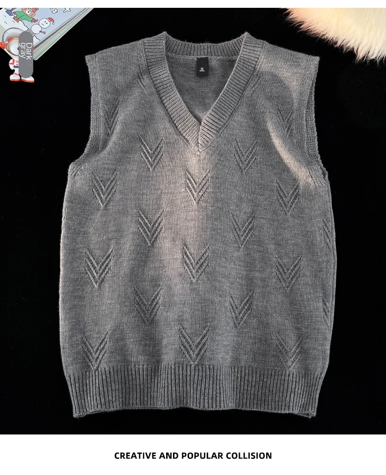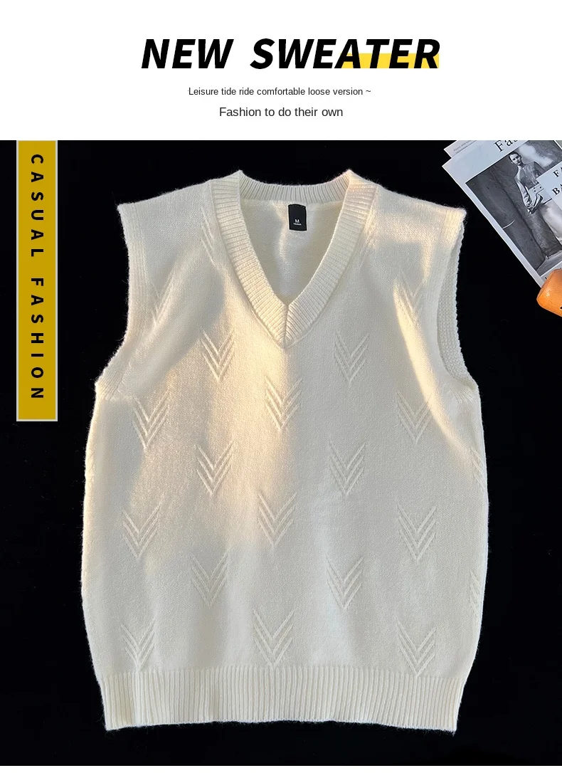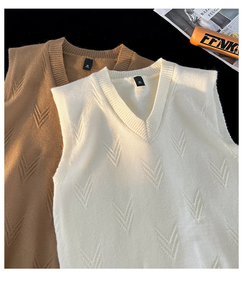 AIDASE - Fashion Niche Jacquard Design Pattern Men Sweaters Versatile Casual Comfortable Autumn and Winter Warm V-Neck Knit Sweater Vests
