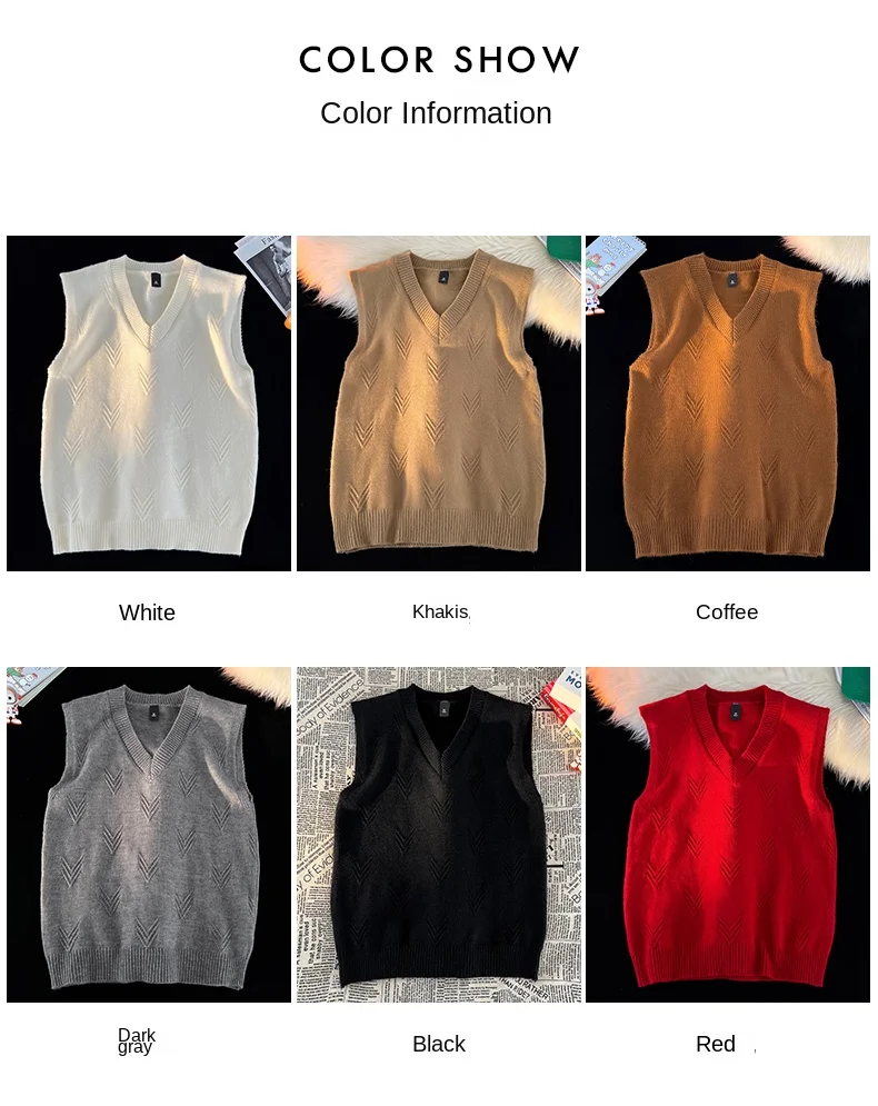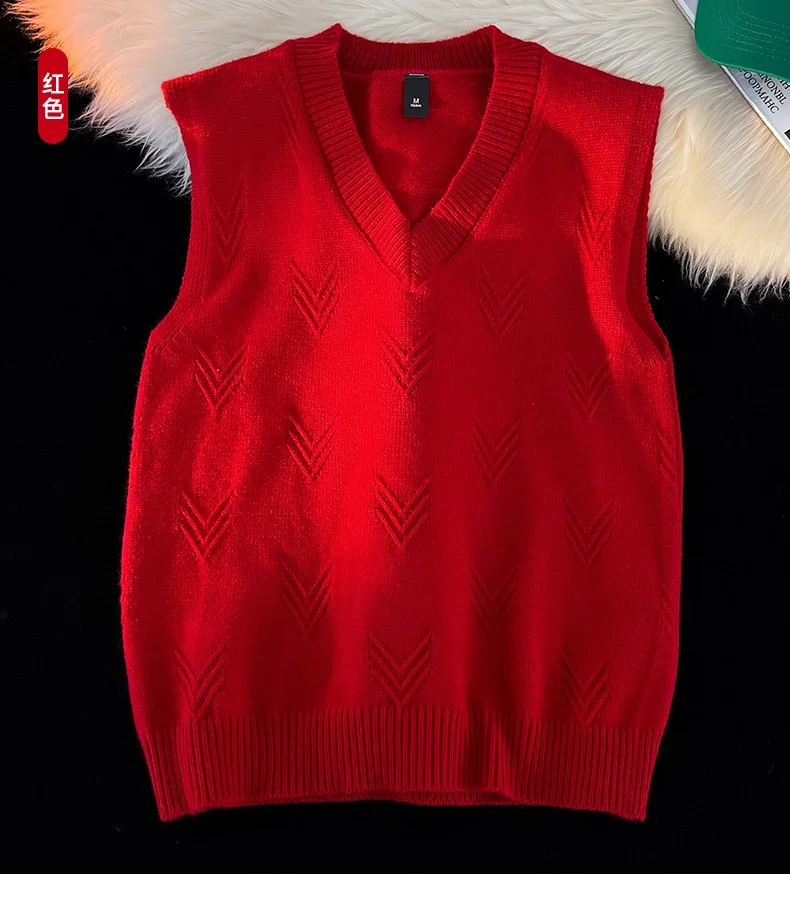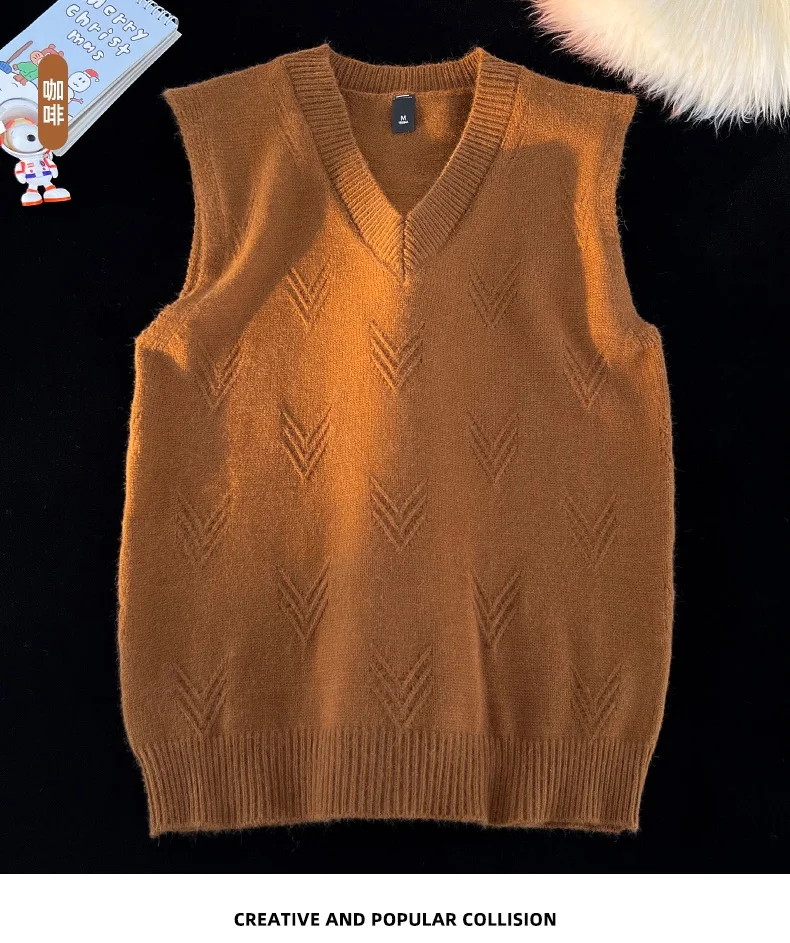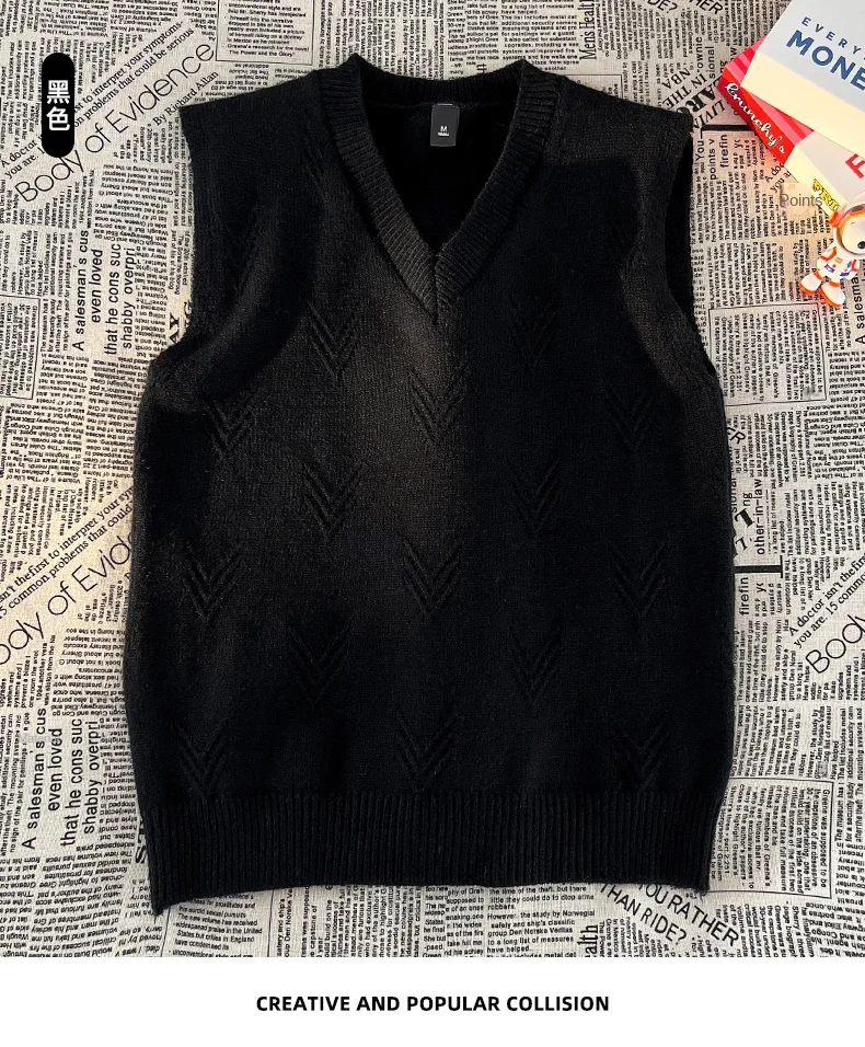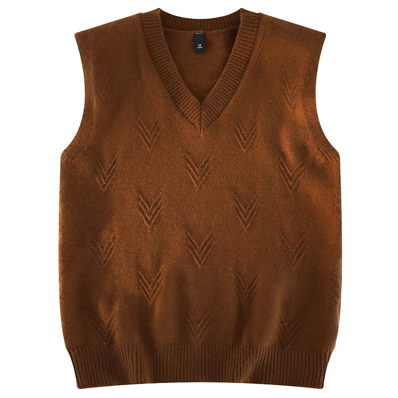 AIDASE - Fashion Niche Jacquard Design Pattern Men Sweaters Versatile Casual Comfortable Autumn and Winter Warm V-Neck Knit Sweater Vests