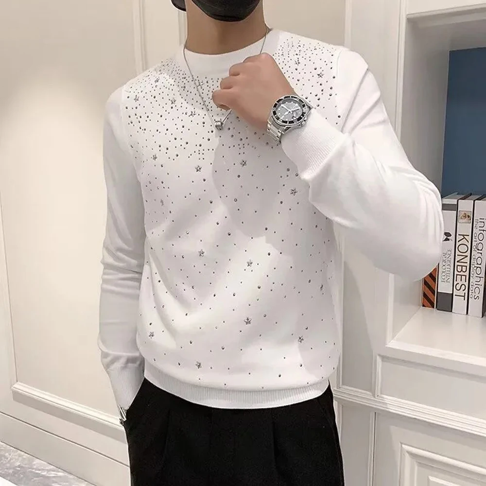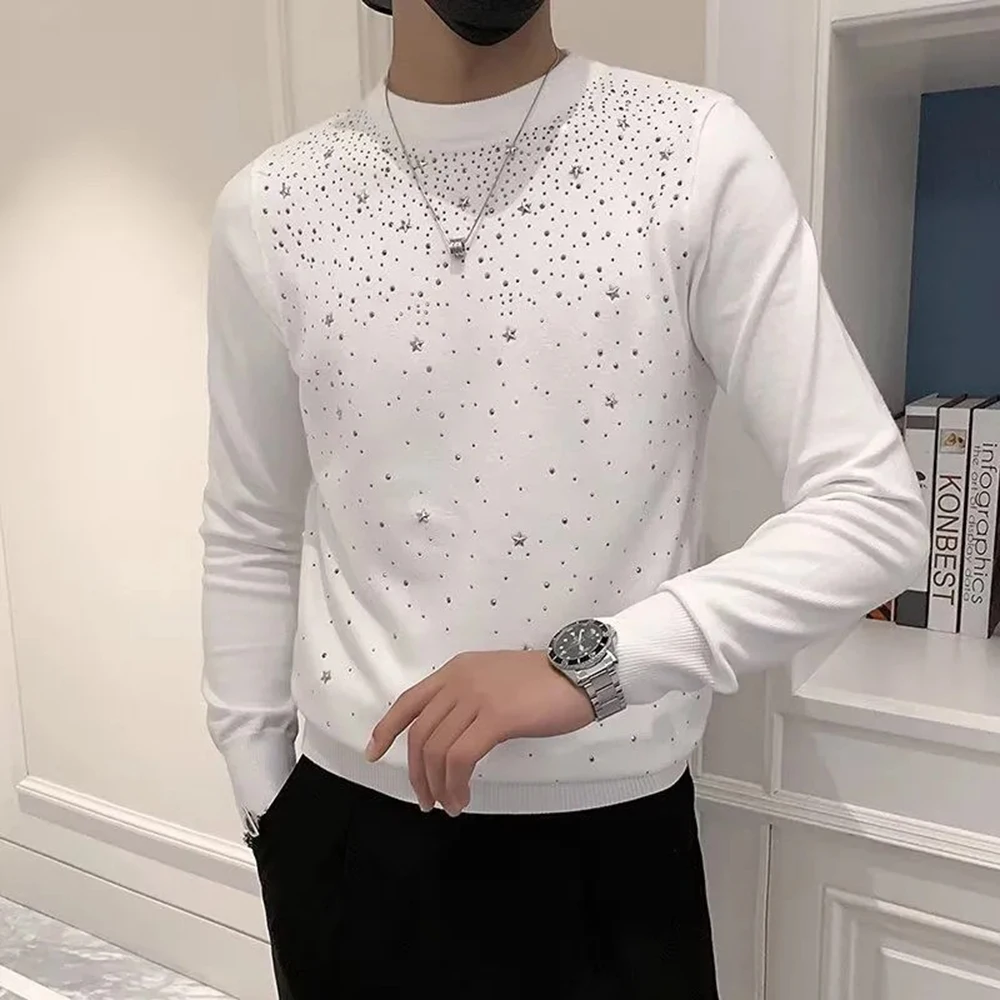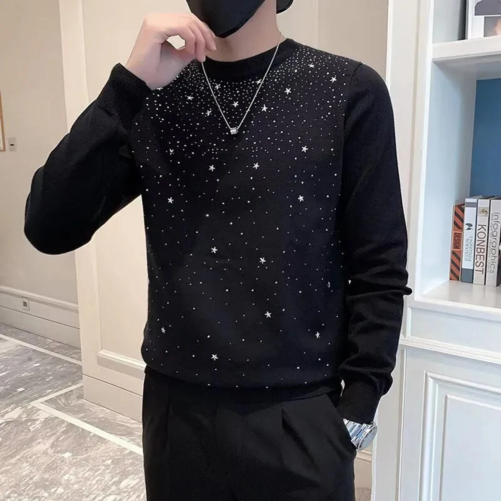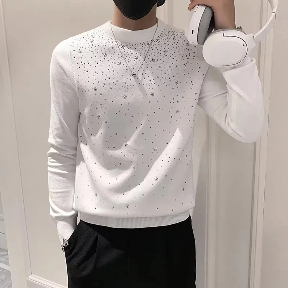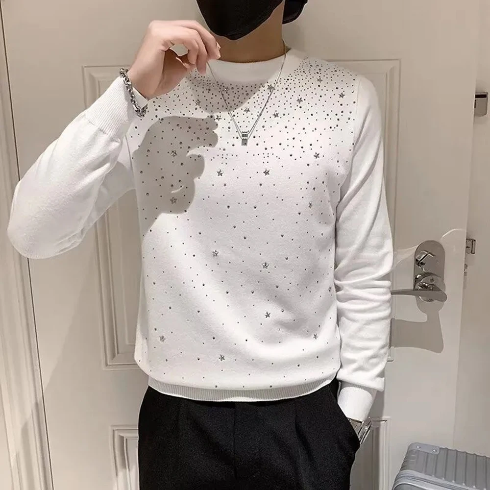 Aidase mens outfits Ins Trendy Brand Men's Sweater Starry Sky Hot Diamond Pullover Winter Cool Slim Fit Korean Sweatshirt Base Shirt Homme Clothing