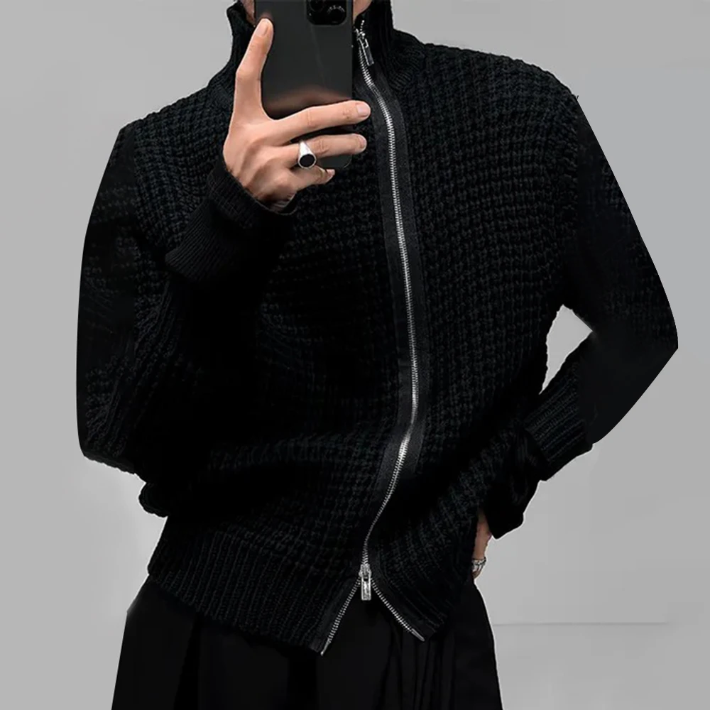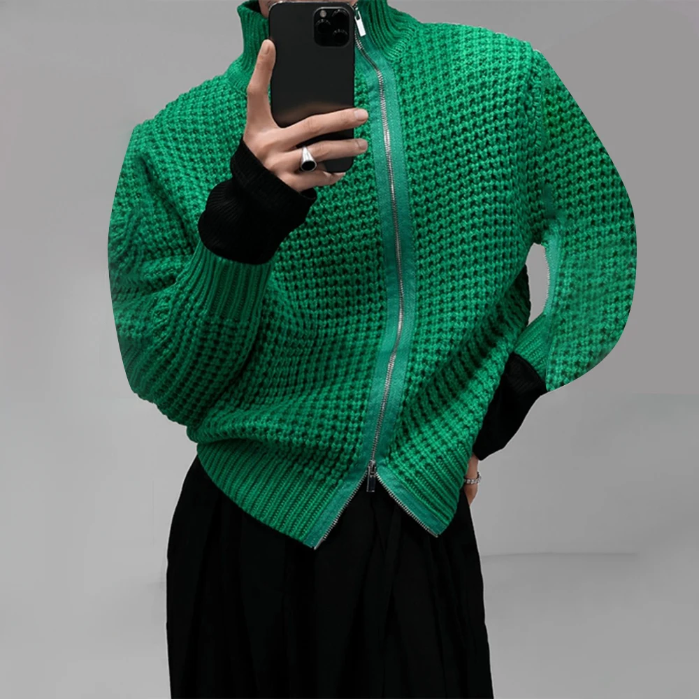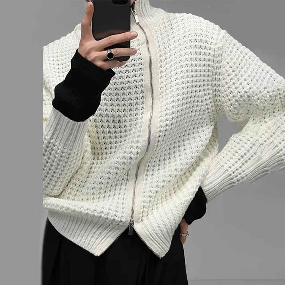 Aidase winter outfits men Men Sweater Plaid Hollow Two-Way Zipper Knit Sweater Autumn Fashion Streetwear Solid Color Casual Long-Sleeve Top Men'S Clothing