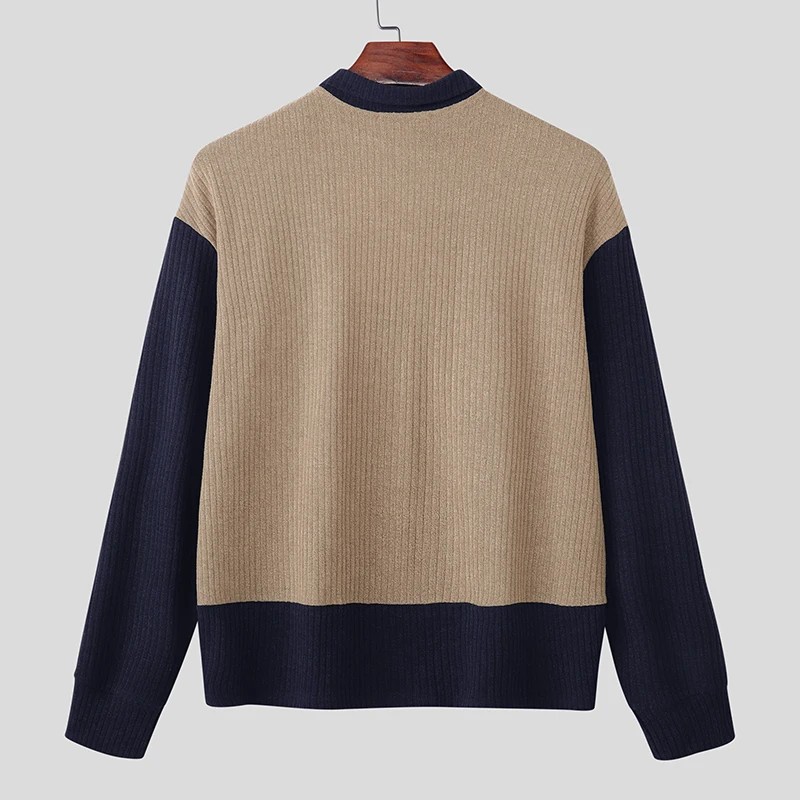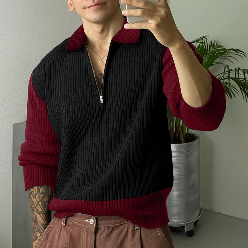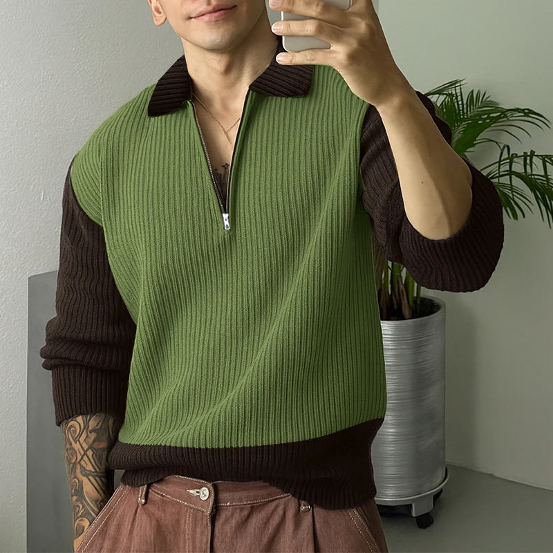AIDASE - Men Sweaters Patchwork Knitted Lapel Long Sleeve Zipper Male Pullovers Streetwear 2025 Autumn Casual Men Clothing S-5XL
