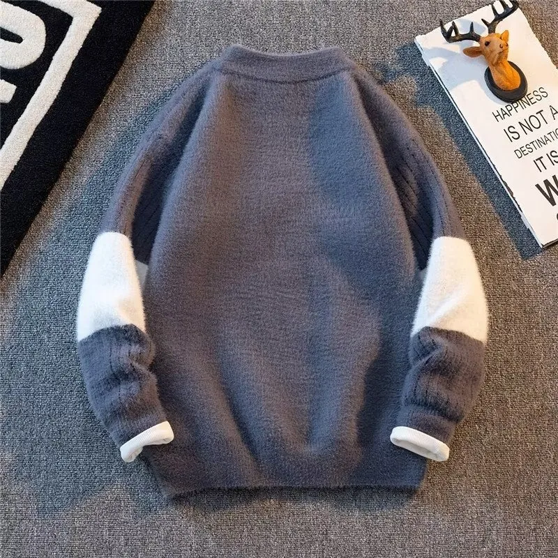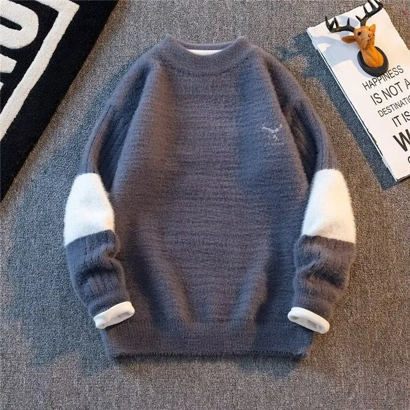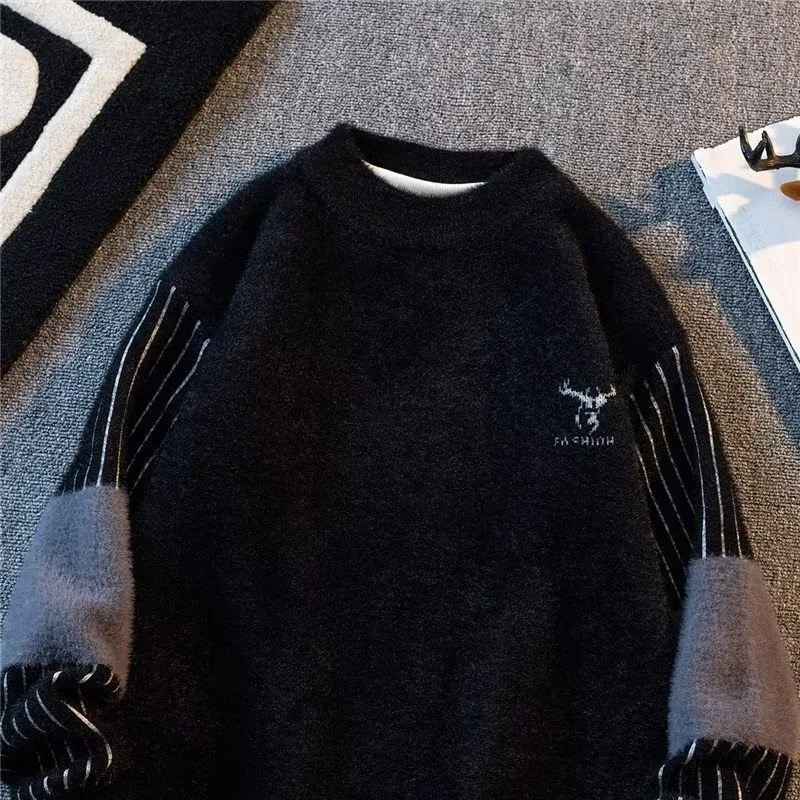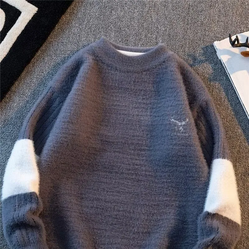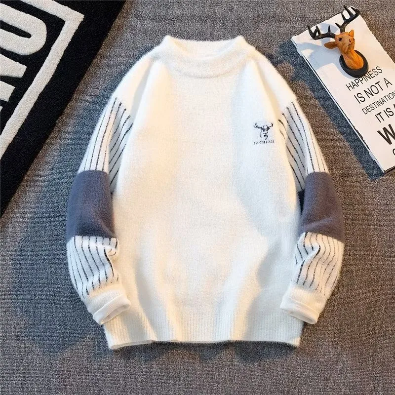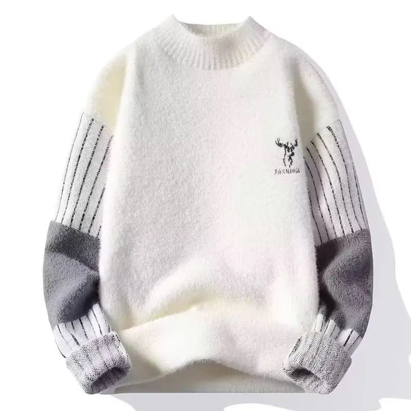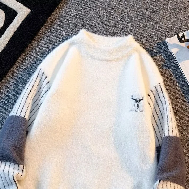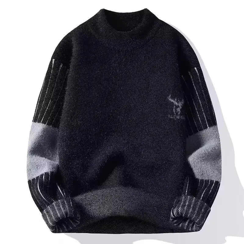 AIDASE - Men's autumn and winter pullover with thick base knit sweater light luxury semi high neck warm solid color simple sweater