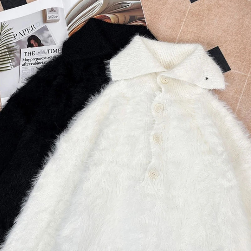 AIDASE - Men's Knitted Sweater Autumn Winter New Korean Style Loose Long Sleeve Turn-down Collar Solid Color Men Pullovers 21E7577