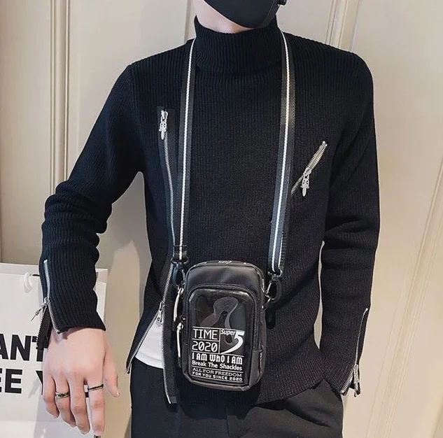 Aidase Motorcycle Men's Clothing Turtleneck Pullovers Zipper Knit Sweater Male High Collar Zip-up Black Neck Y2k Streetwear A Heated
