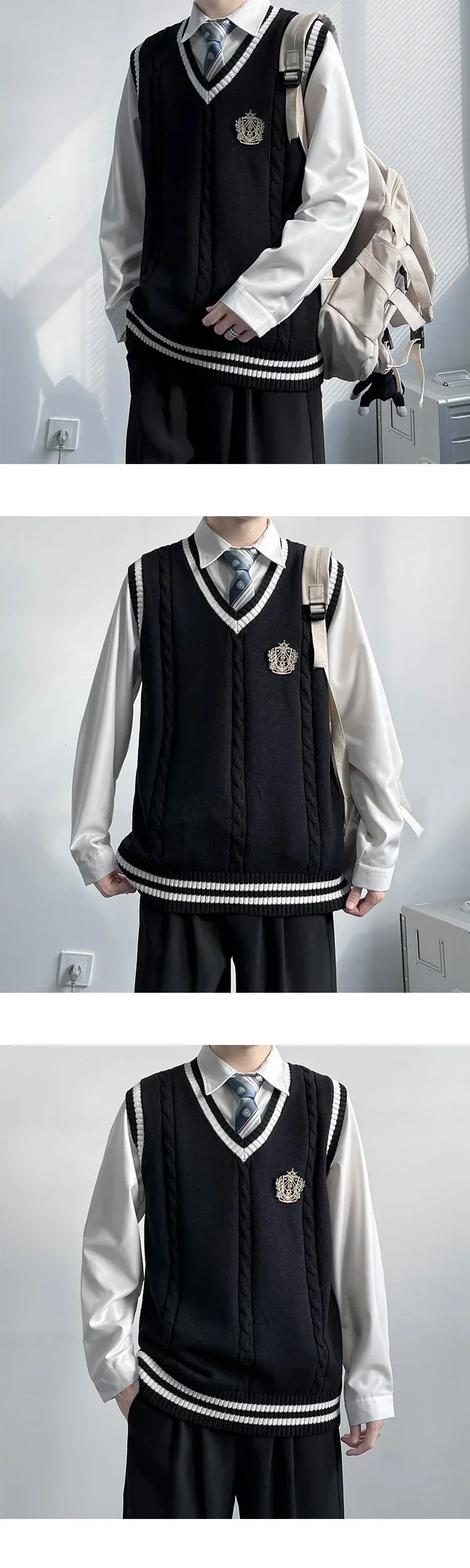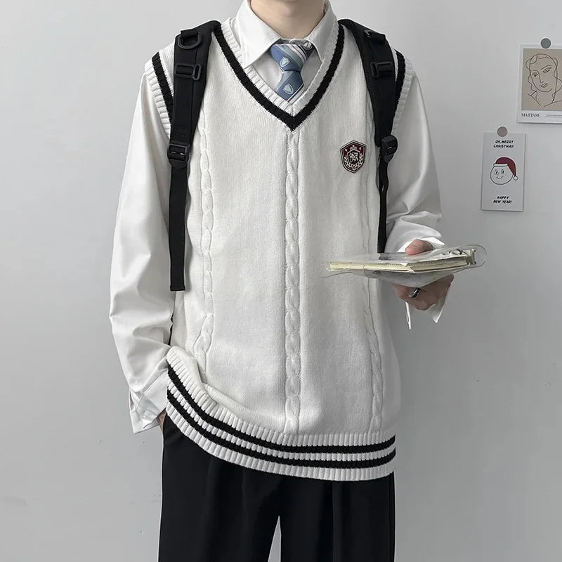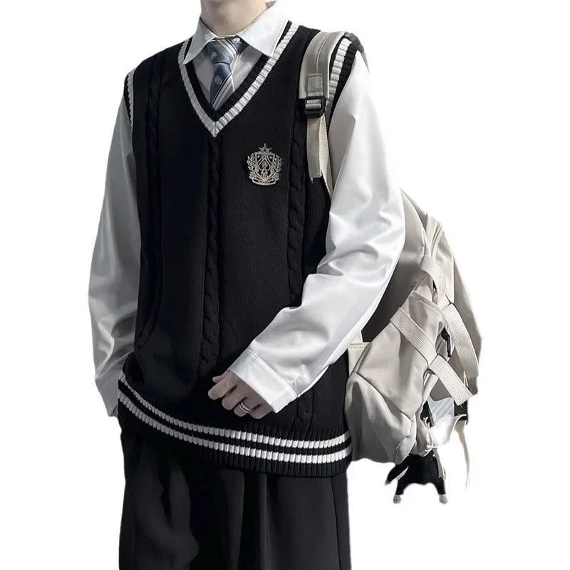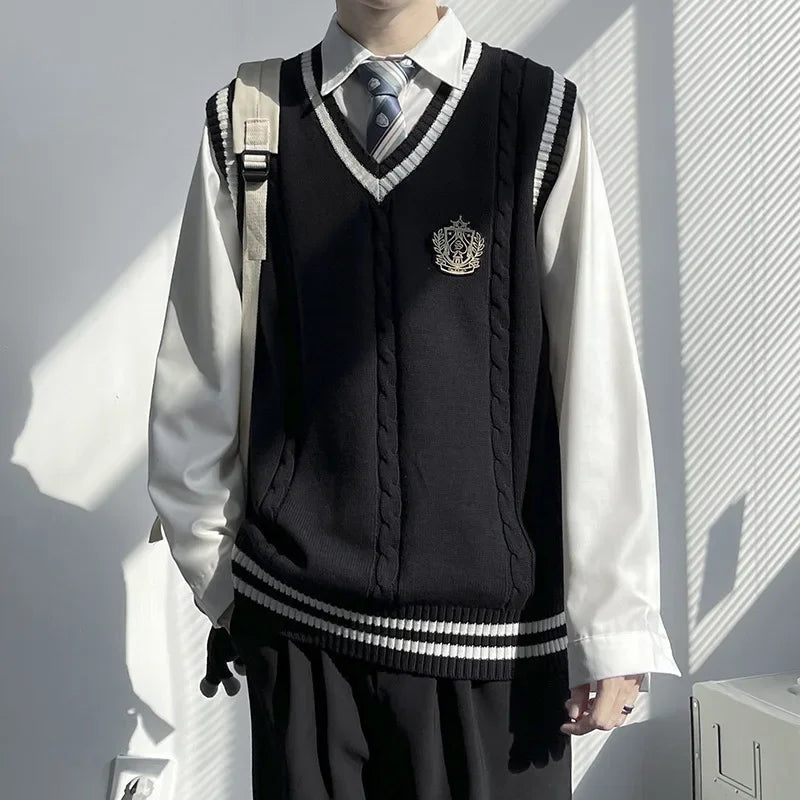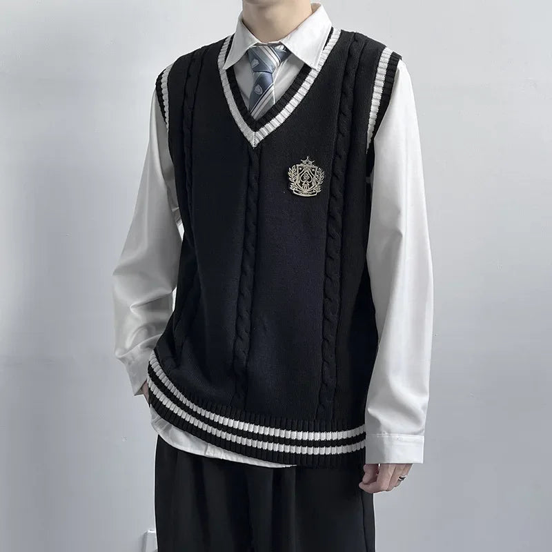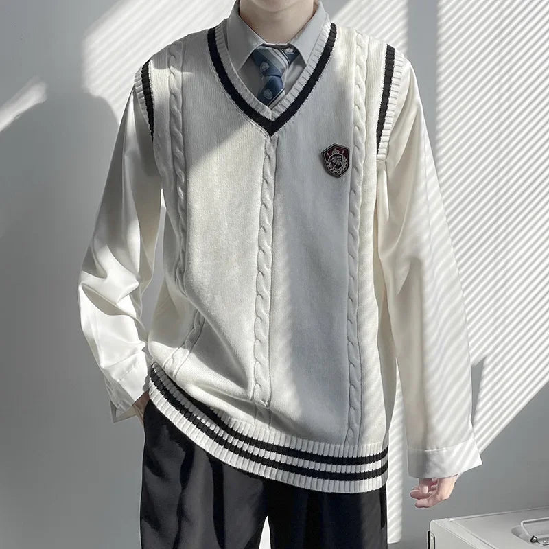 AIDASE - Original Design Men's Autumn Winter Knitted V-Neck Sweater Vest Uniform Style JK/DK Coat Unisex Fashionable College Theme