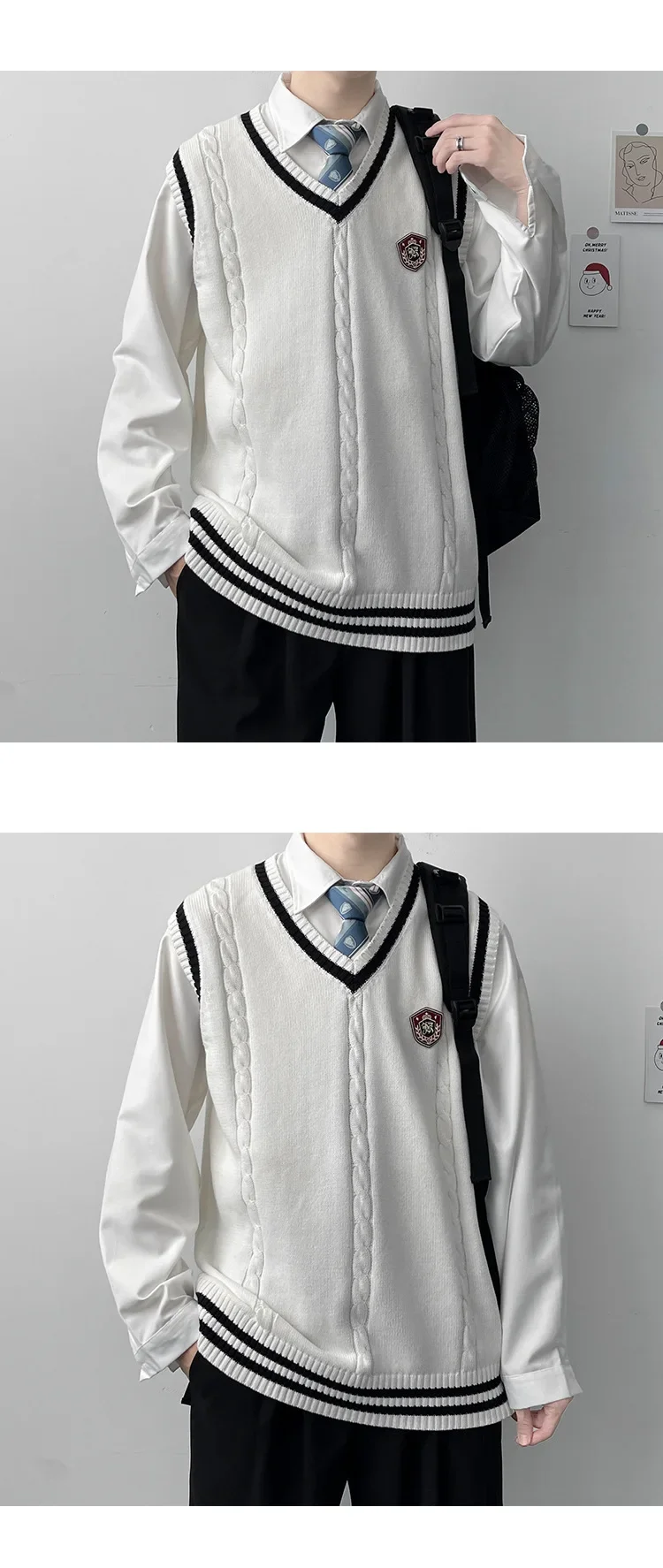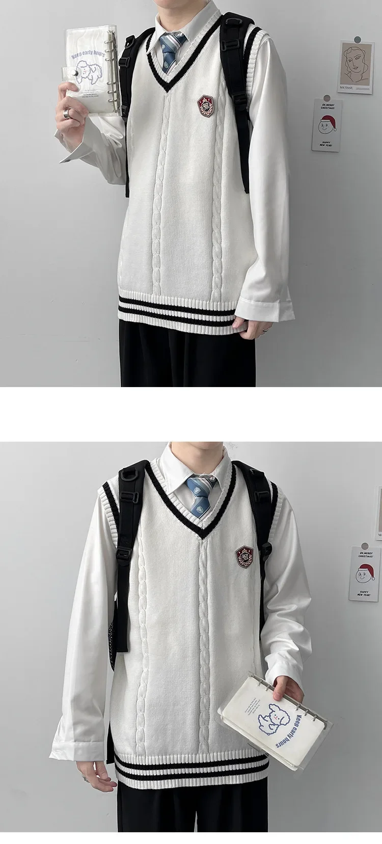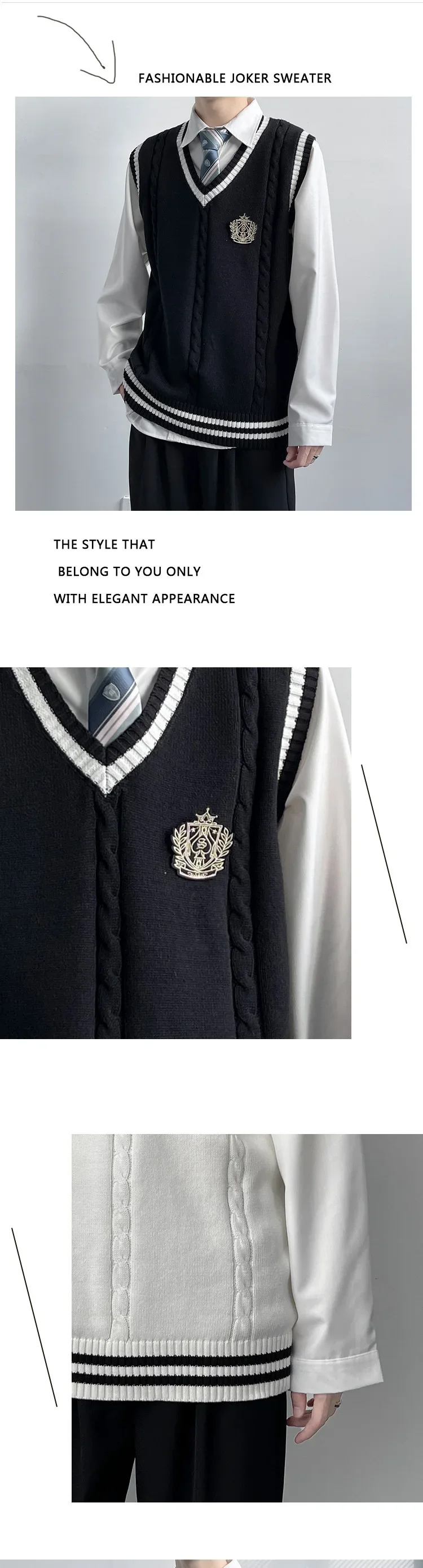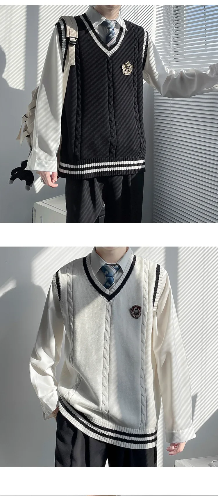 AIDASE - Original Design Men's Autumn Winter Knitted V-Neck Sweater Vest Uniform Style JK/DK Coat Unisex Fashionable College Theme