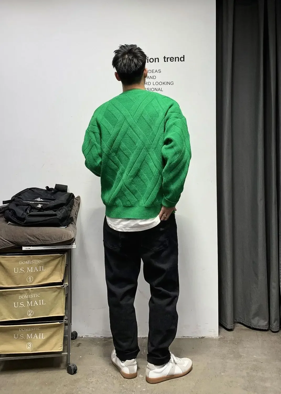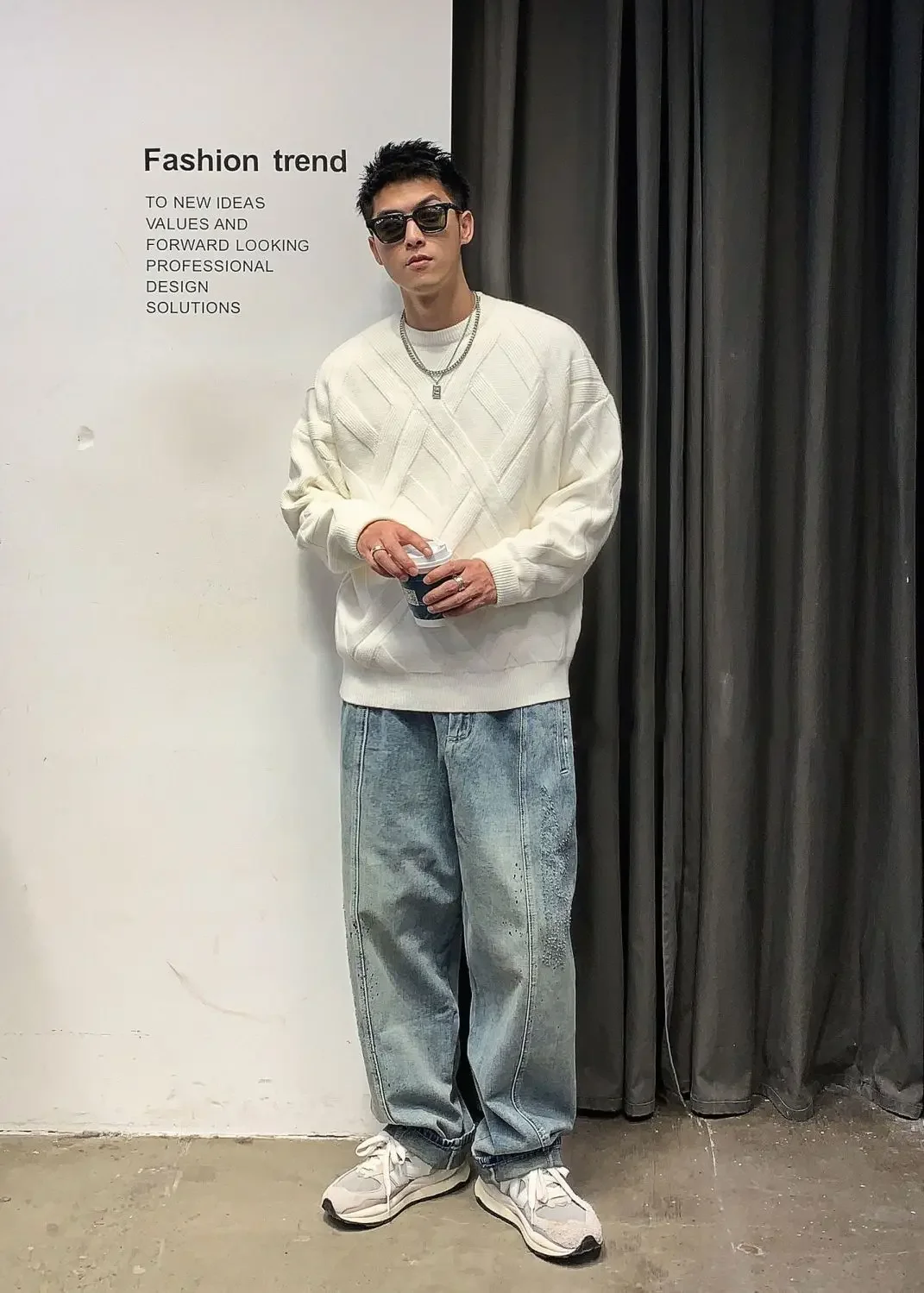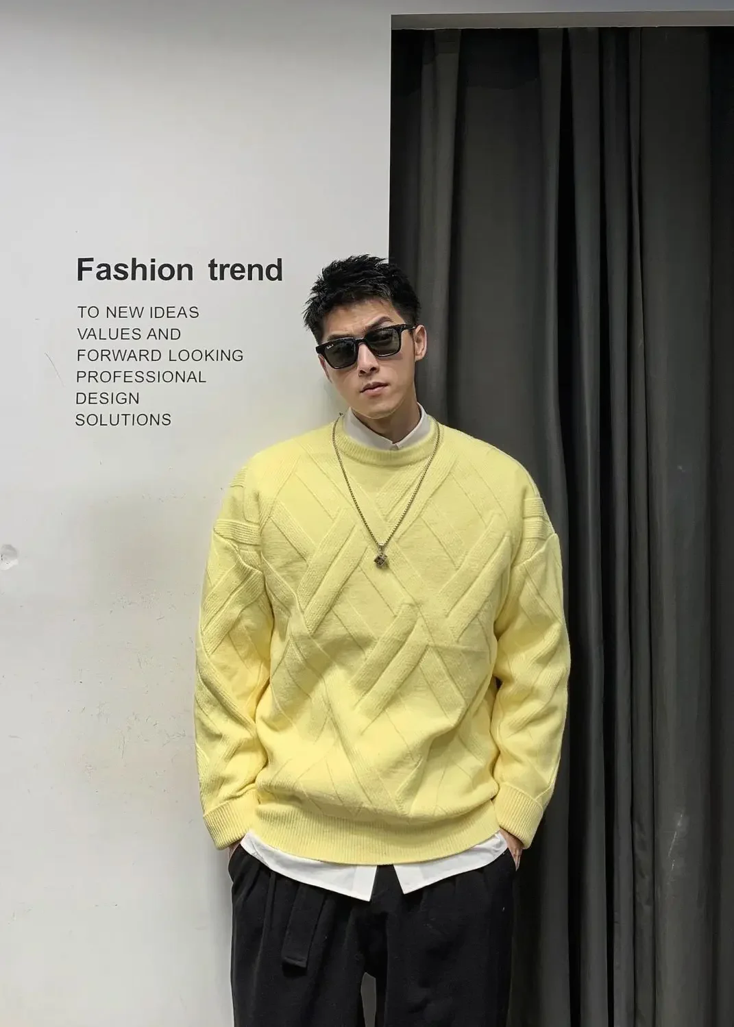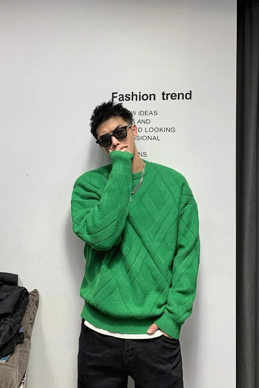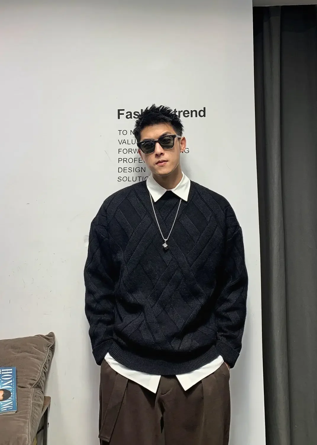 Aidase Pullovers Male Warm Knitwear Fleeced Round Collar Solid Color Men's Knit Sweater Crewneck Korean Reviews Clothes Designer Style