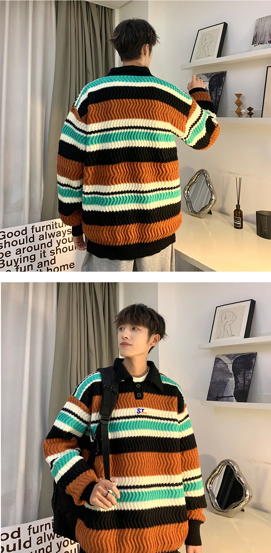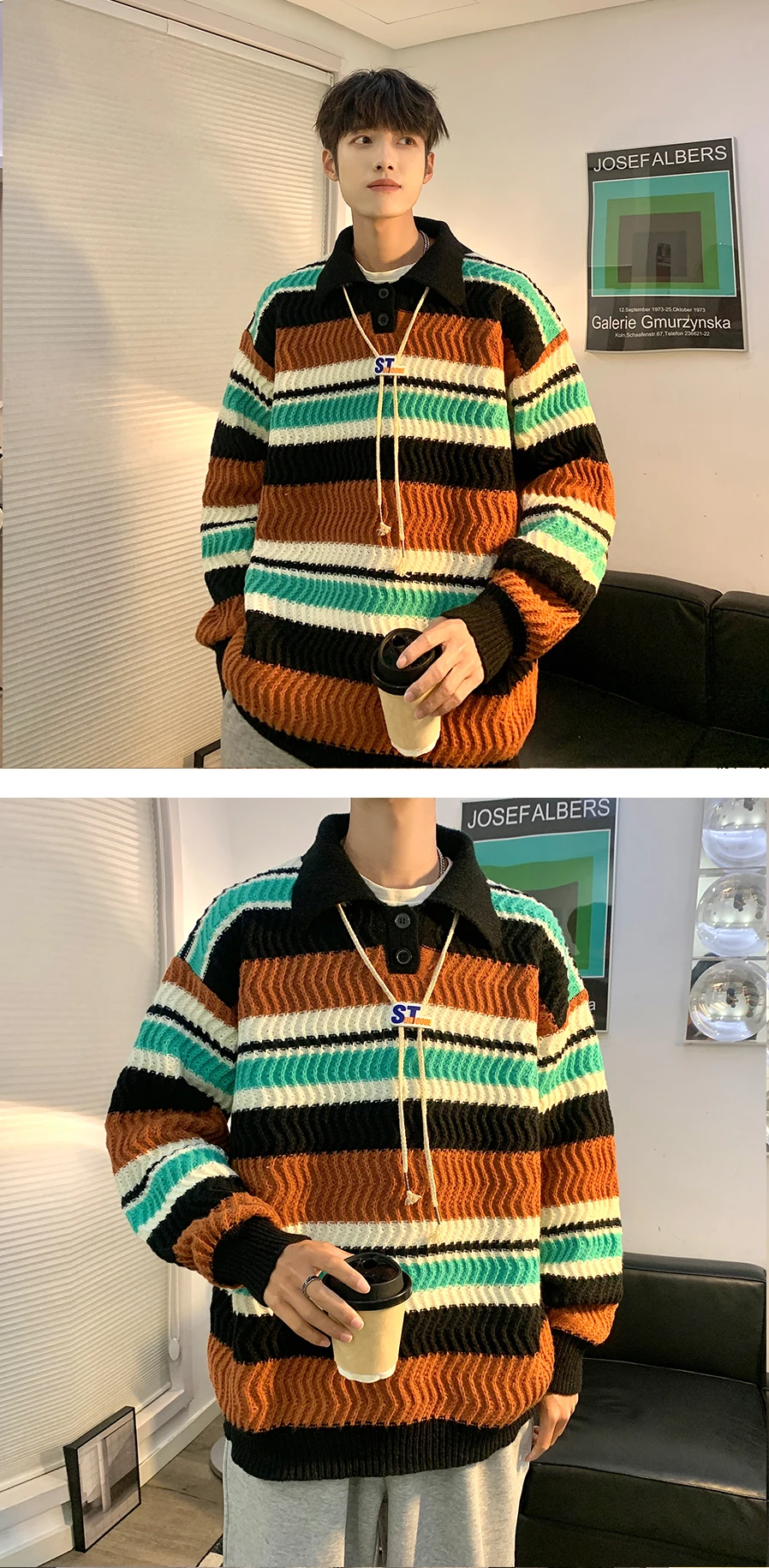 AIDASE  -  Rainbow Stripes  Ne Oversize Knitwear Men Lazy Sle Couple Sweater Autumn Winter New Arrival Casual Loose Fit Long Sve