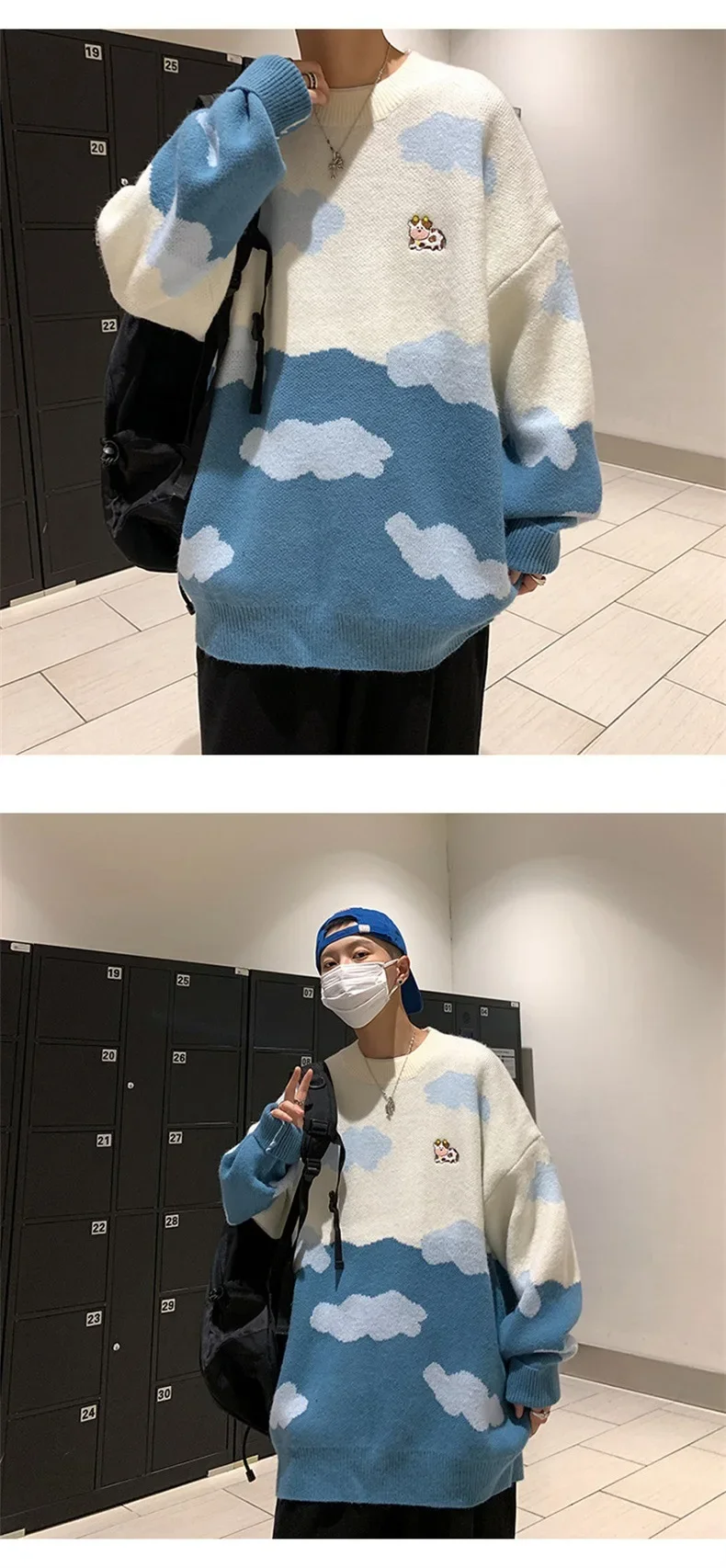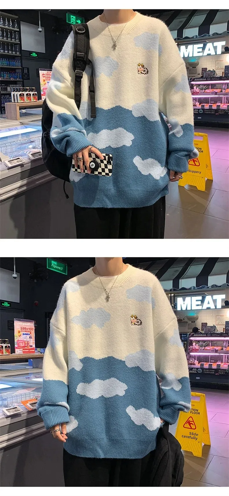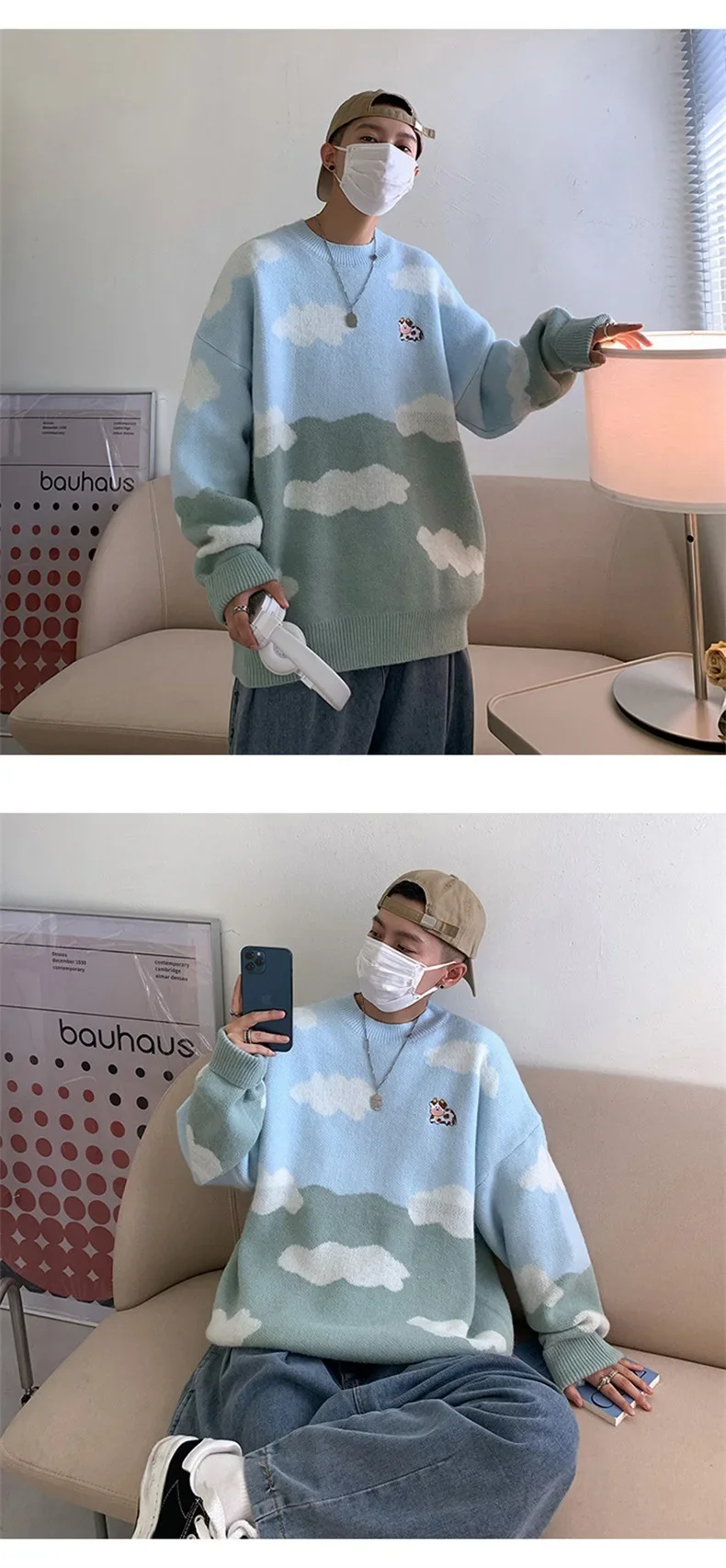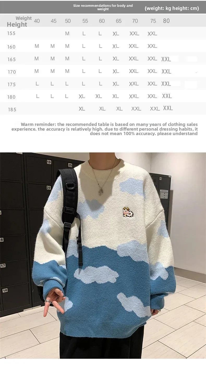 AIDASE - Soft Thickened Men's Knitted Sweater Winter Casual Loose Crew Neck Pullover Autumn Winter Ins Hong Kong Style Japanese System Ou