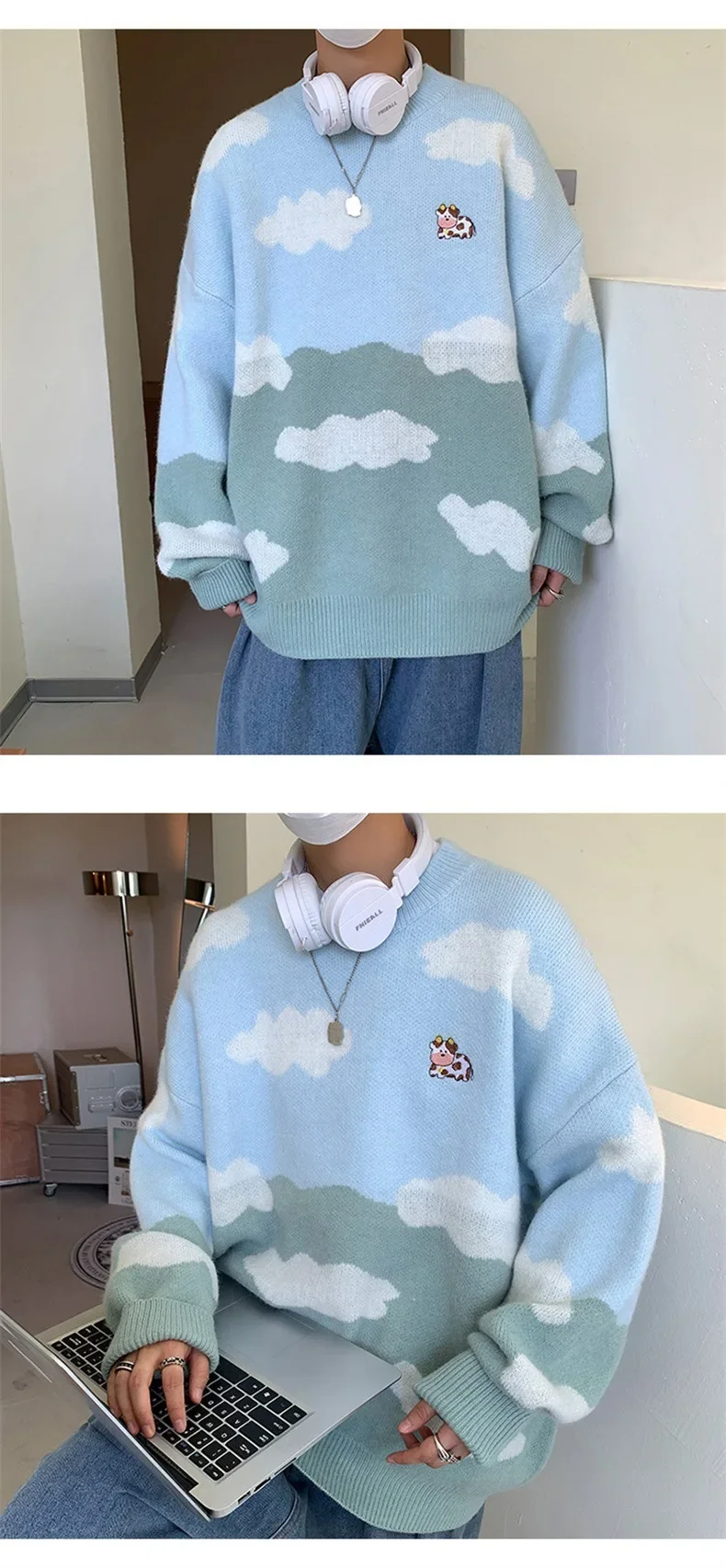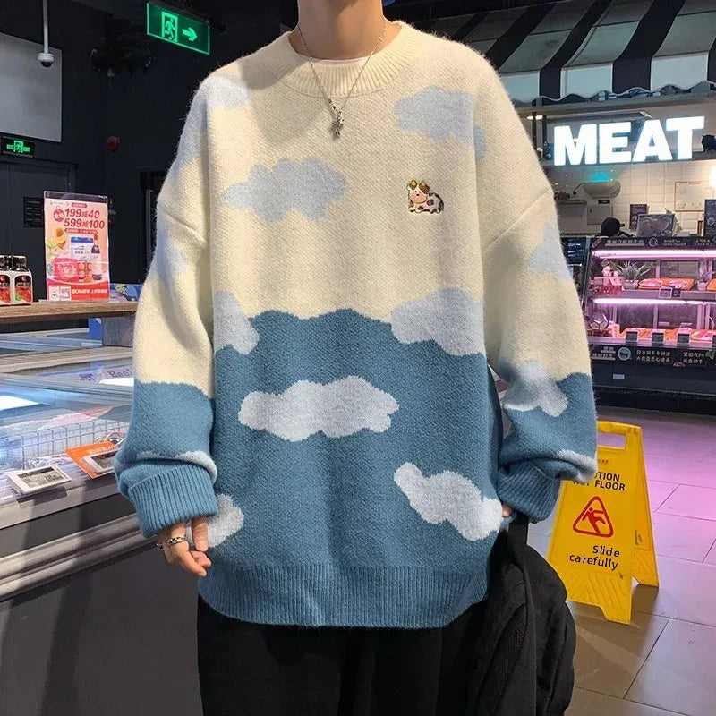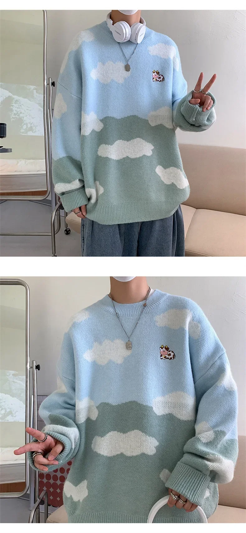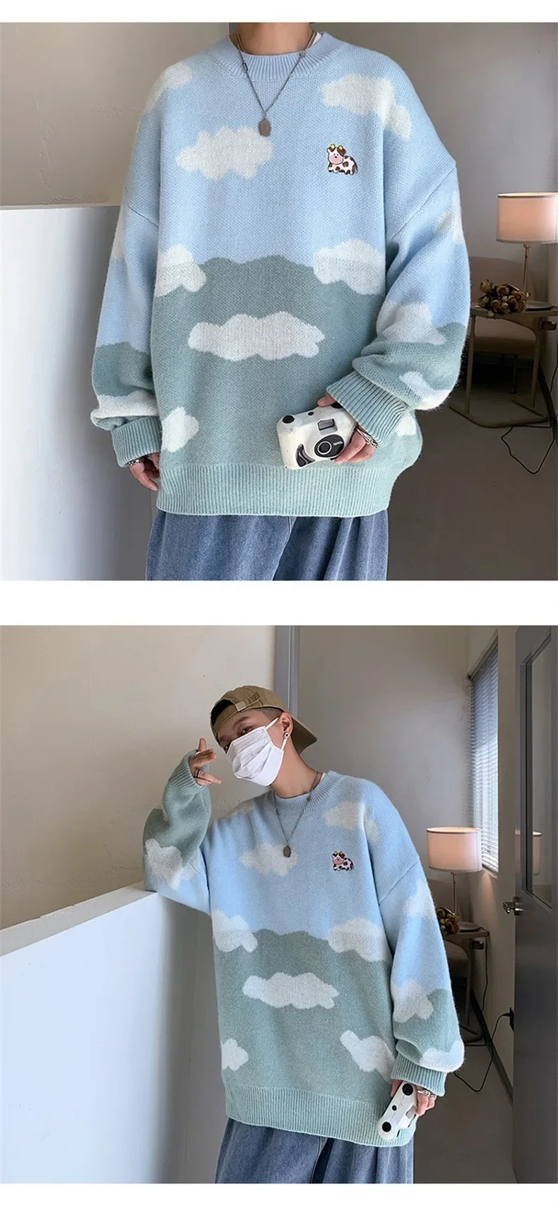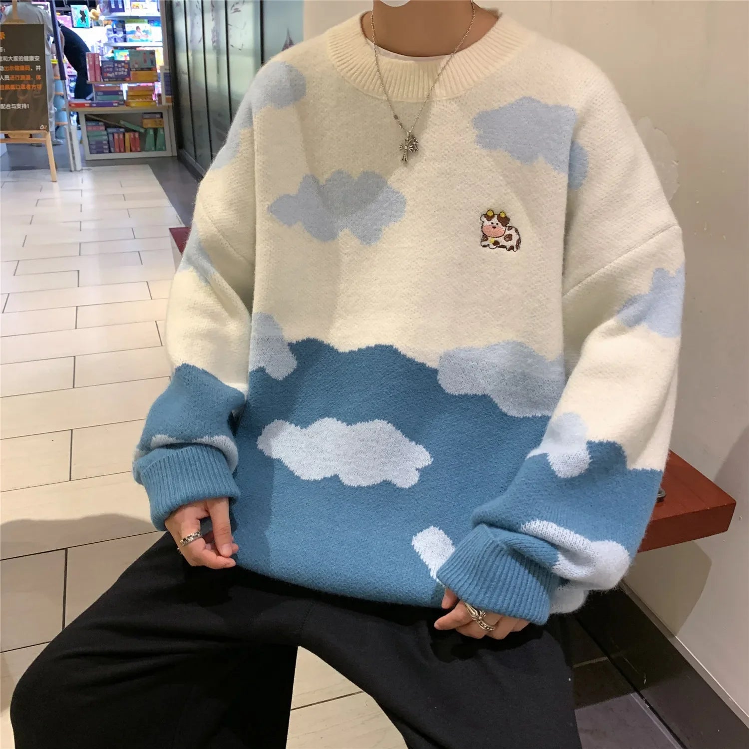 AIDASE - Soft Thickened Men's Knitted Sweater Winter Casual Loose Crew Neck Pullover Autumn Winter Ins Hong Kong Style Japanese System Ou