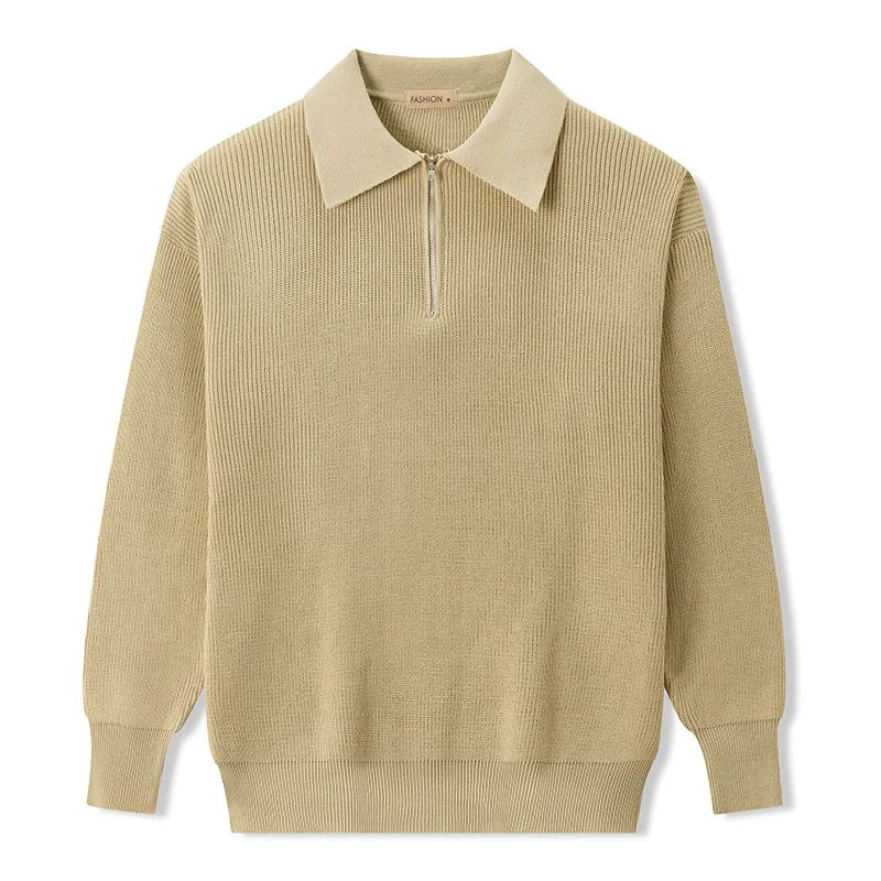 AIDASE - Spring Autumn Men's Turn-Down Collar Pullovers Long Sleeve Knitted Sweater Half Zipper Solid Casual Pullovers Man Loose Knitwear