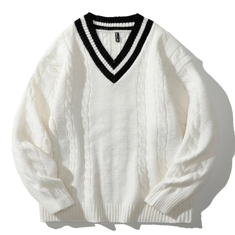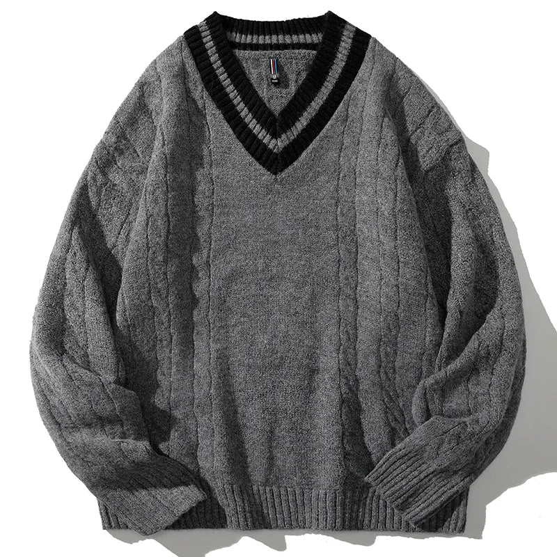 Aidase V-neck Section Men's Knitted Sweater Ribbed Hem Fashion Splicing Pullover Korean Loose Autumn Knit Sweater