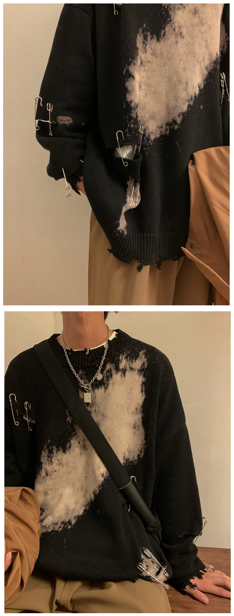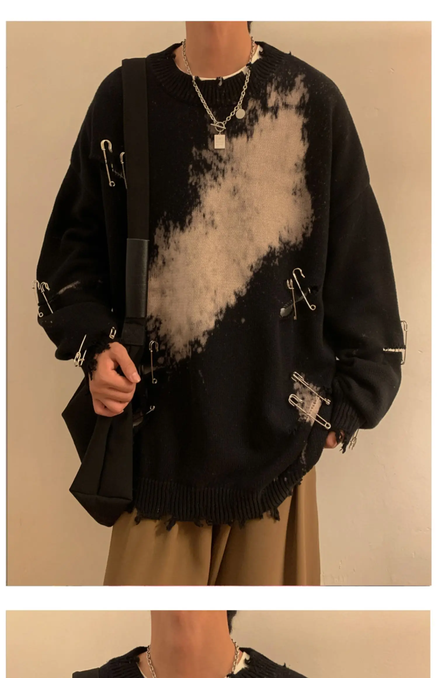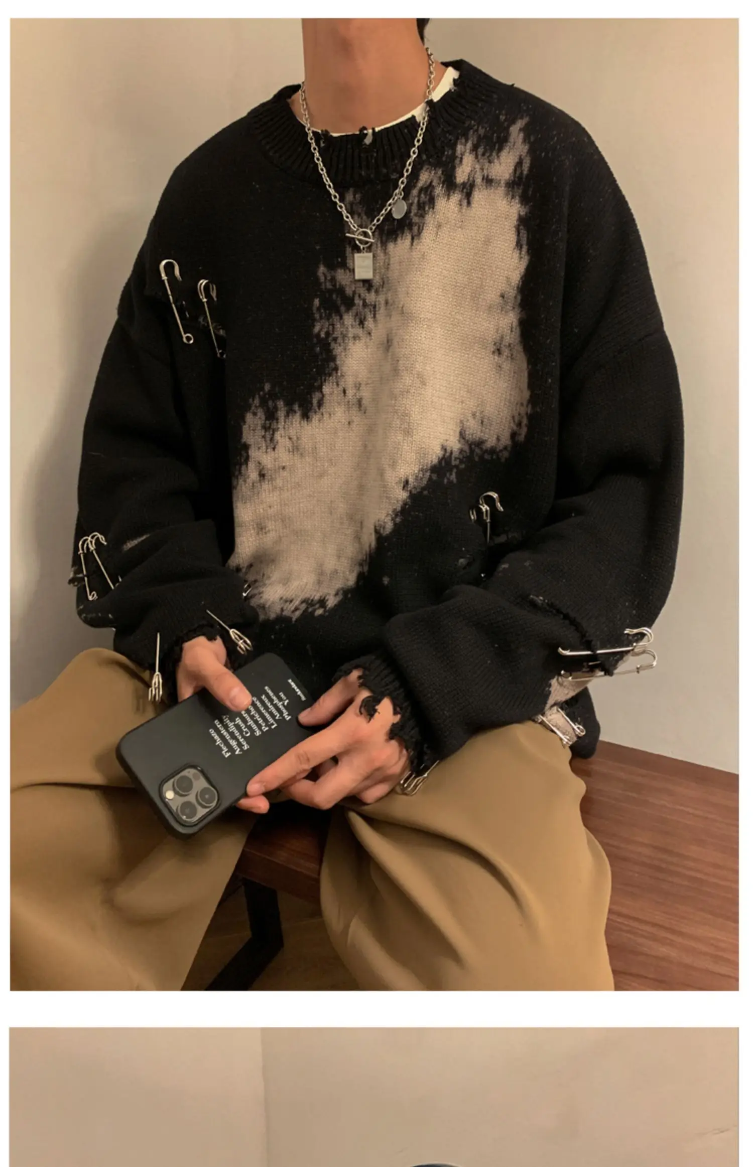 Aidase Sweater Mens Clothes Pullovers Knitwear Streetwear Y2k Baggy Teens Temper American Ripped Design Unisex Chic Hipster Casual
