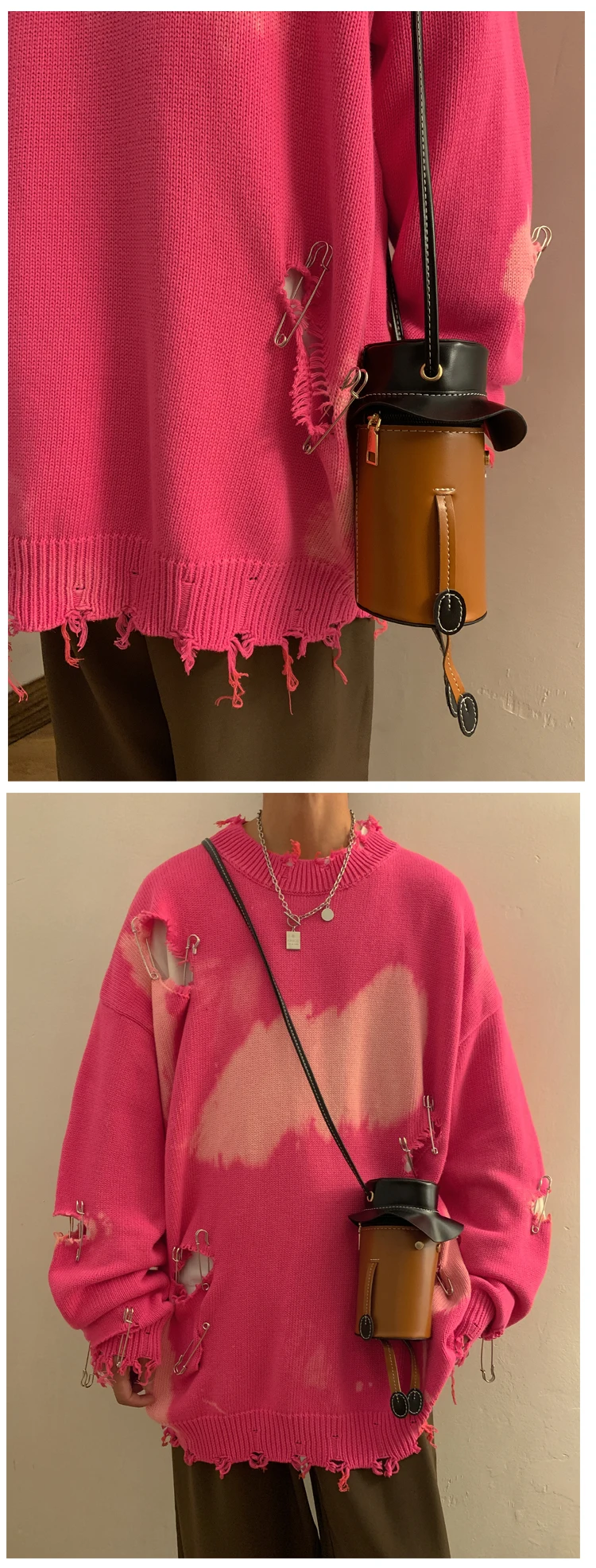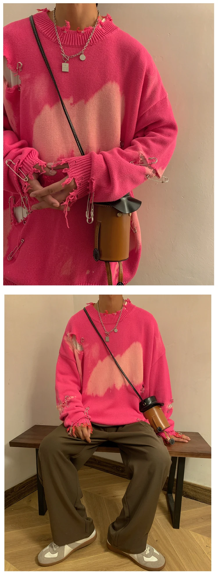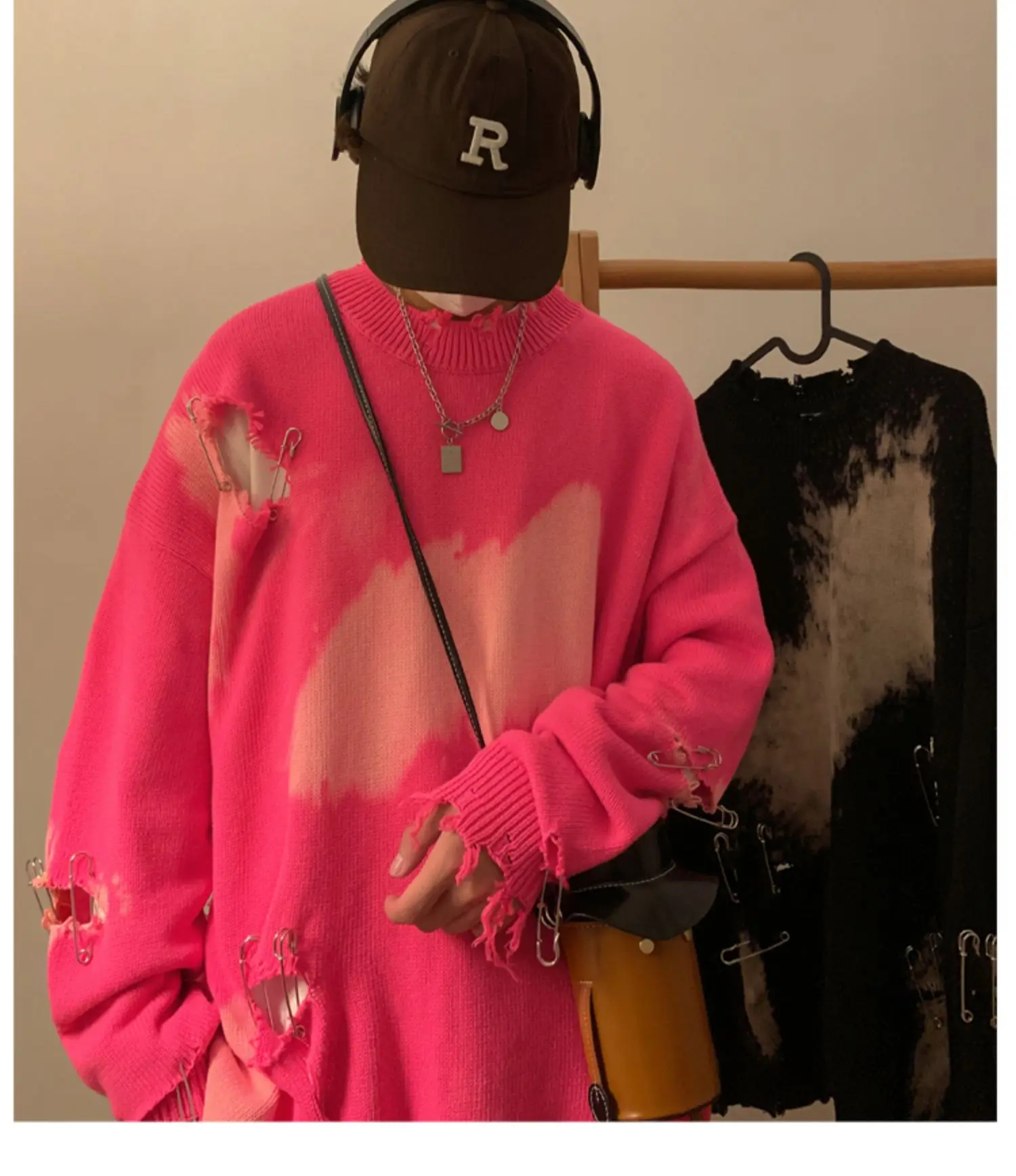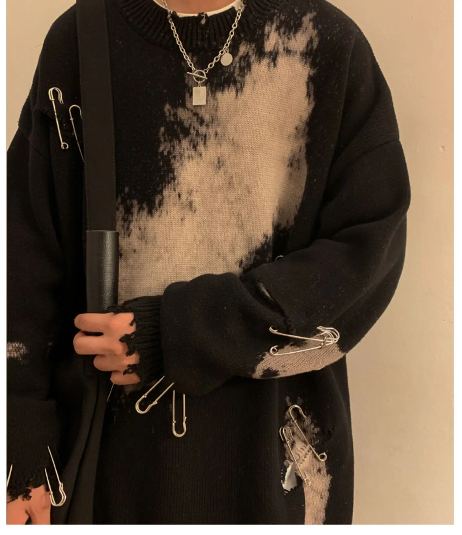 Aidase Sweater Mens Clothes Pullovers Knitwear Streetwear Y2k Baggy Teens Temper American Ripped Design Unisex Chic Hipster Casual