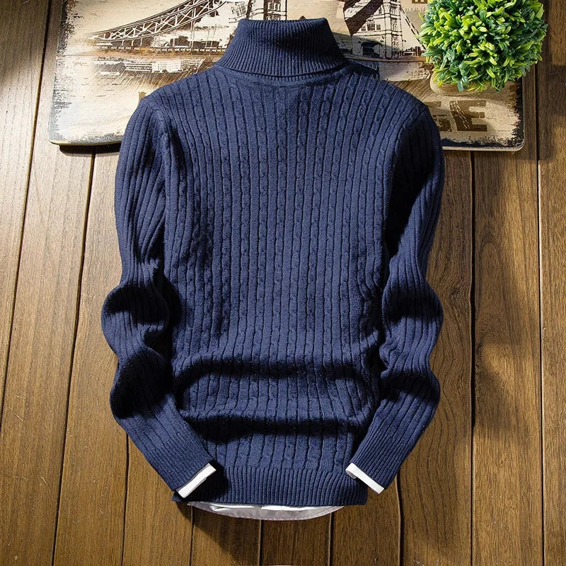AIDASE - Winter High Neck Thick Warm Sweater Men Turtleneck Brand Mens Sweaters Slim Fit Pullover Men Knitwear Male Double Collar3Xl