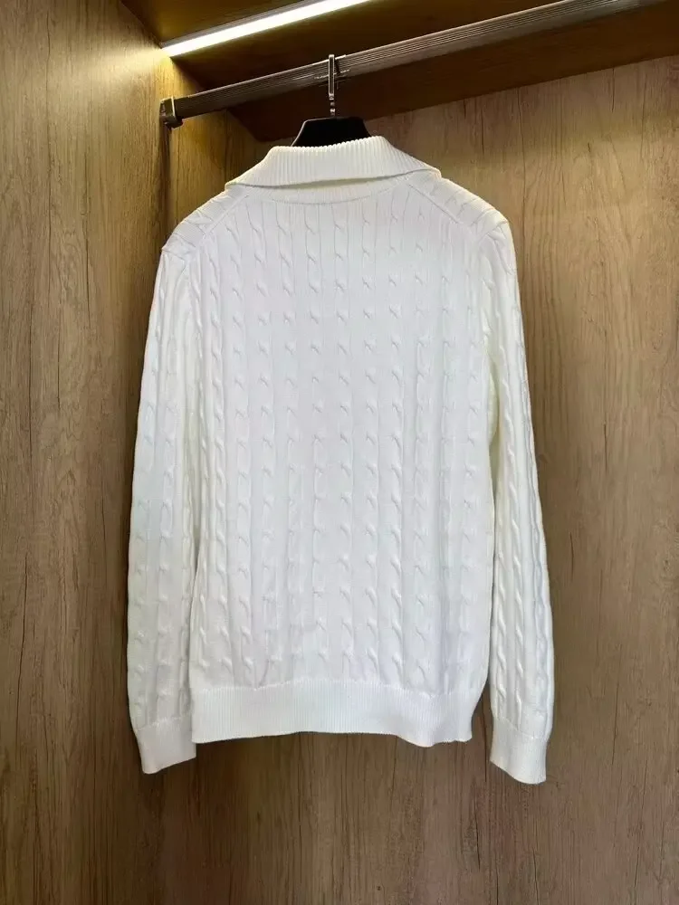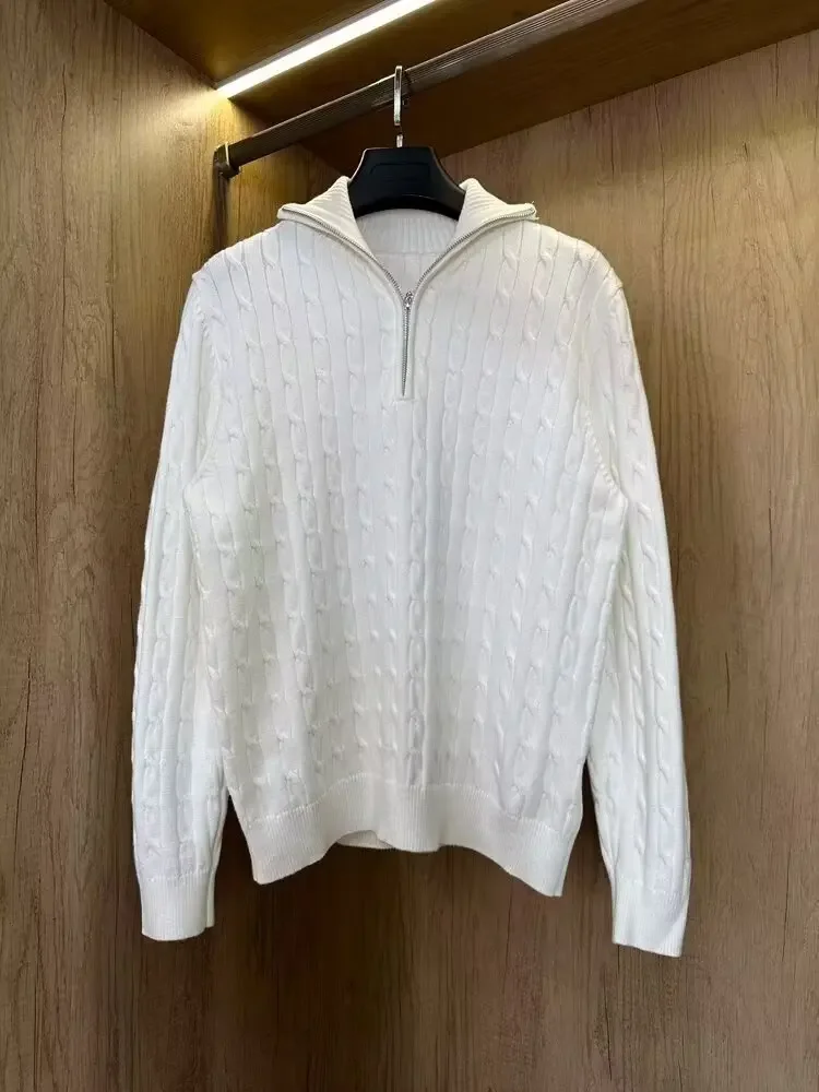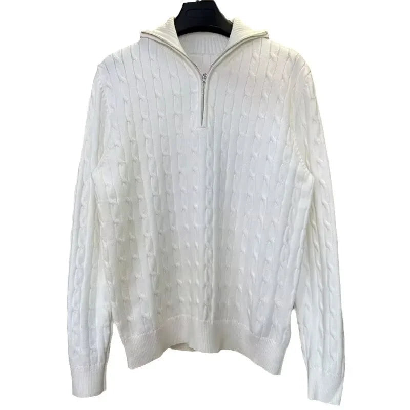 AIDASE - Zipper High Neck Long Sleeve Knitted Sweater Men's Casual Fashionable Versatile White Outerwear Comfortable Lazy Style Overhead