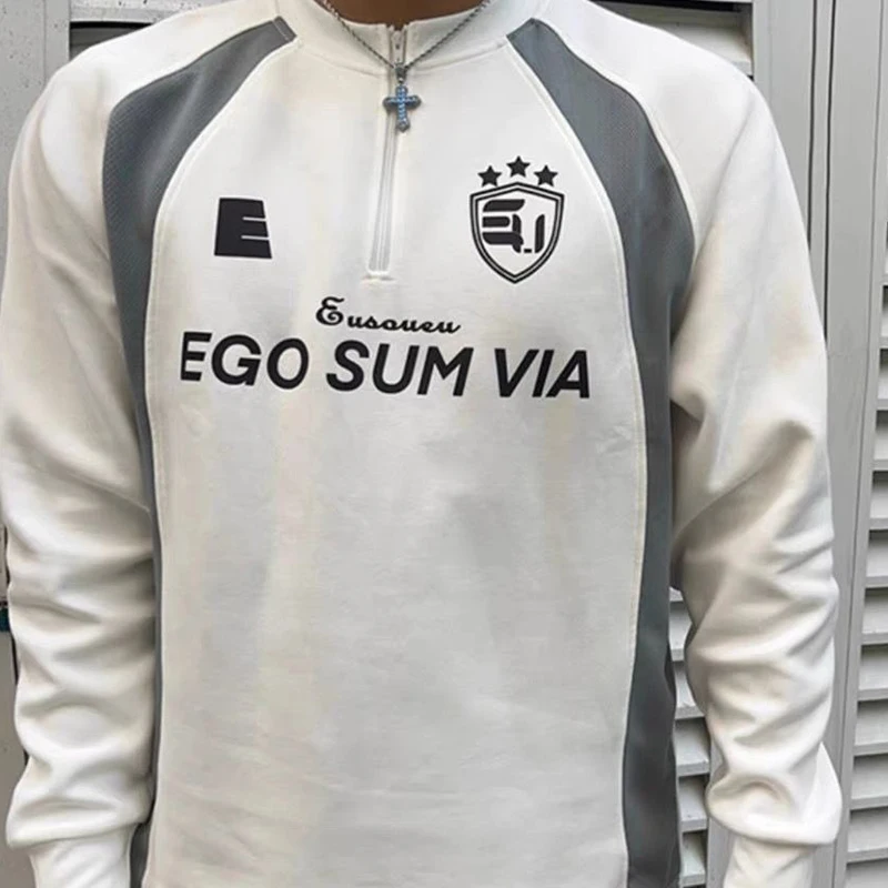 Aidase American Street Football Uniforms Men Niche Contrasting Colors Retro Half-zip Sweatshirts Fashionable Splicing Design T-shirts