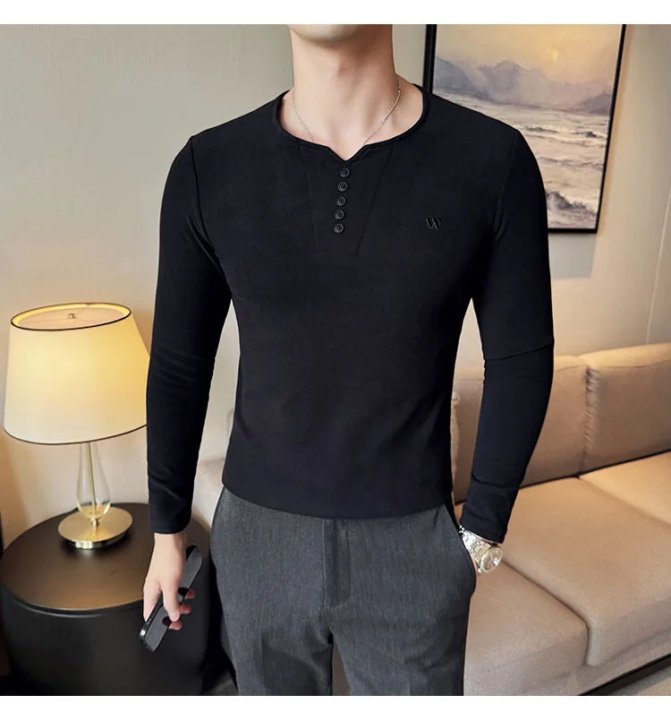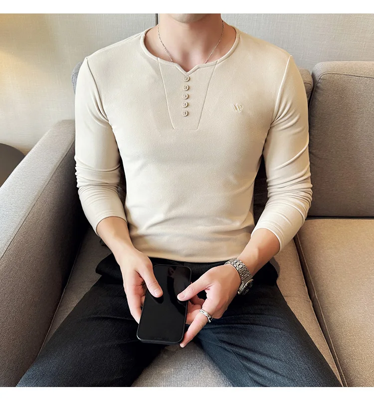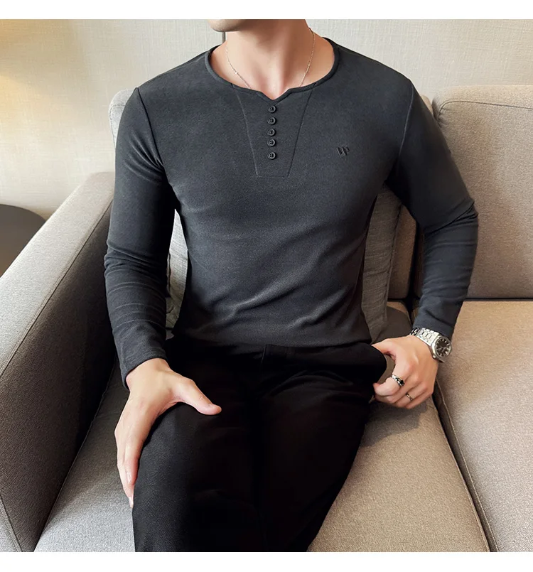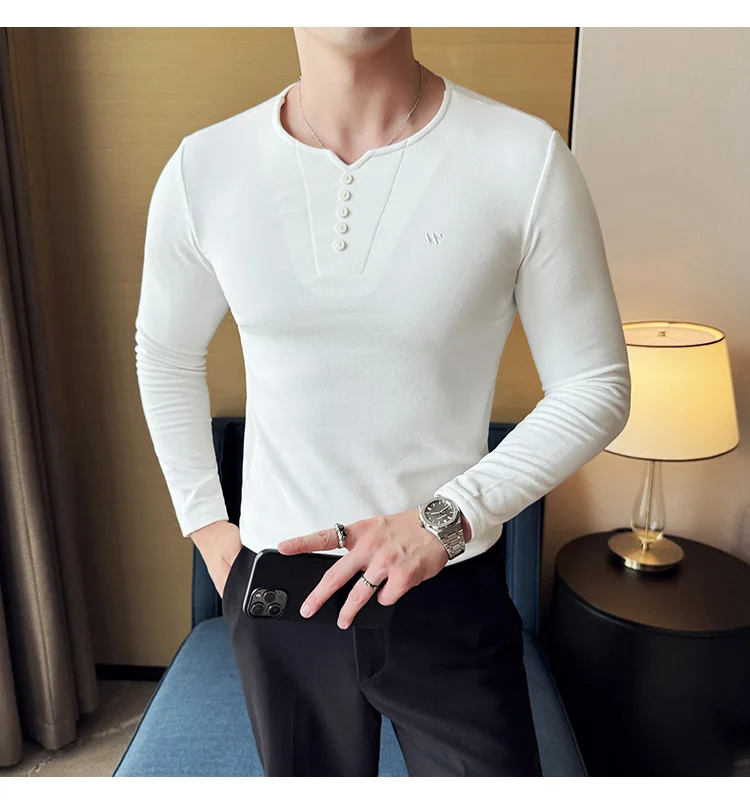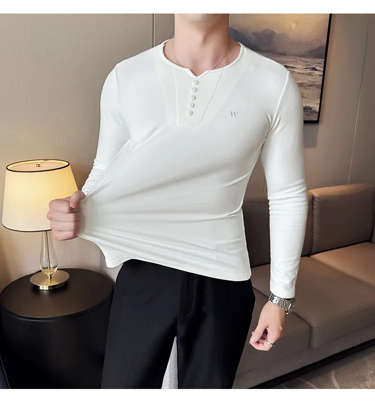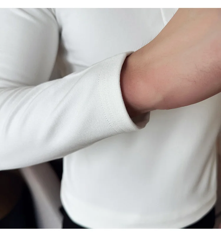 AIDASE - Men Autumn Winter Elastic Double Sided Dralon Fabric Bottom Slim Fit Long Sleeve T-shirt Man Tees Shirts Mens Solid Color Tshirt
