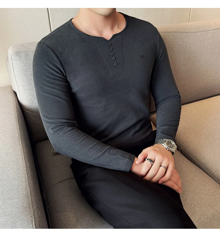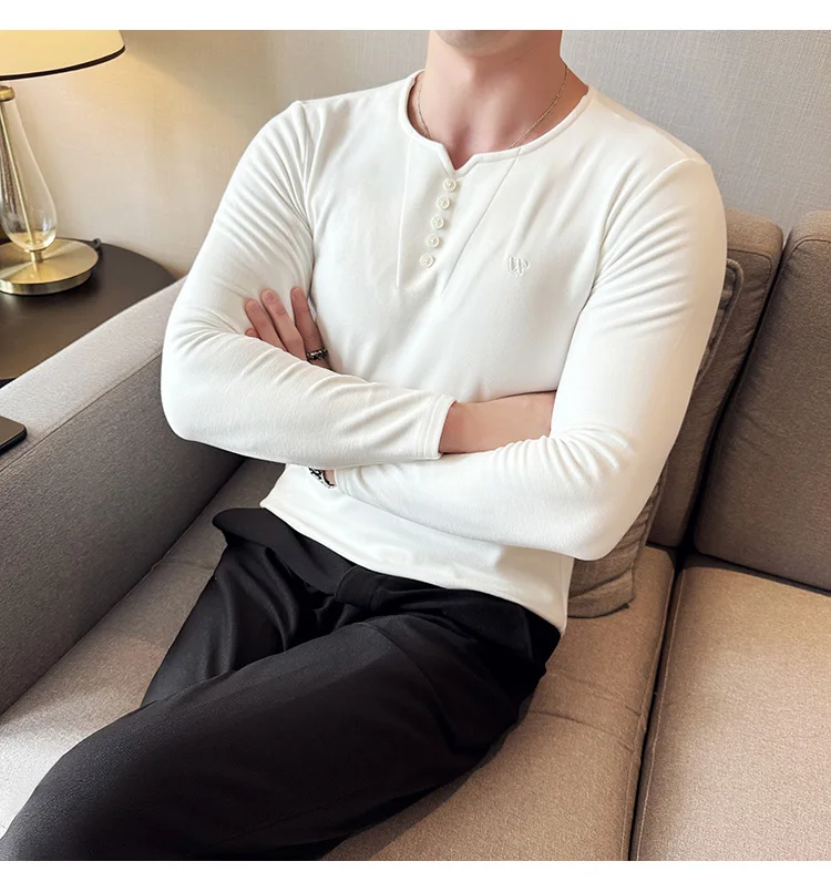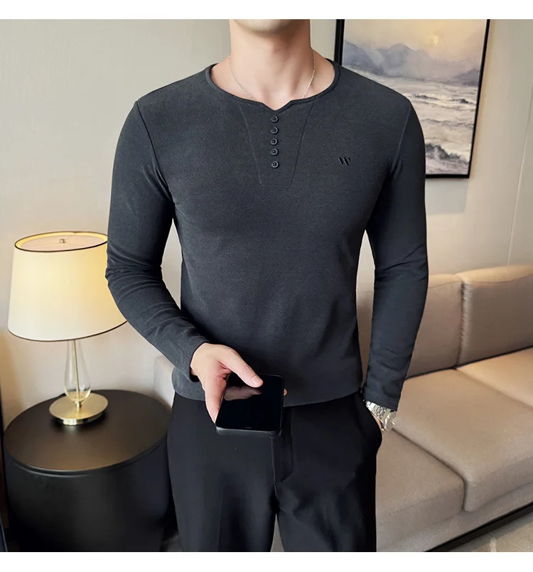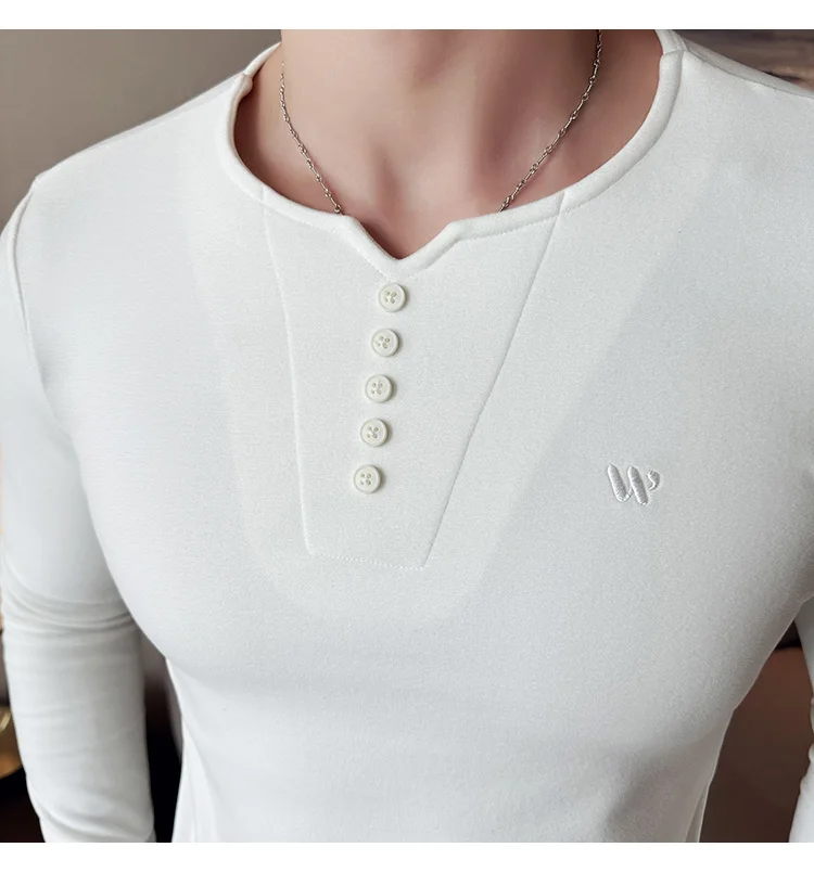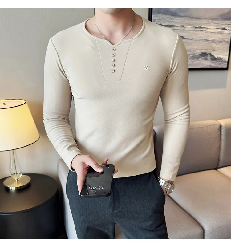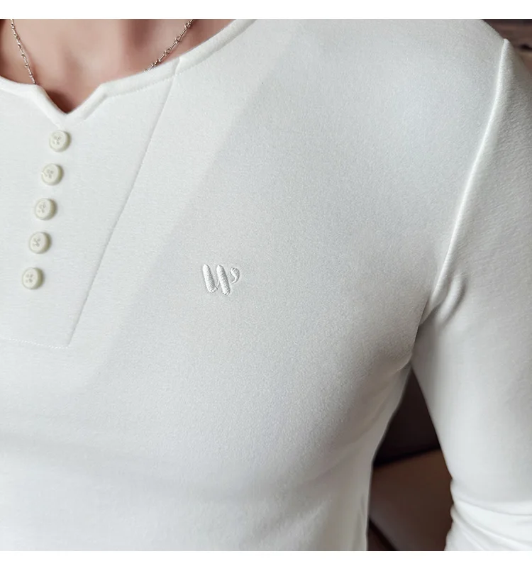 AIDASE - Men Autumn Winter Elastic Double Sided Dralon Fabric Bottom Slim Fit Long Sleeve T-shirt Man Tees Shirts Mens Solid Color Tshirt