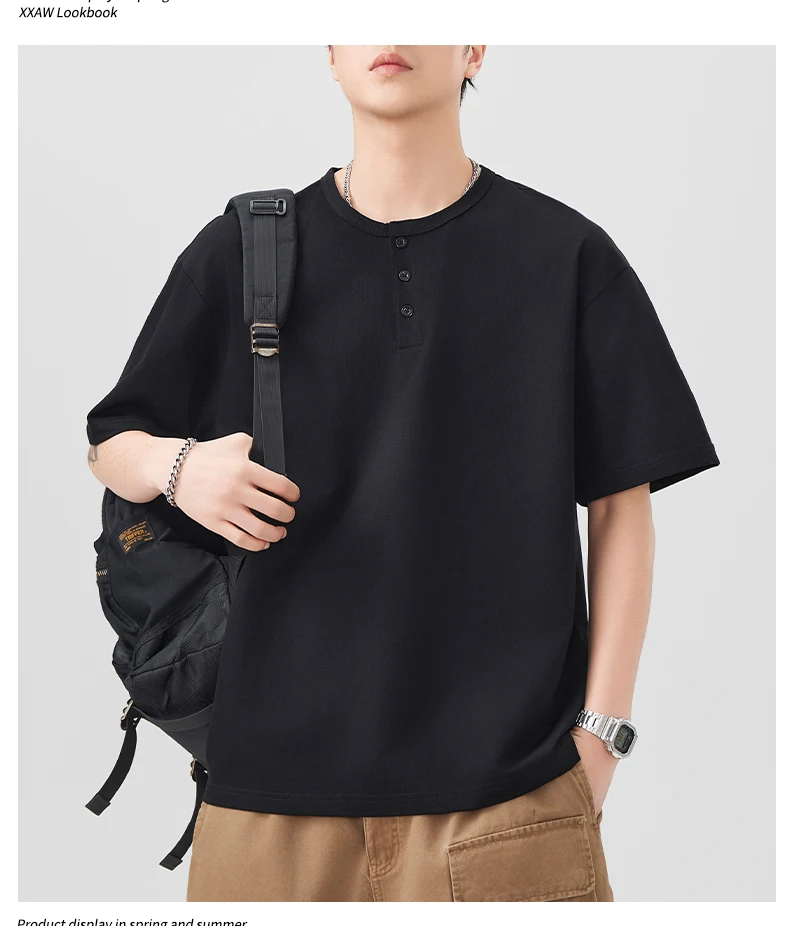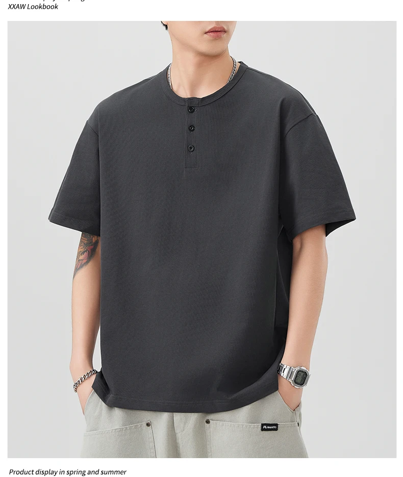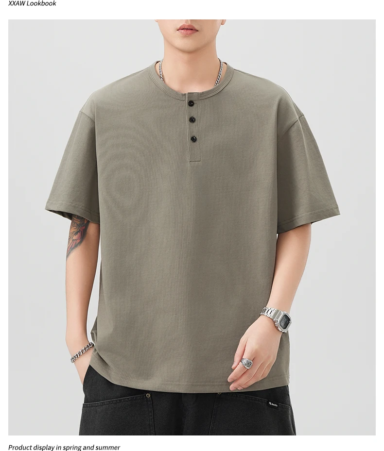AIDASE - Solid Color Short Sleeve T-shirt Men's Summer Fashion Loose Casual Retro Tshirt Couple Streetwear T Shirts