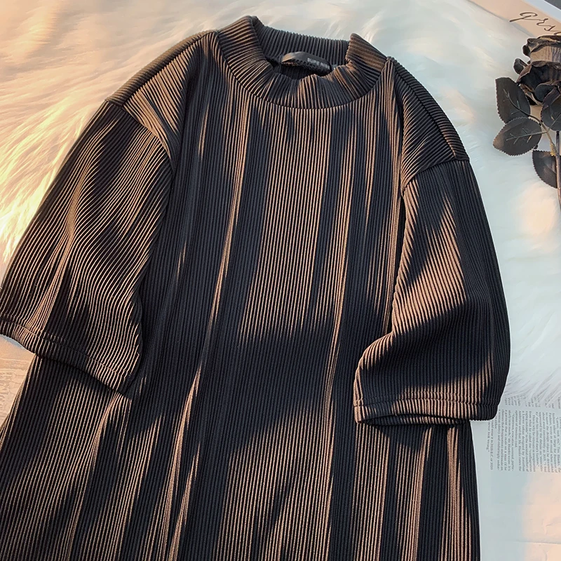 Summer Pleated T-shirt Men's Fashion Gray/black/white Casual Short Sleeve T Shirt Men Streetwear Loose Ice Silk Tshirt Mens Tops