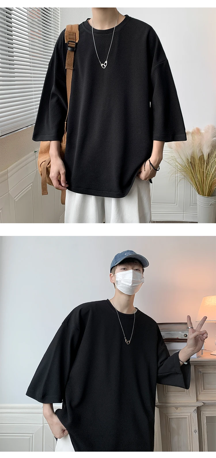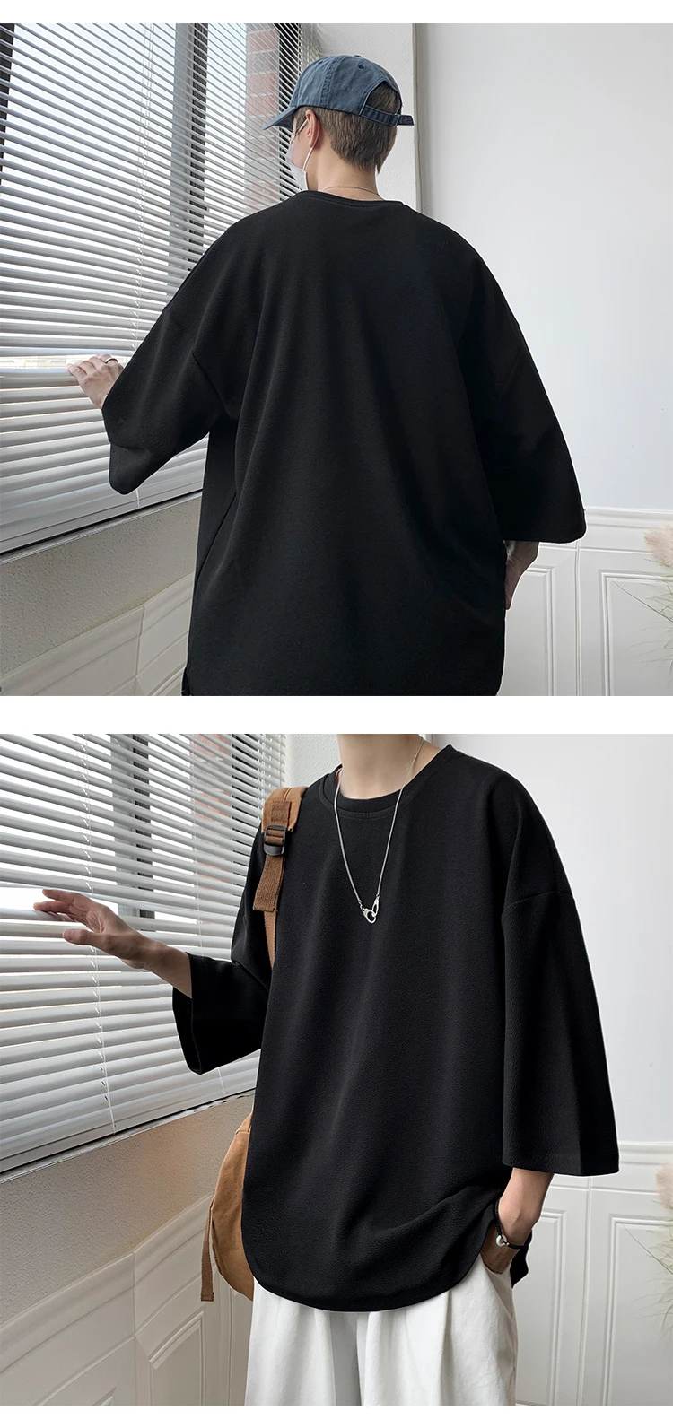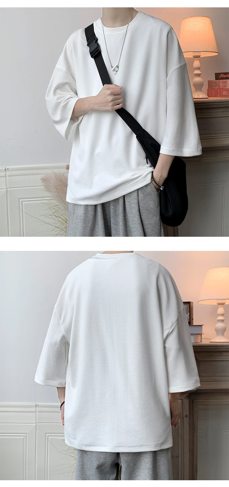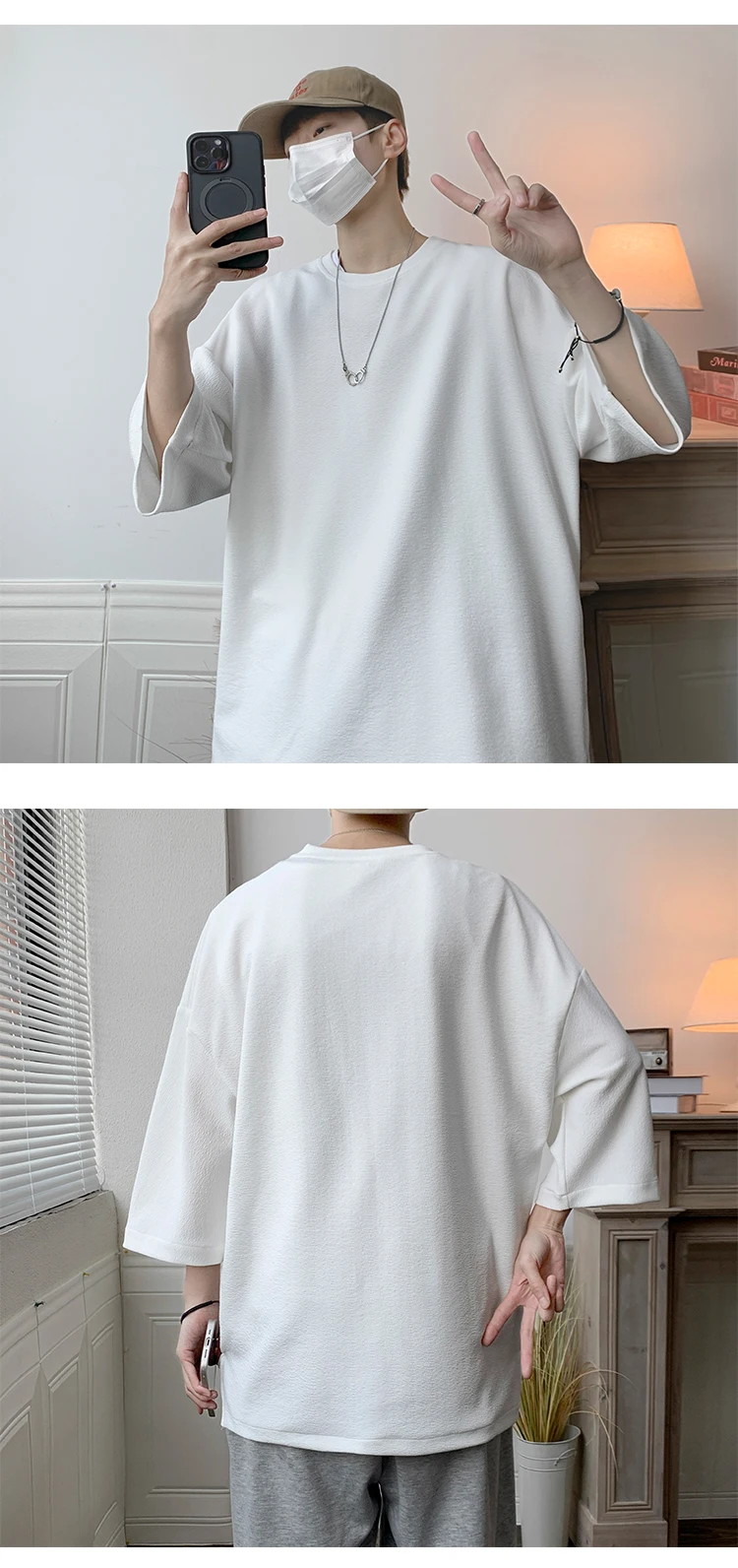 Summer Short-sleeved T-shirt Men Fashion Breathable Oversized Ice Silk T Shirt Men Streetwear Korean Loose Round Neck Tshirt Men