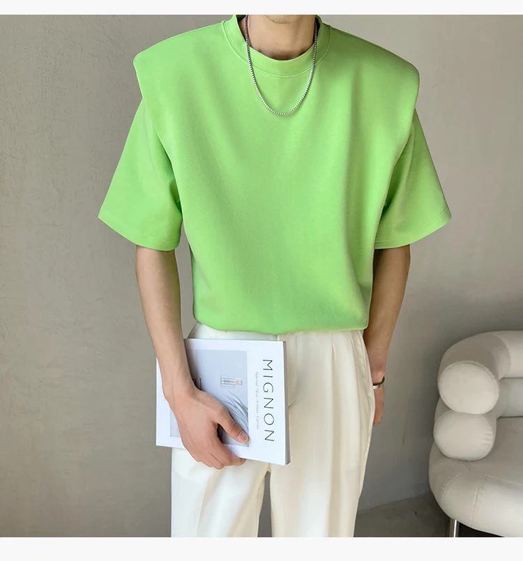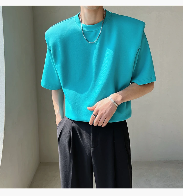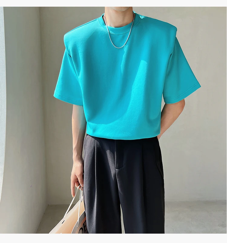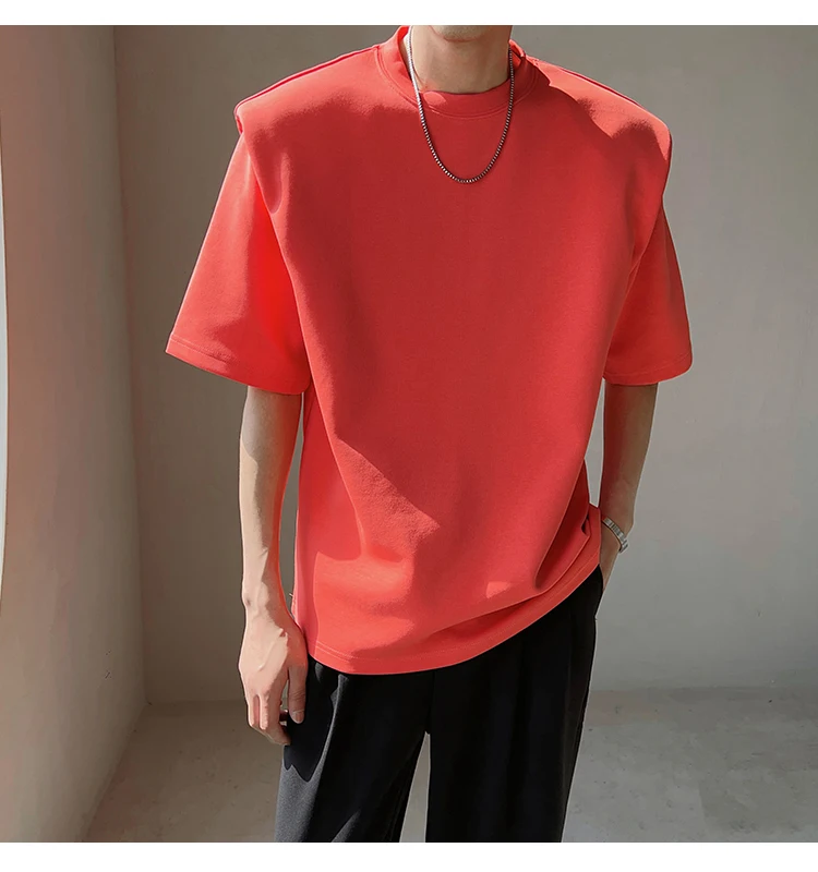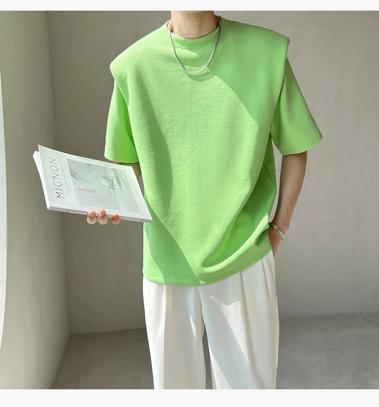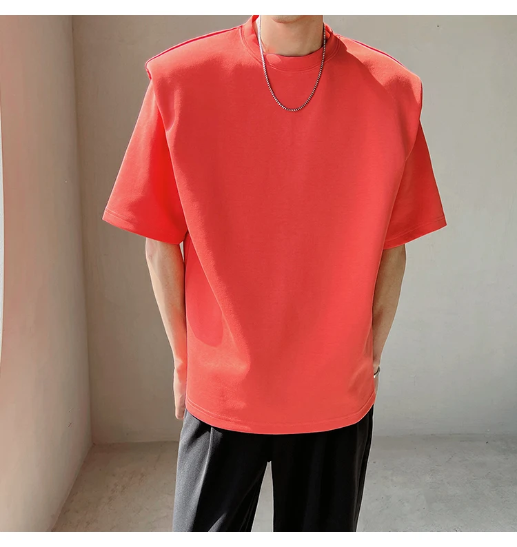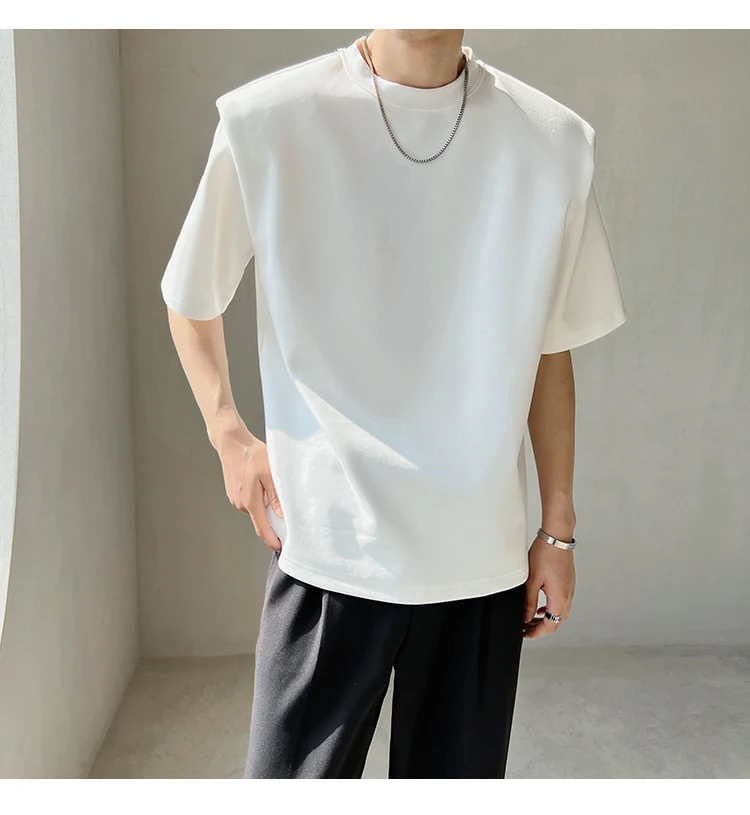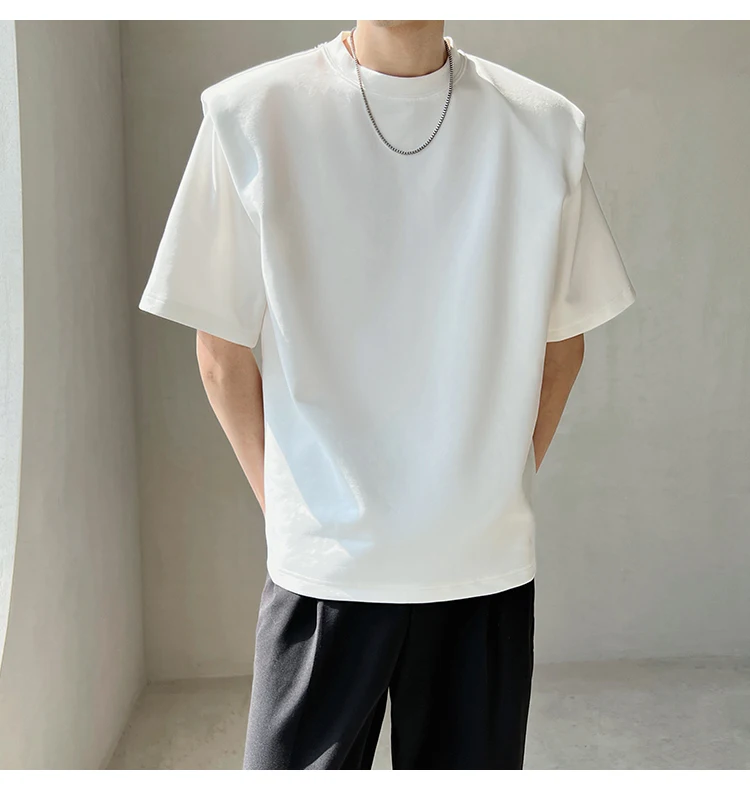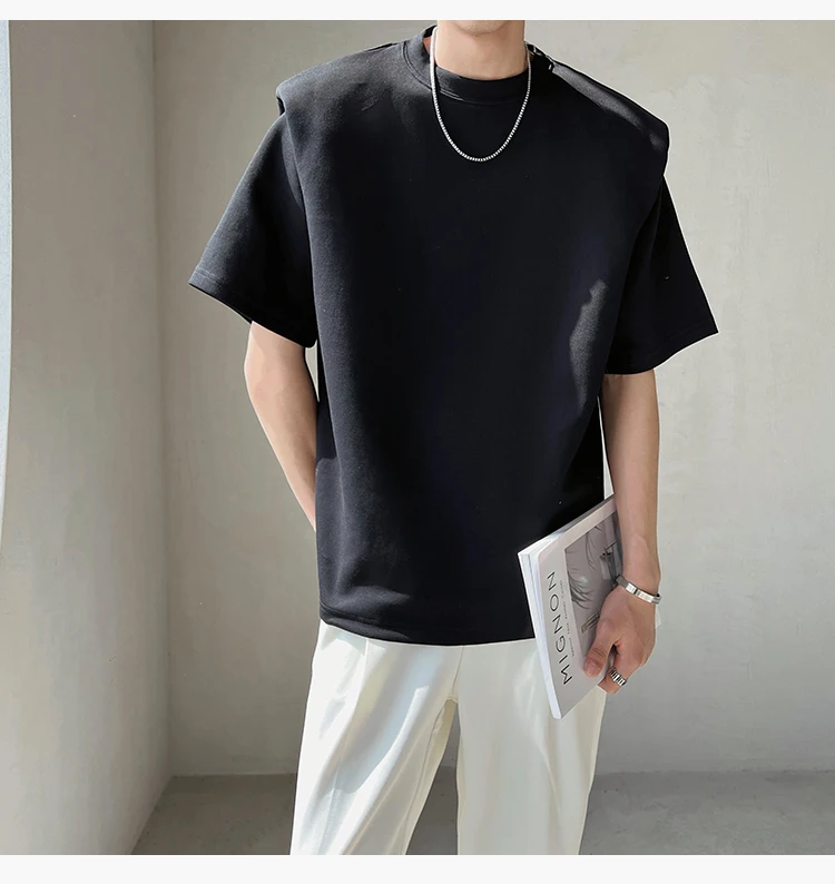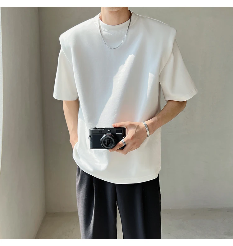 Summer Short-sleeved T-shirt Men Fashion Casual Shoulder Pad Tshirt Men Streetwear Korean Loose O-neck T Shirt Mens Tops M-2XL