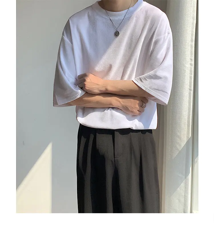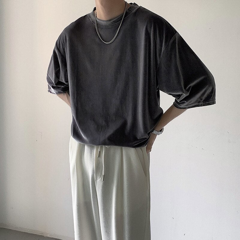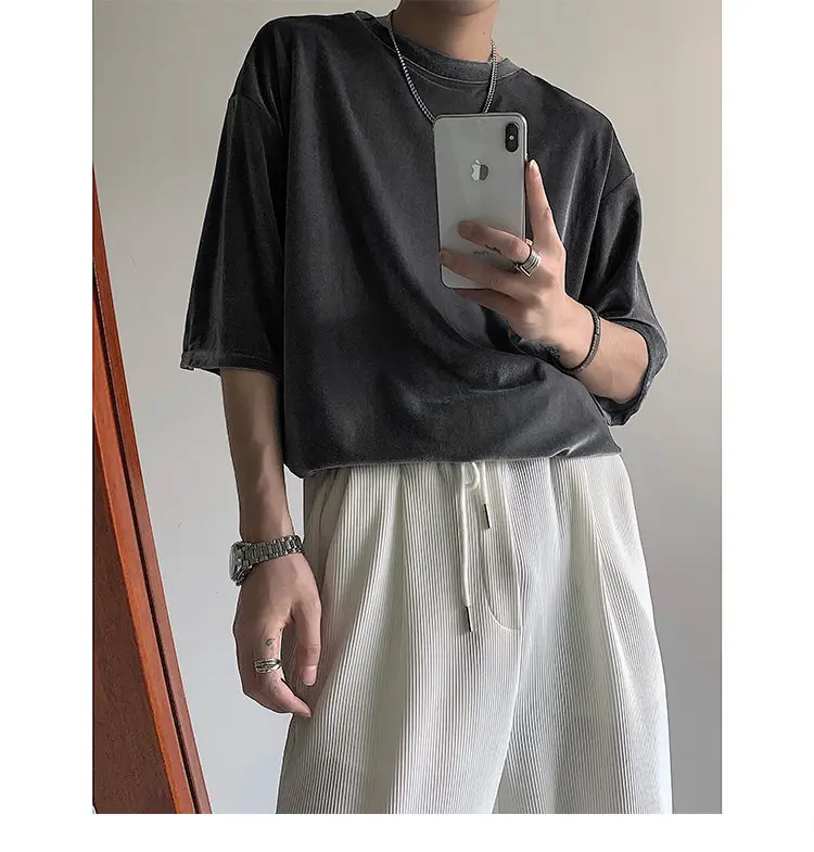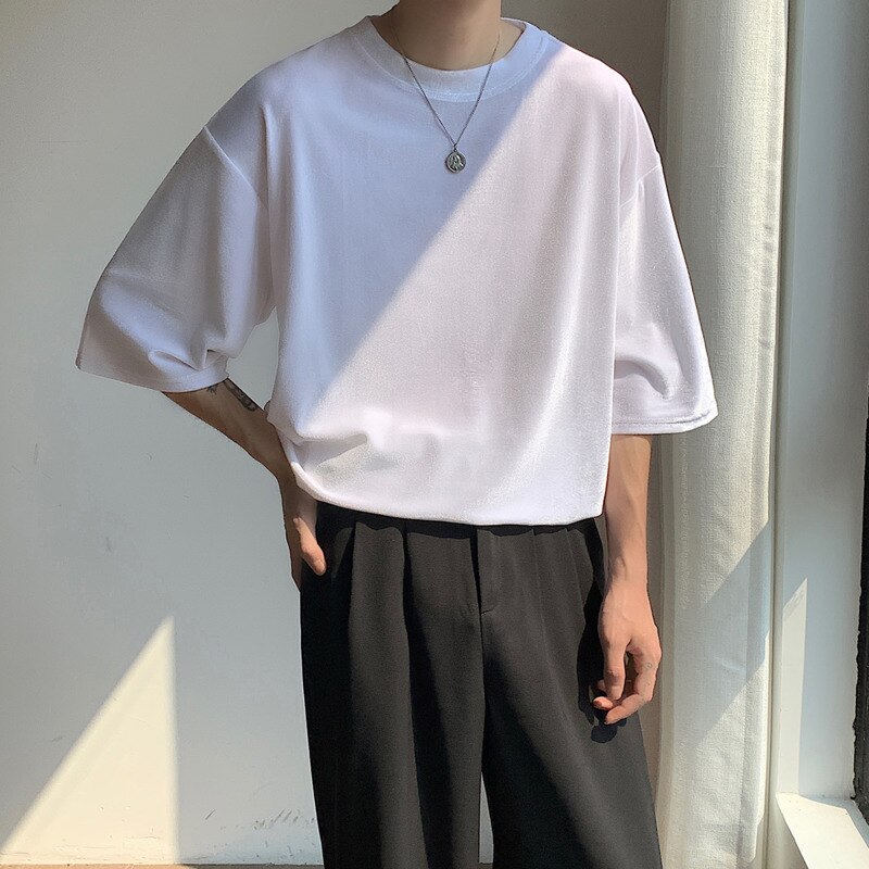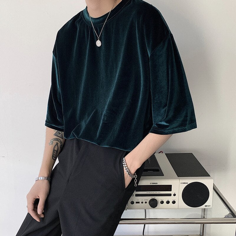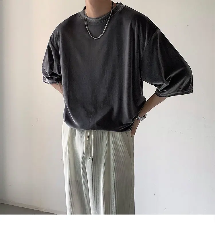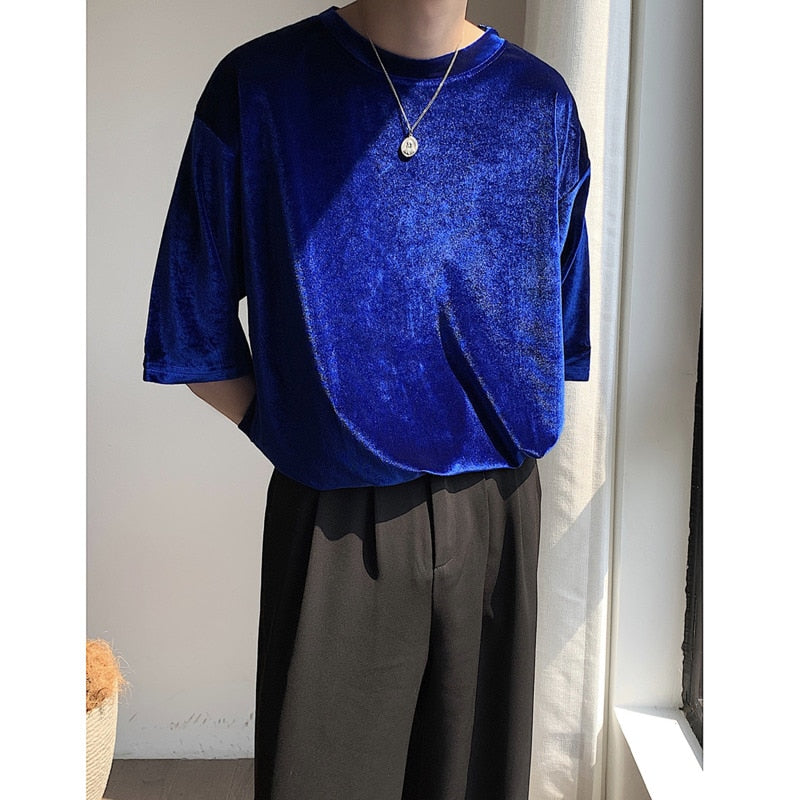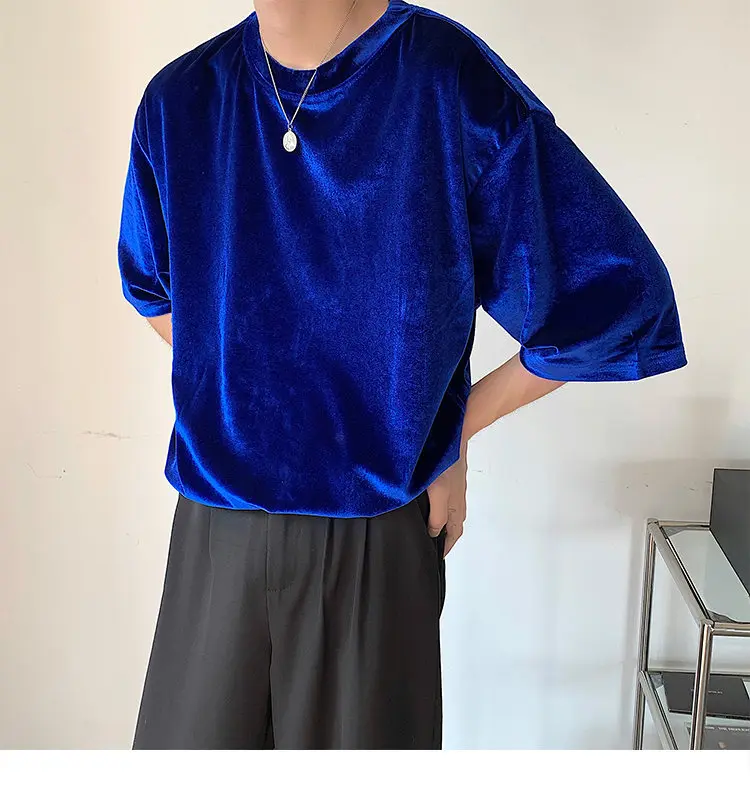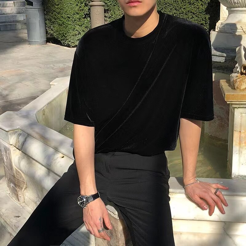 Summer Short-sleeved T-shirt Men Fashion Round Neck Gold Velvet T Shirt Men Streetwear Korean Loose Oversized Tshirt Mens Top