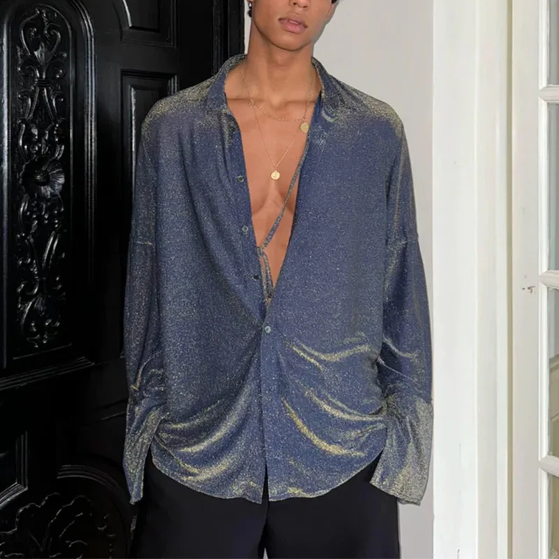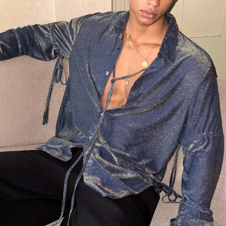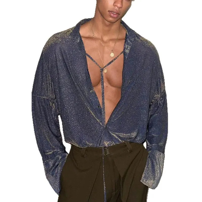 AIDASE - Autumn Winter New Man High Street Lace-up Trendy Tops Sexy Niche Chic Casual Turn-Down Collar Long Sleeve Shirts Ins W12517