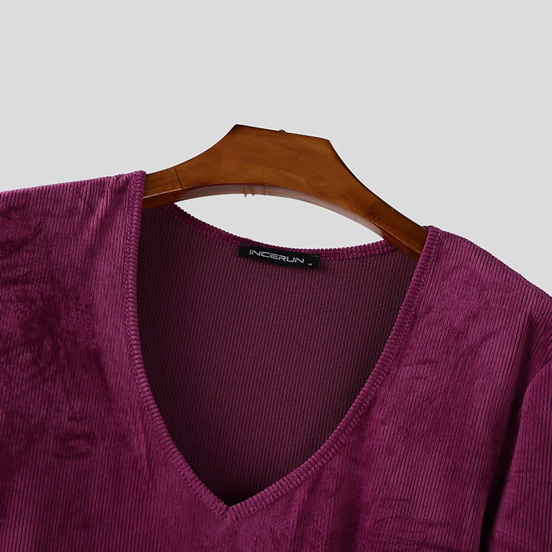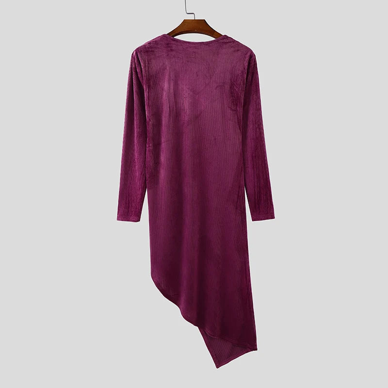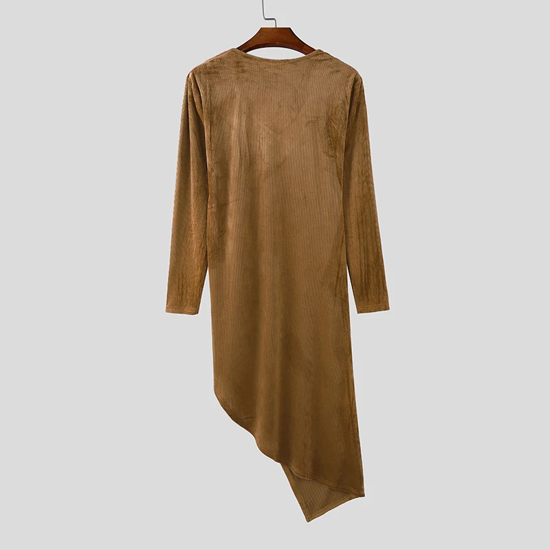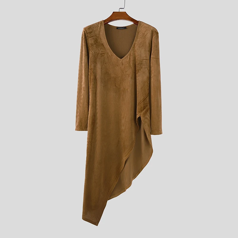 AIDASE - Men Irregular T Shirt Solid Color V Neck Short Sleeve Long Style Tee Tops Streetwear 2025 Fashion Casual Men Clothing