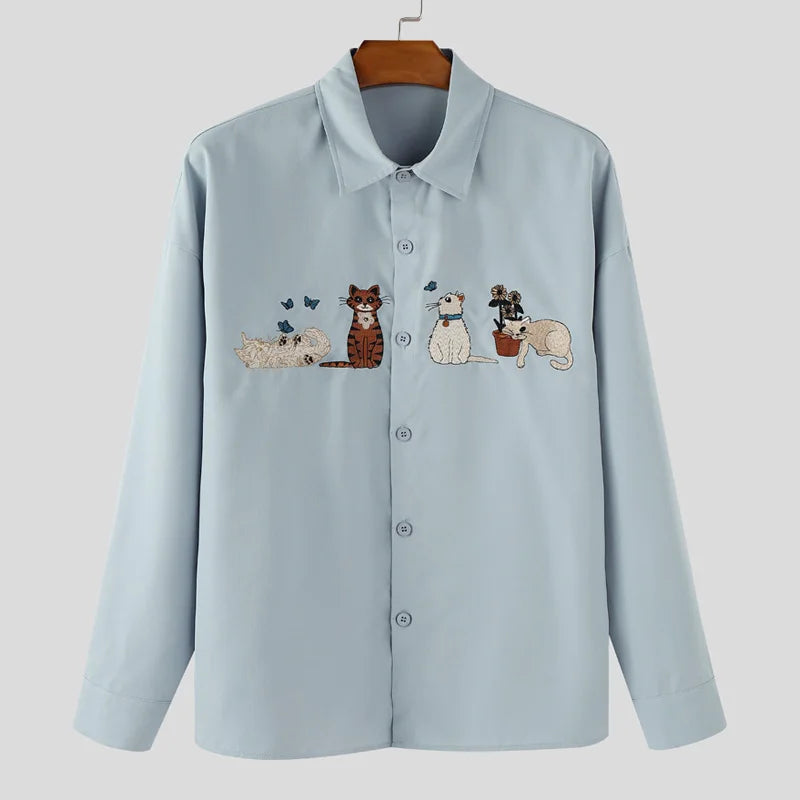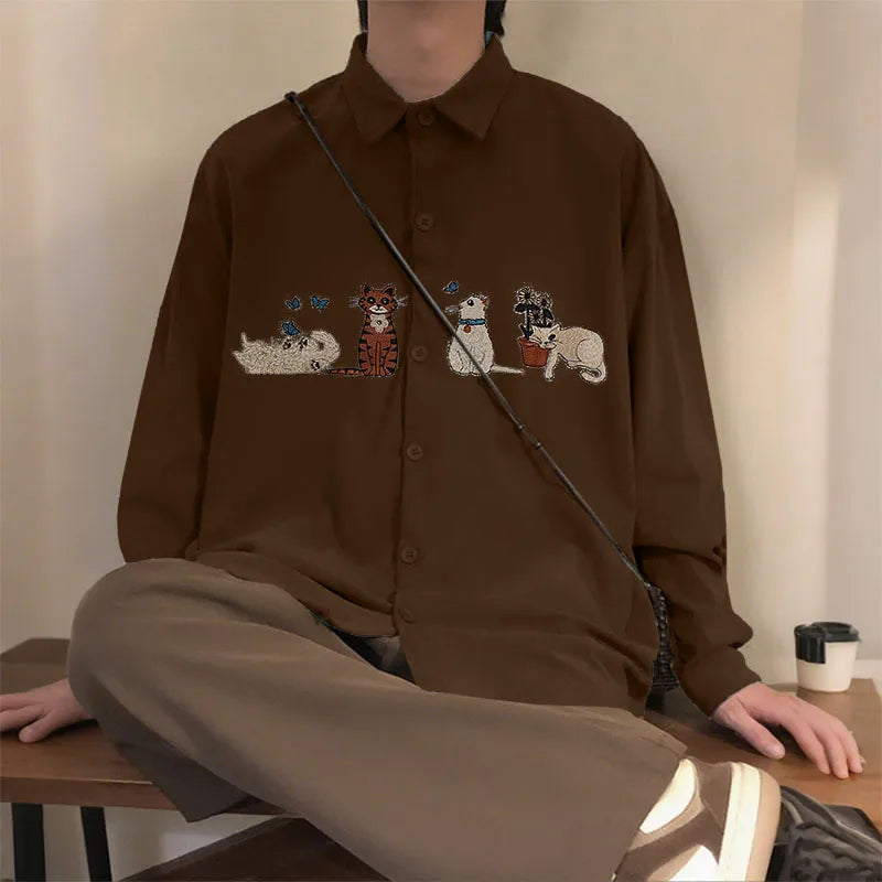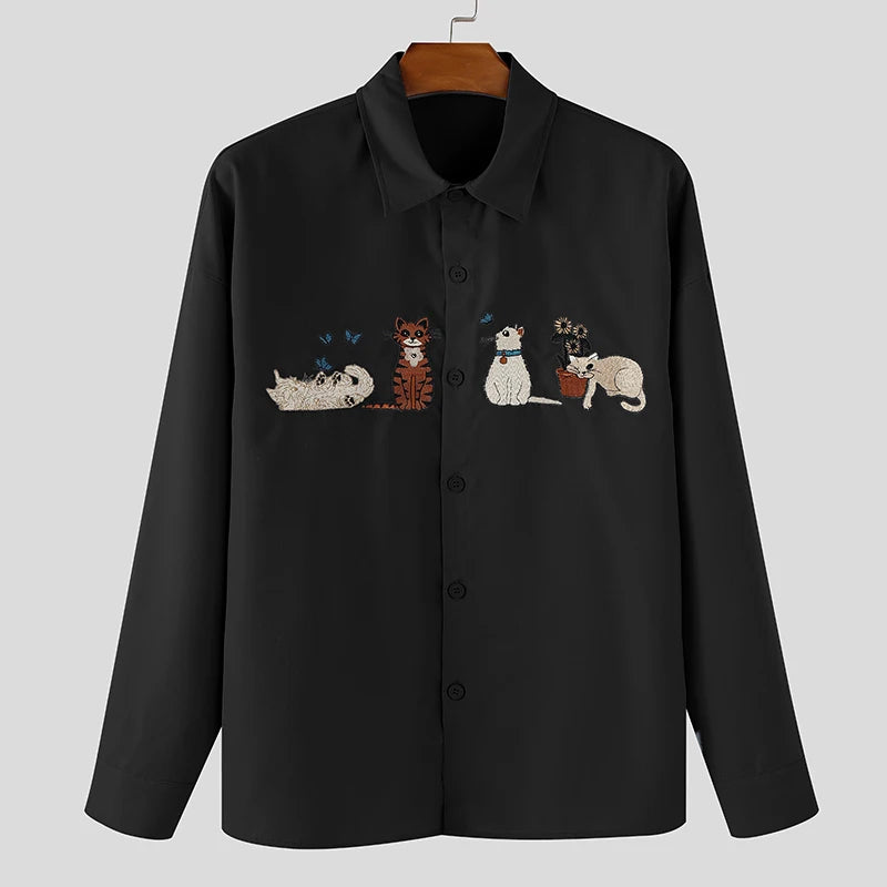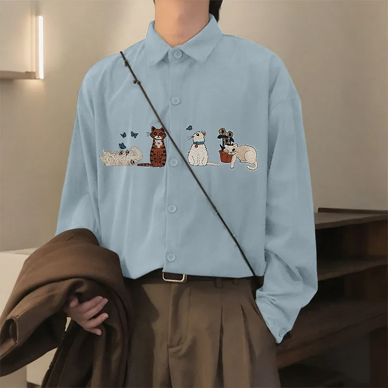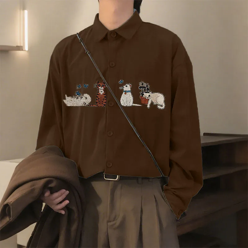AIDASE - Men Shirt Embroidered Lapel Long Sleeve Korean Style Men Clothing Streetwear Loose 2025 Fashion Casual Male Shirts Tops
