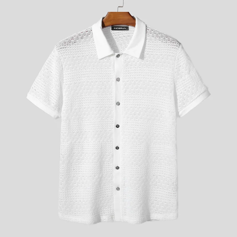 AIDASE - Men Shirt Hollow Out See Through Lapel Short Sleeve Men Clothing Summer Streetwear 2025 Fashion Casual Male Shirts S-5XL