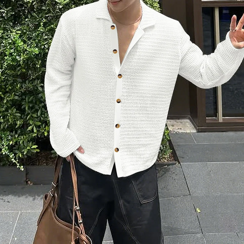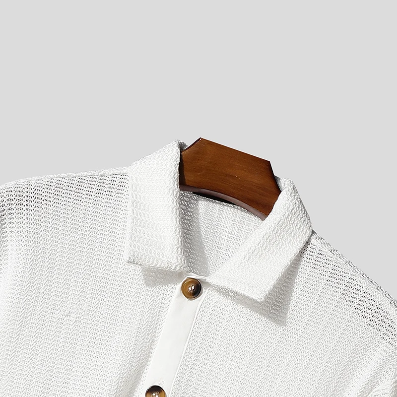 AIDASE - Men Shirt Hollow Out See Through Solid Color Lapel Long Sleeve Men Clothing Streetwear Loose 2025 Fashion Casual Tops