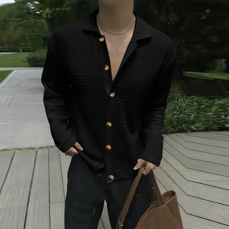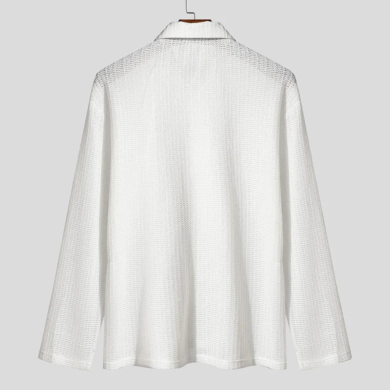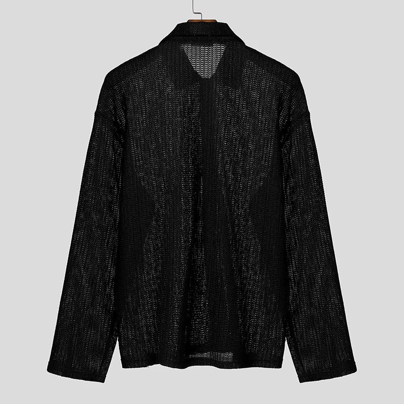 AIDASE  -  Men Shirt Hollow Out See Through Solid Color Lapel Long Sleeve Men Clothing Streetwear Loose 2025 Fashion Casual Tops