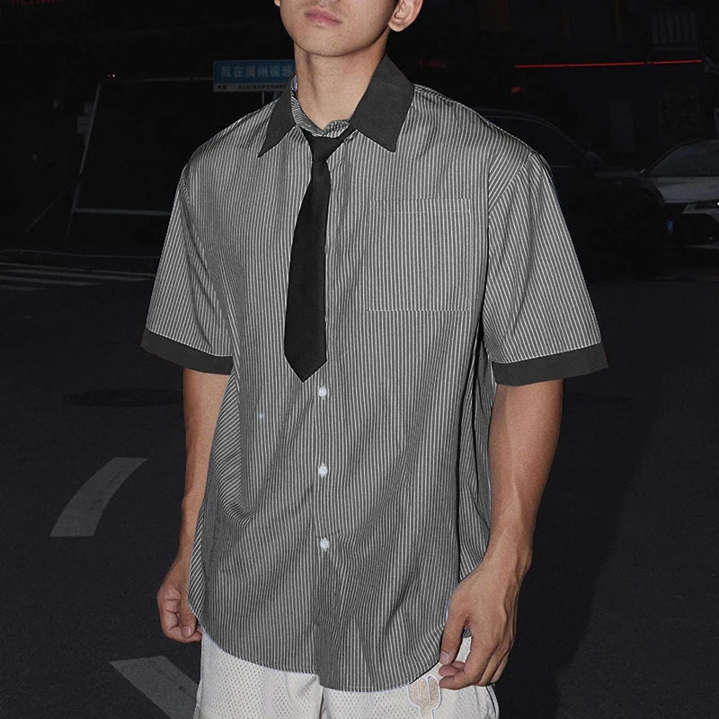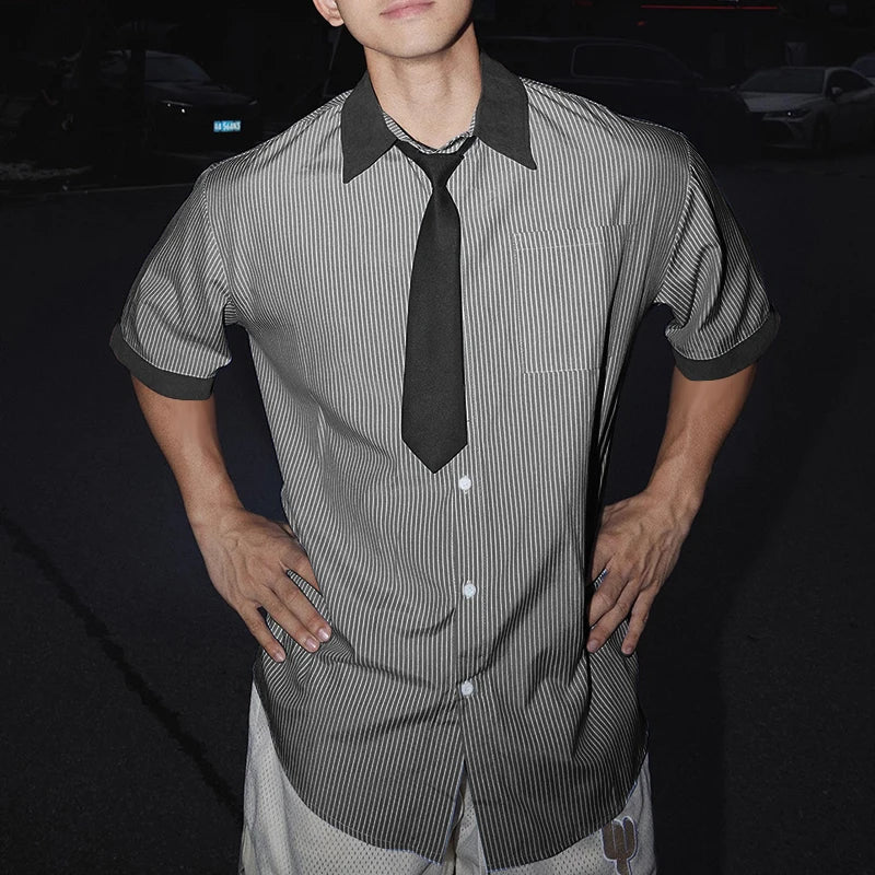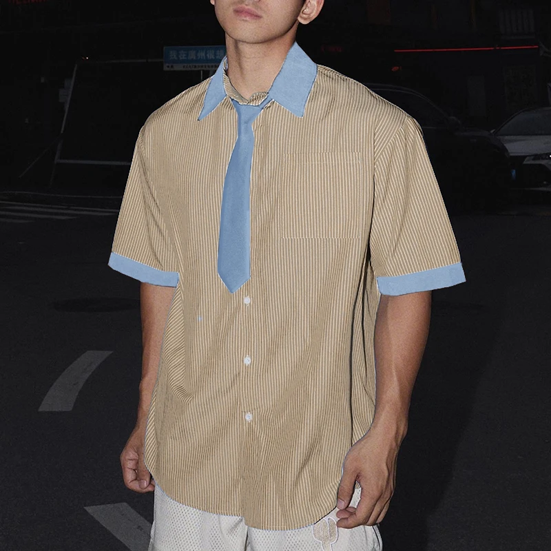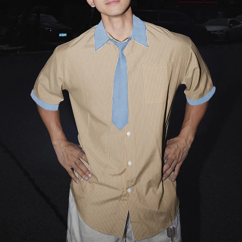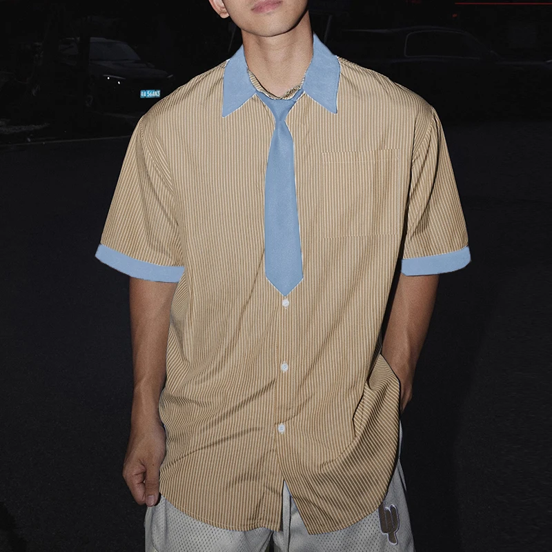 AIDASE - Men Shirt Striped Patchwork Lapel Short Sleeve Button Casual Men Clothing Loose Tie 2025 Fashion Male Shirts S-5XL Tops
