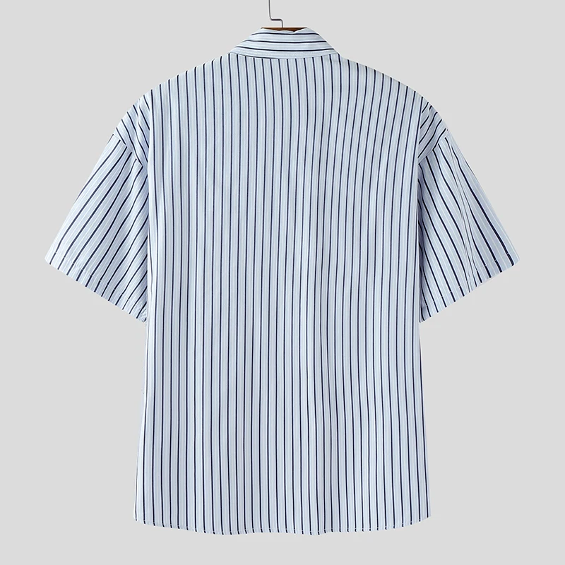 AIDASE - Men Shirt Striped Patchwork Lapel Short Sleeve Button Men Clothing Streetwear Korean Style Loose Fashion Casual Tops Men