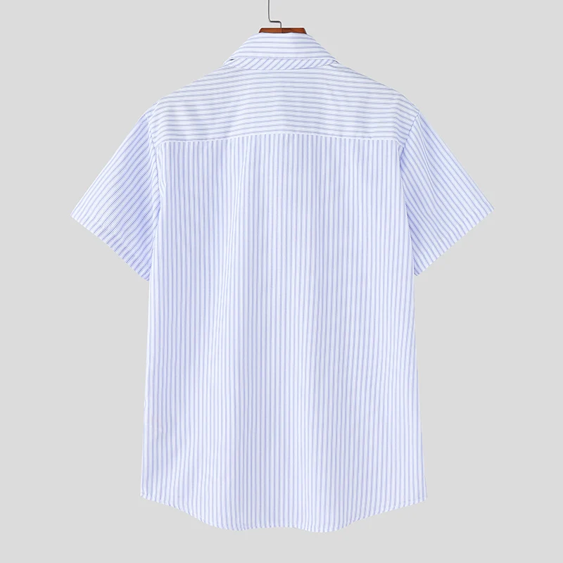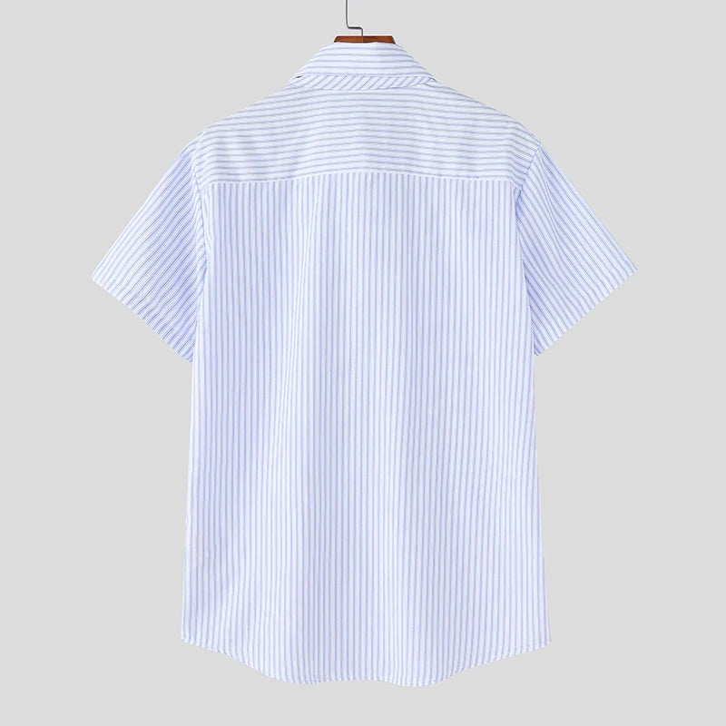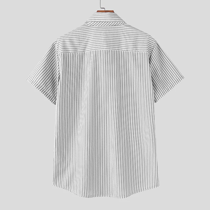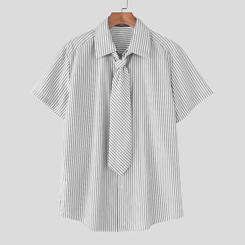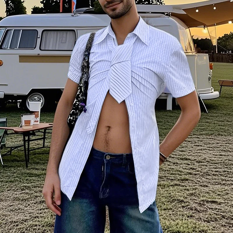 AIDASE - Men Striped Shirt Lapel Short Sleeve Tie Up Casual Men Clothing Summer Shirts Streetwear 2025 Fashion Male Tops S-5XL
